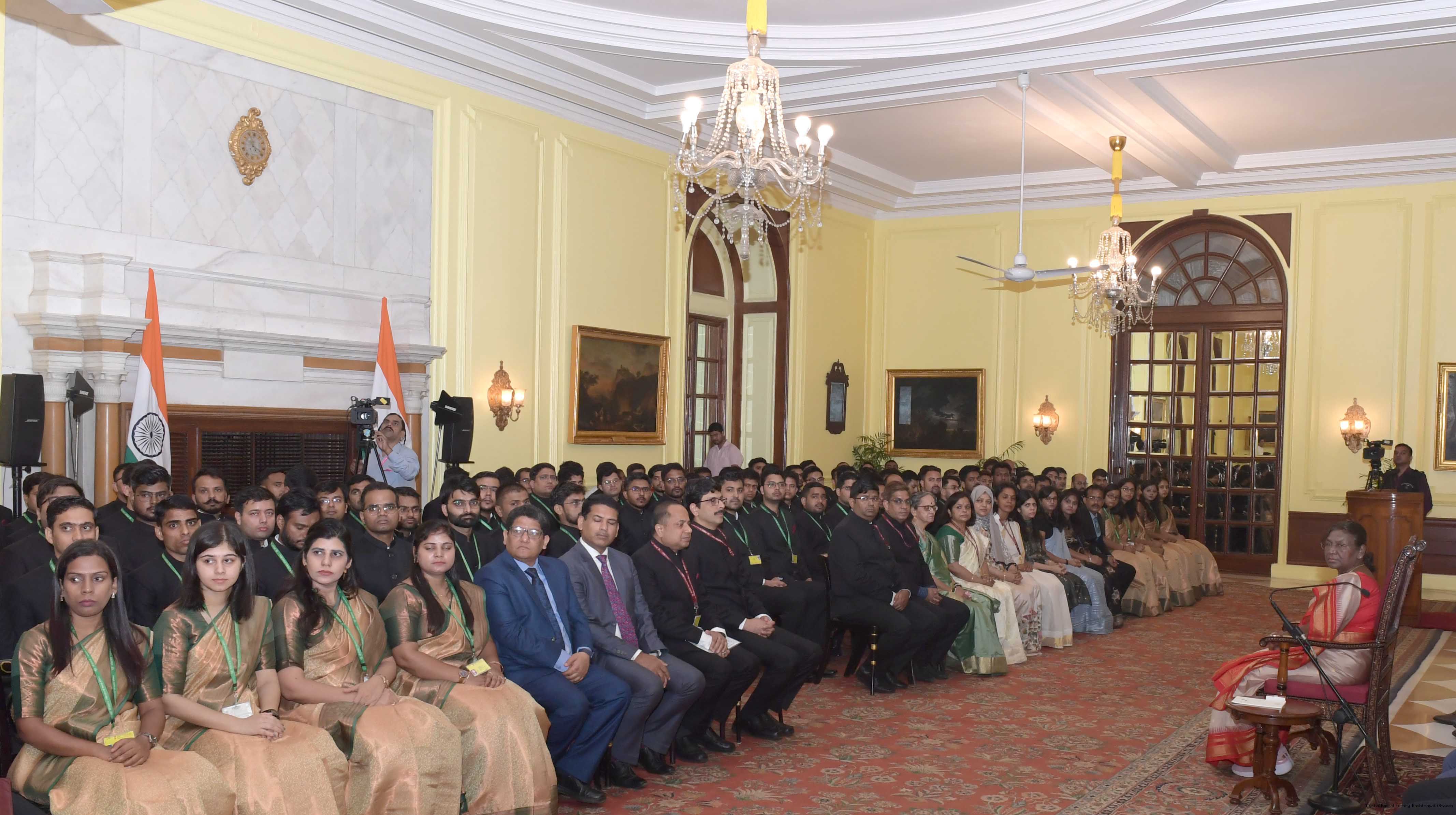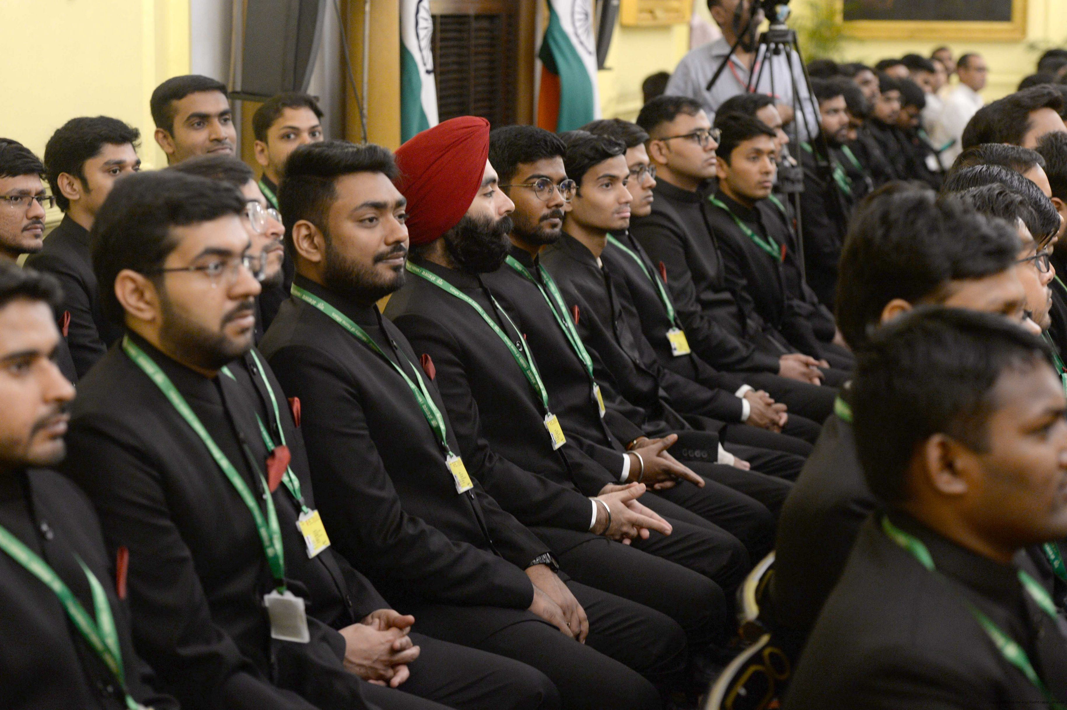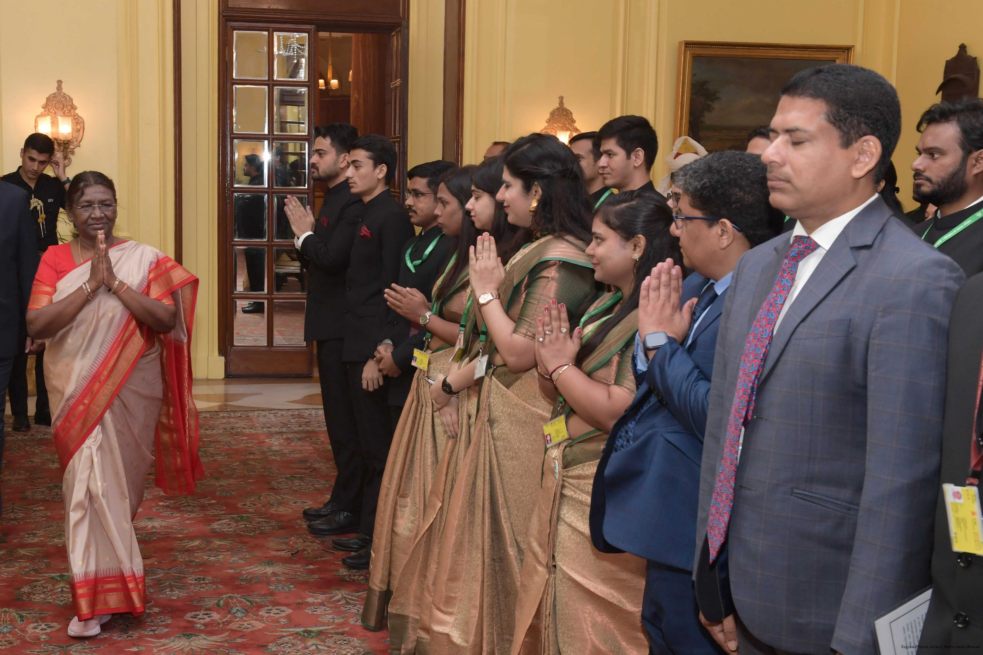 | Caption: | The Officers of Central Power Engineering Service (2018, 2020 and 2021 batches) called on the President of India, Smt Droupadi Murmu at Rashtrapati Bhavan on October 5, 2023. |