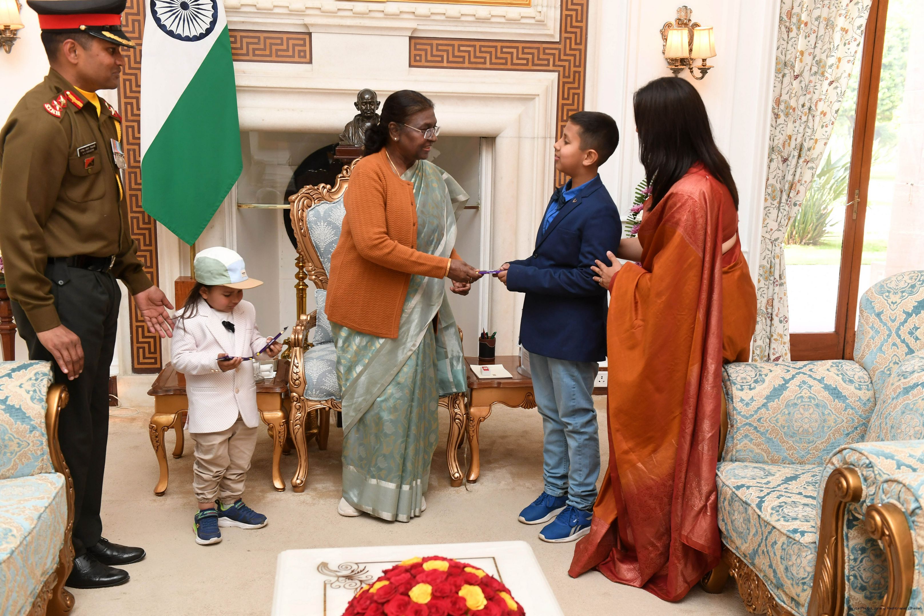 | Caption: | Col Ganesh Shankar Vidyarthi CO 6 SIKH along With Family members meeting with the President of India, Smt Droupadi Murmu at Rashtrapati Bhavan on February 11, 2024 |