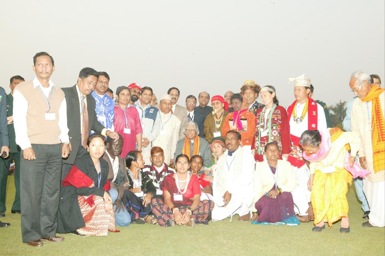| Caption: | The Republic Day Parade Tribal Guests & Tableaux Artists and NSS Volunteers (Participants of the Republic Day Parade) and National Cadet Corps (NCC) Cadets and Officers calling on the President of India, Dr A P J Abdul Kalam at the Central Lawn of Rashtrapati Bhavan in New Delhi on Jan 28, 2007 |