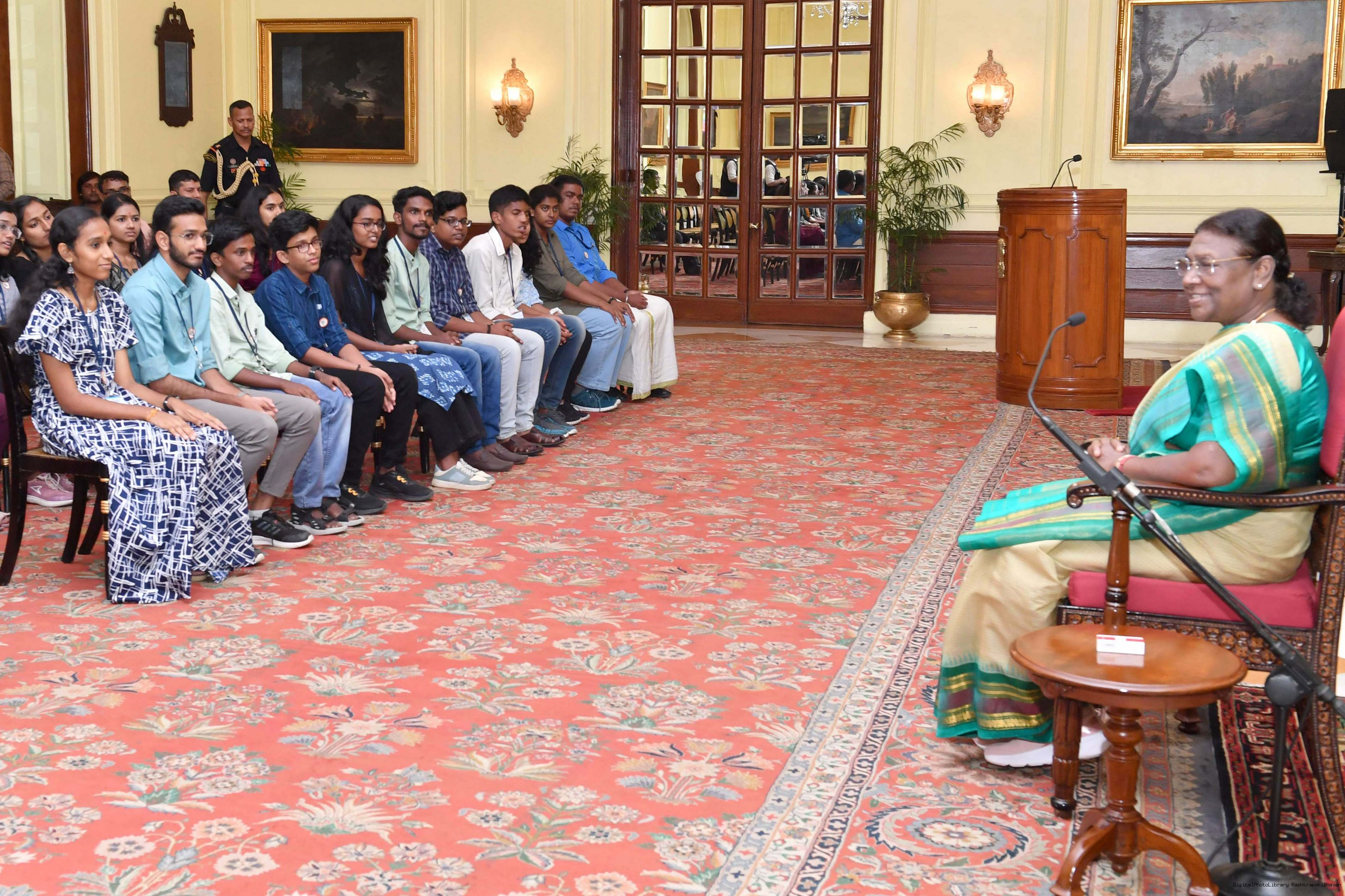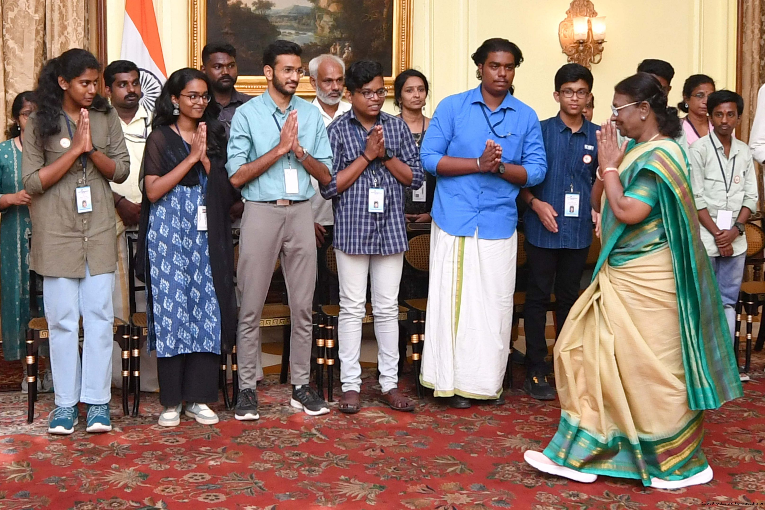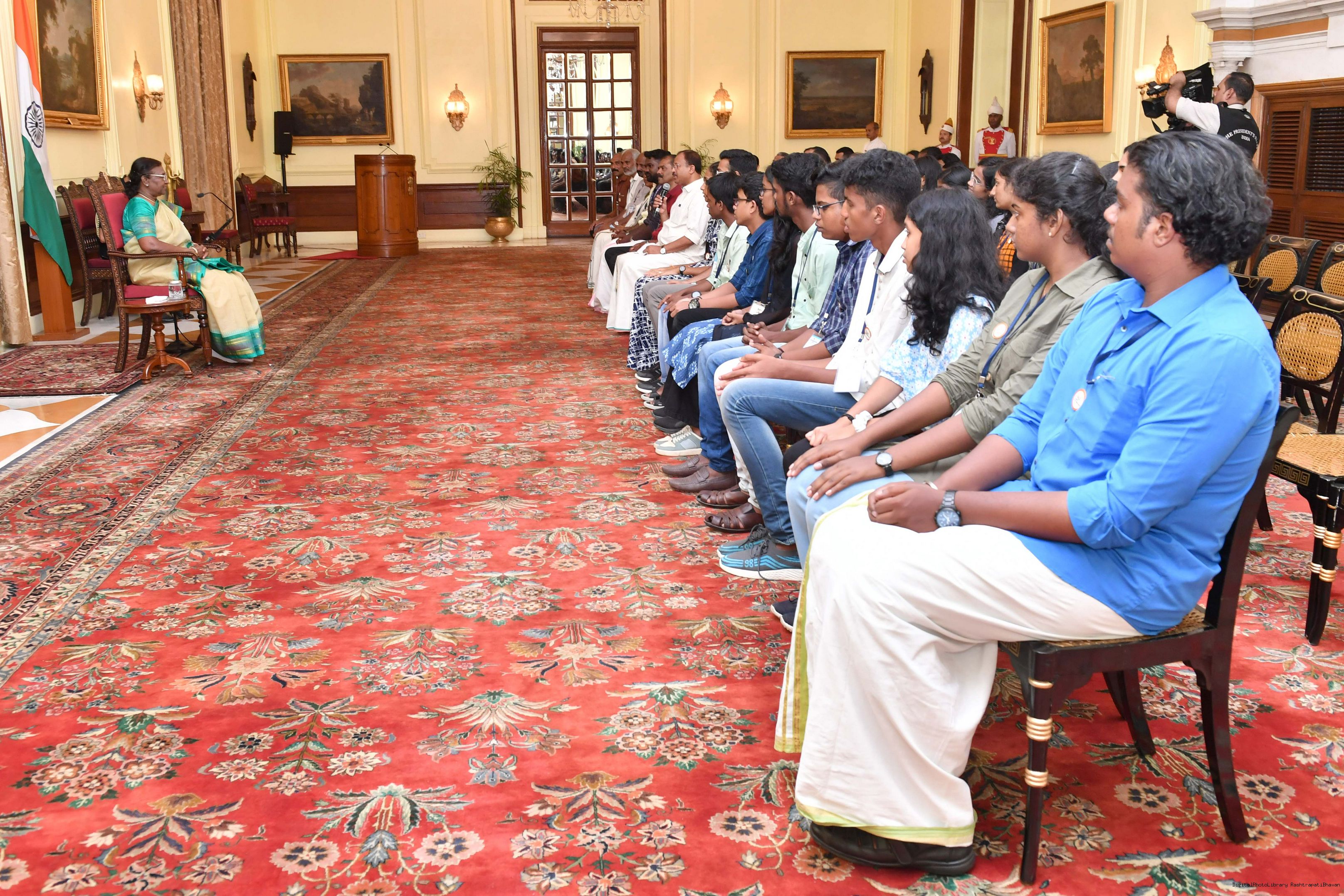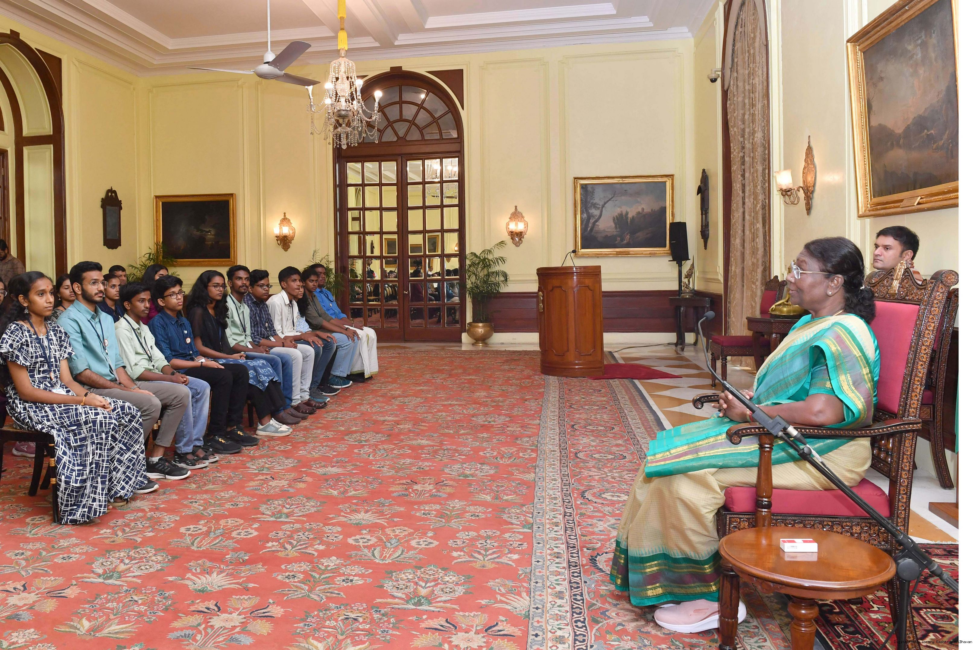 | Caption: | MoS for External Affairs MoS for Parliamentary Affairs, Shri V Muraleedharan along with others called on the President of India, Smt. Droupadi Murmu at Rashtrapati Bhavan on August 14, 2023. |