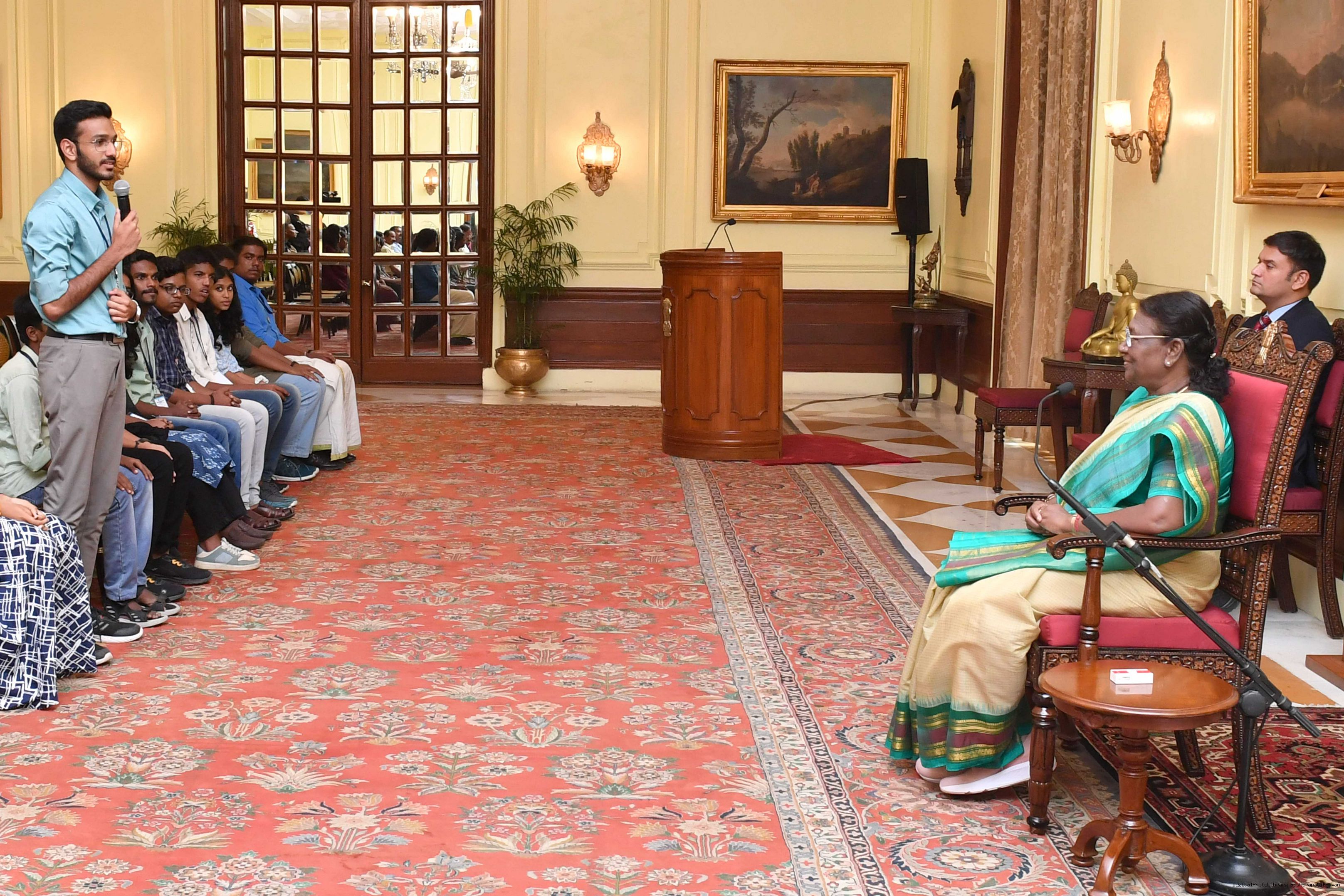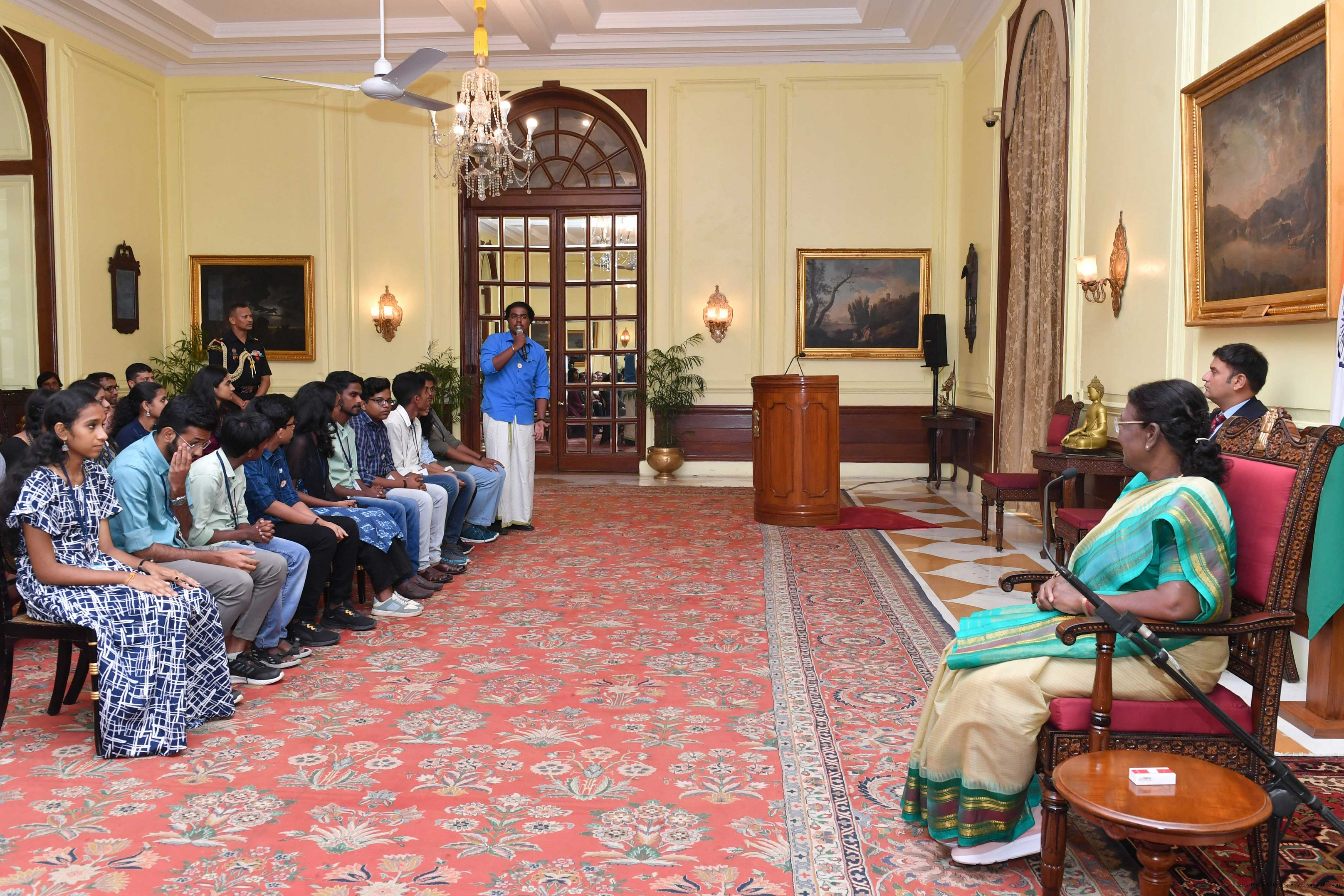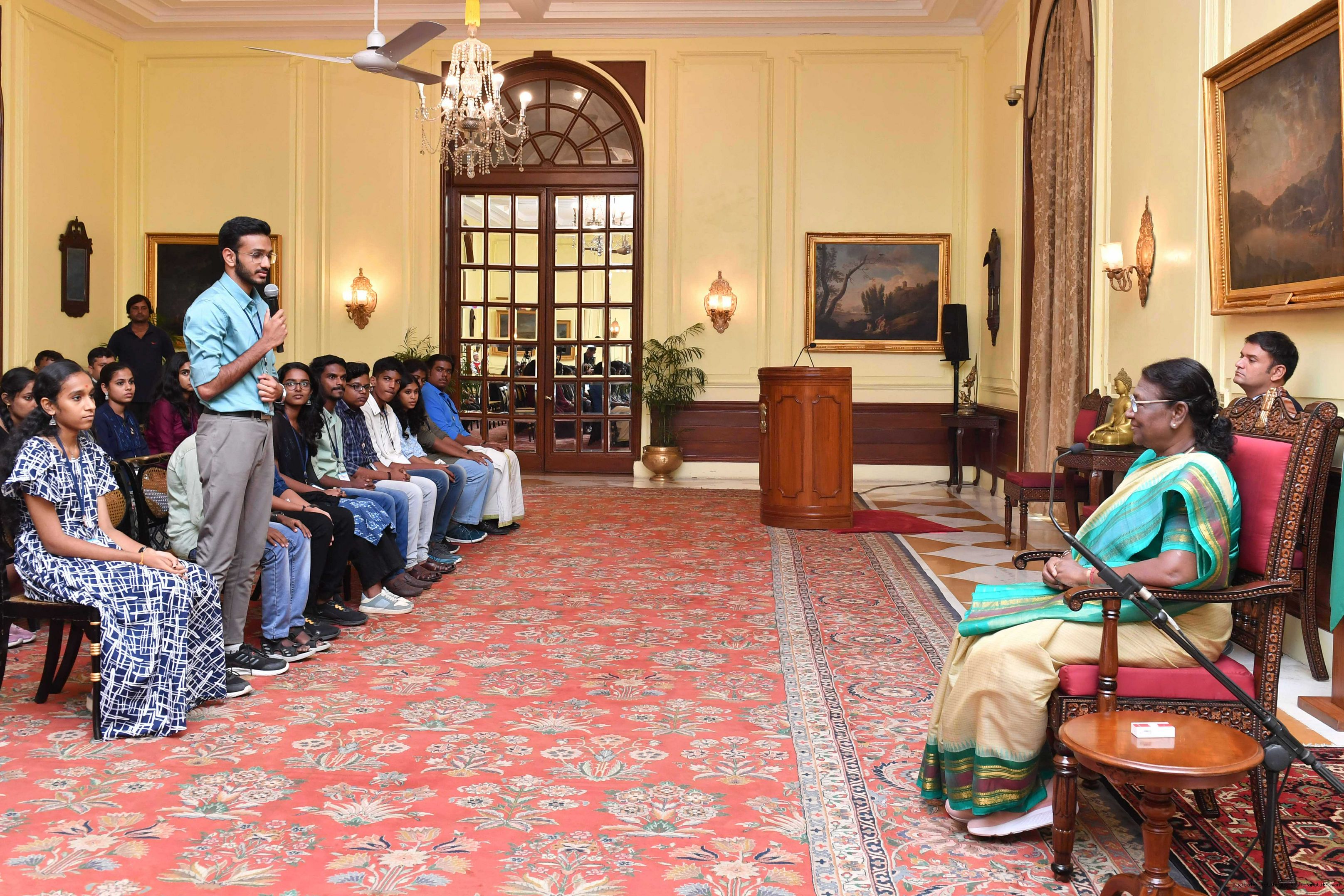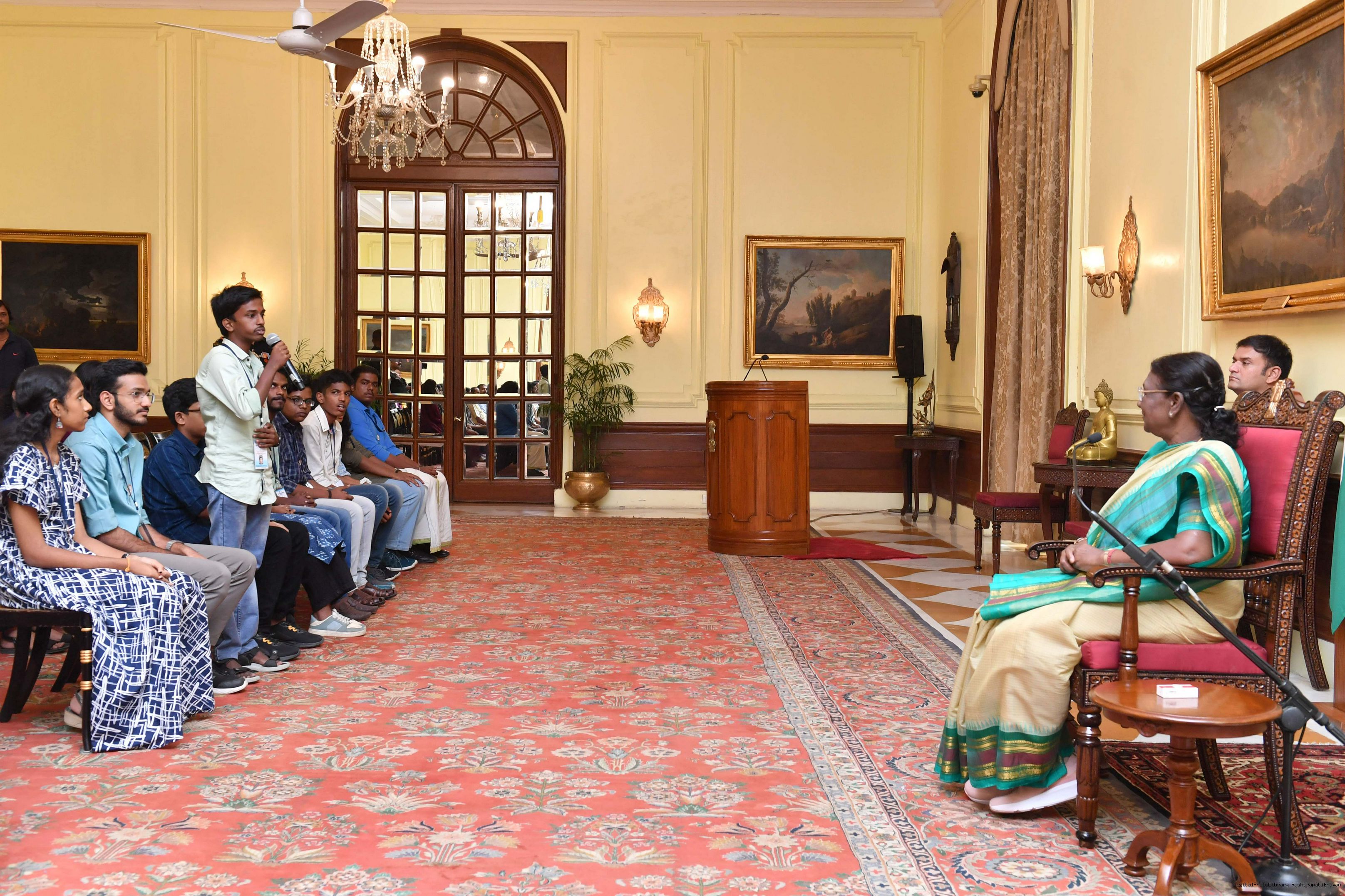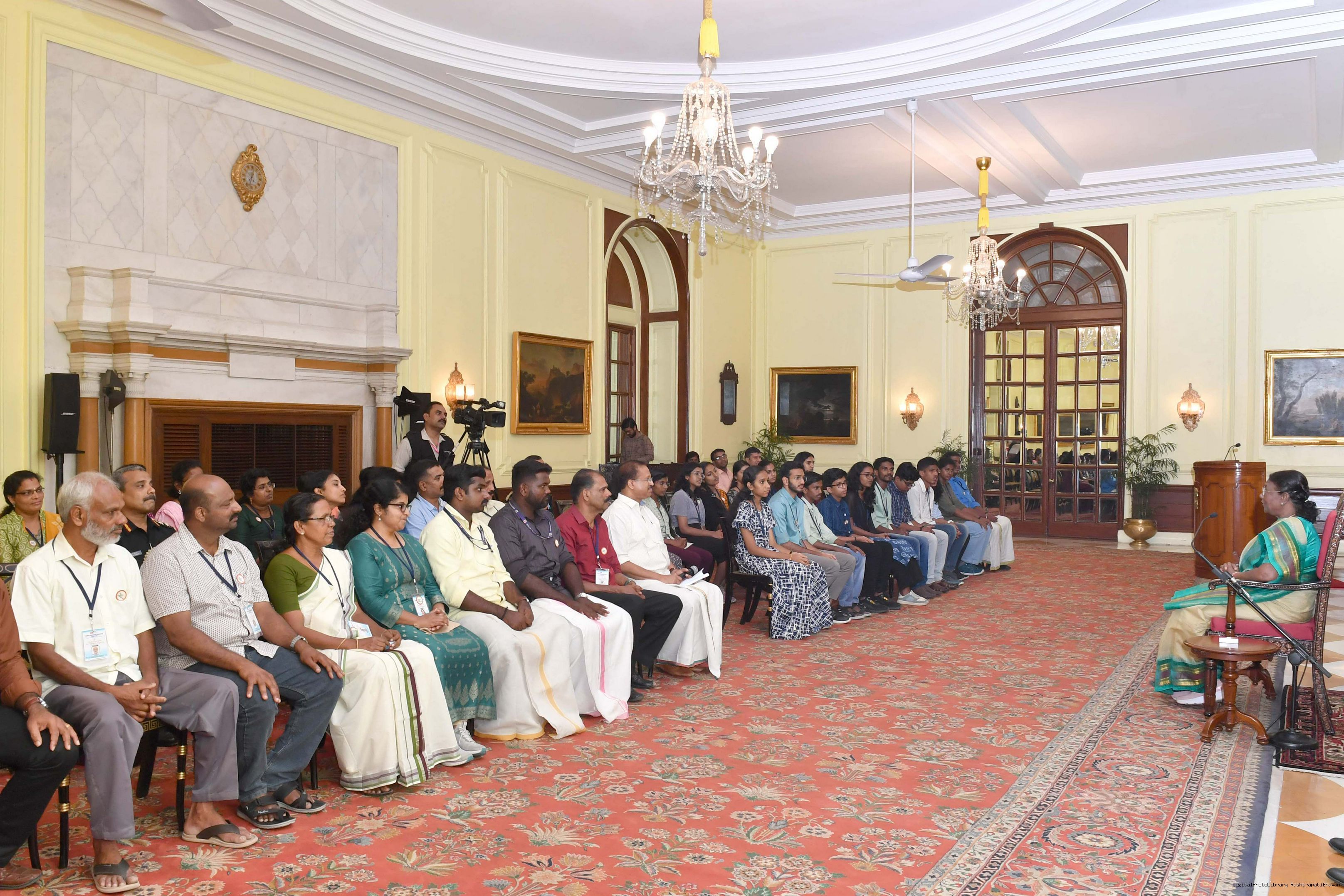 | Caption: | MoS for External Affairs MoS for Parliamentary Affairs, Shri V Muraleedharan along with others called on the President of India, Smt. Droupadi Murmu at Rashtrapati Bhavan on August 14, 2023. |