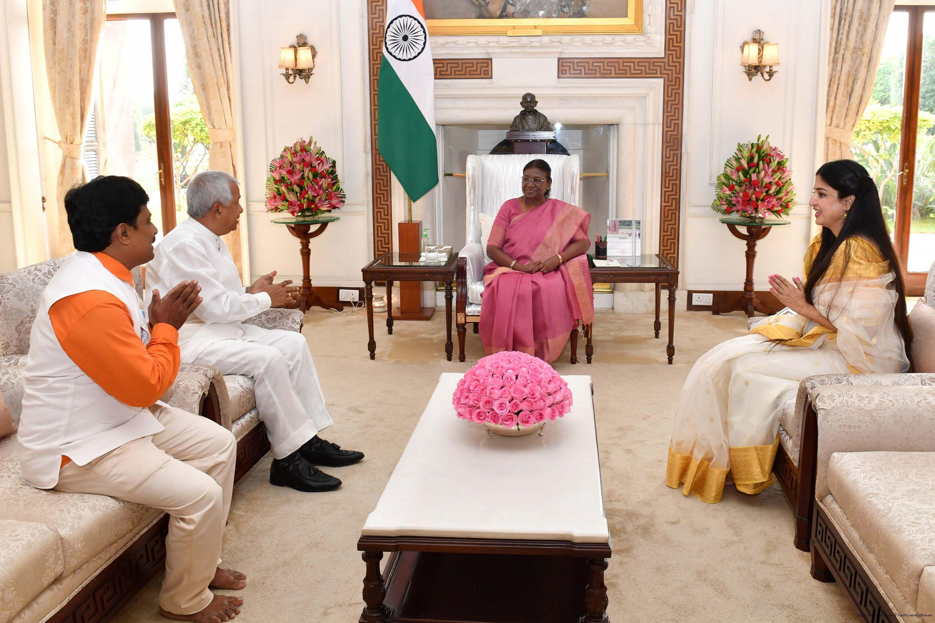 | Caption: | Shri Ramachandru Tejavath, IAS Retd along with others meeting with the President of India, Smt. Droupadi Murmu at Rashtrapati Bhavan on August 14, 2023. |