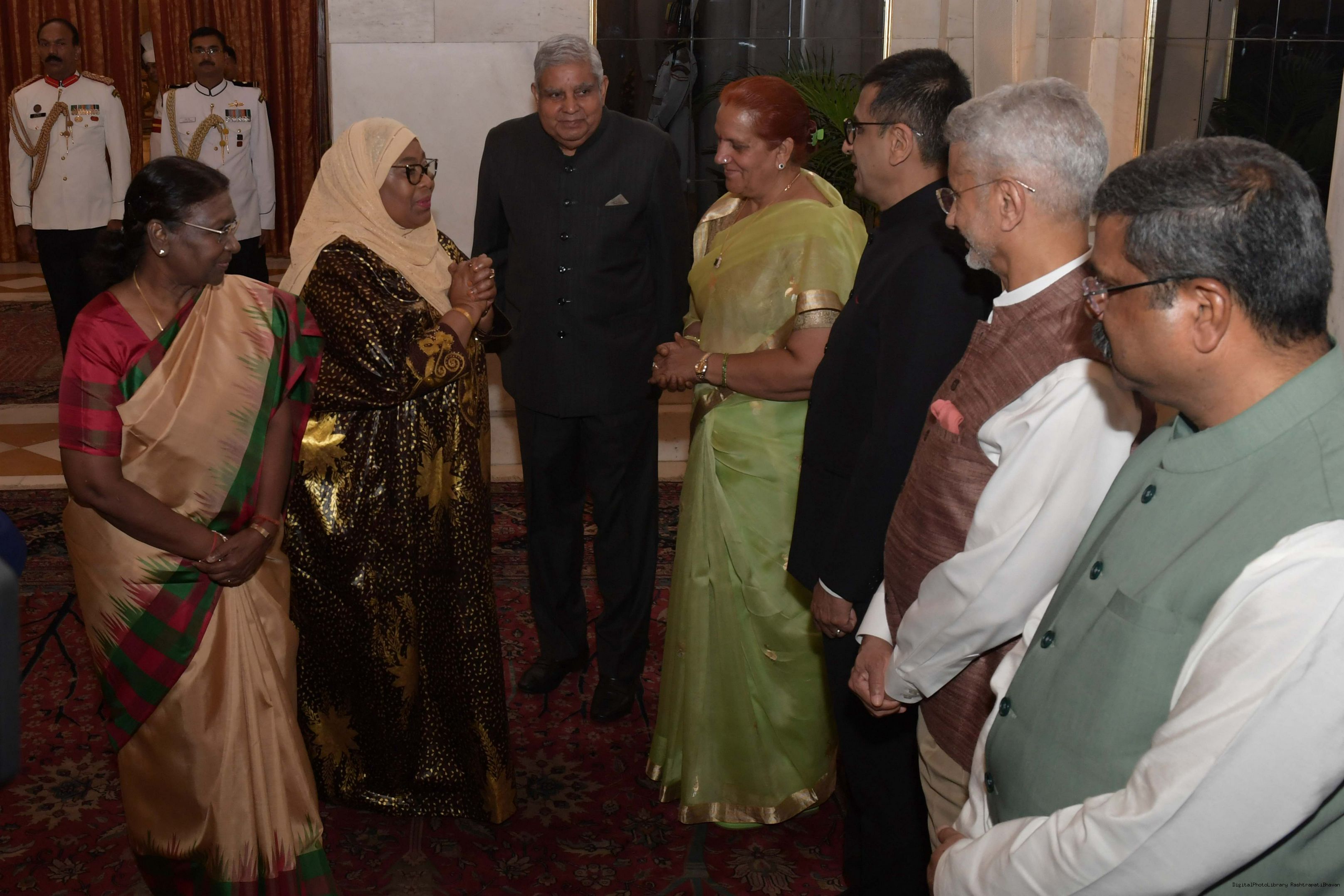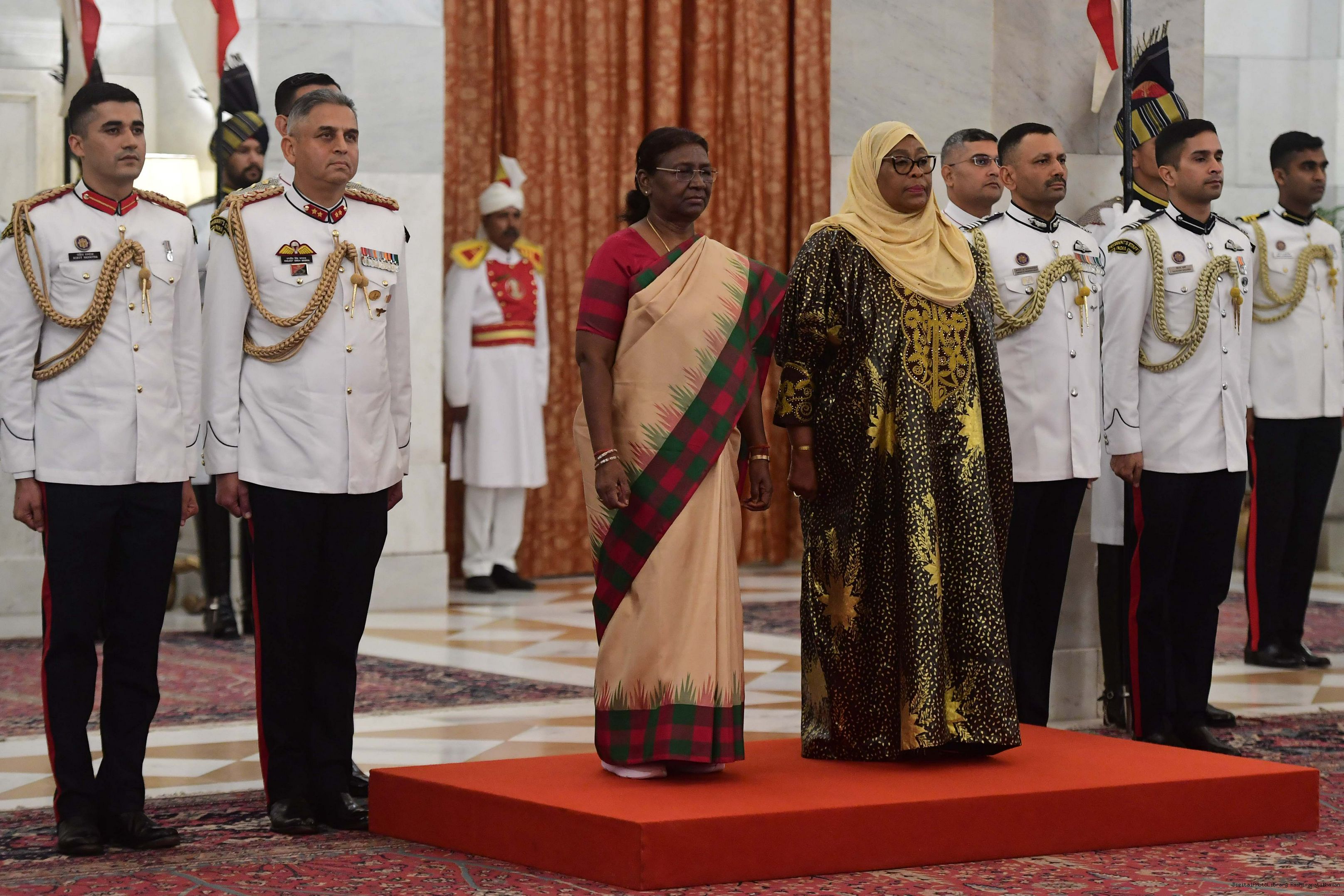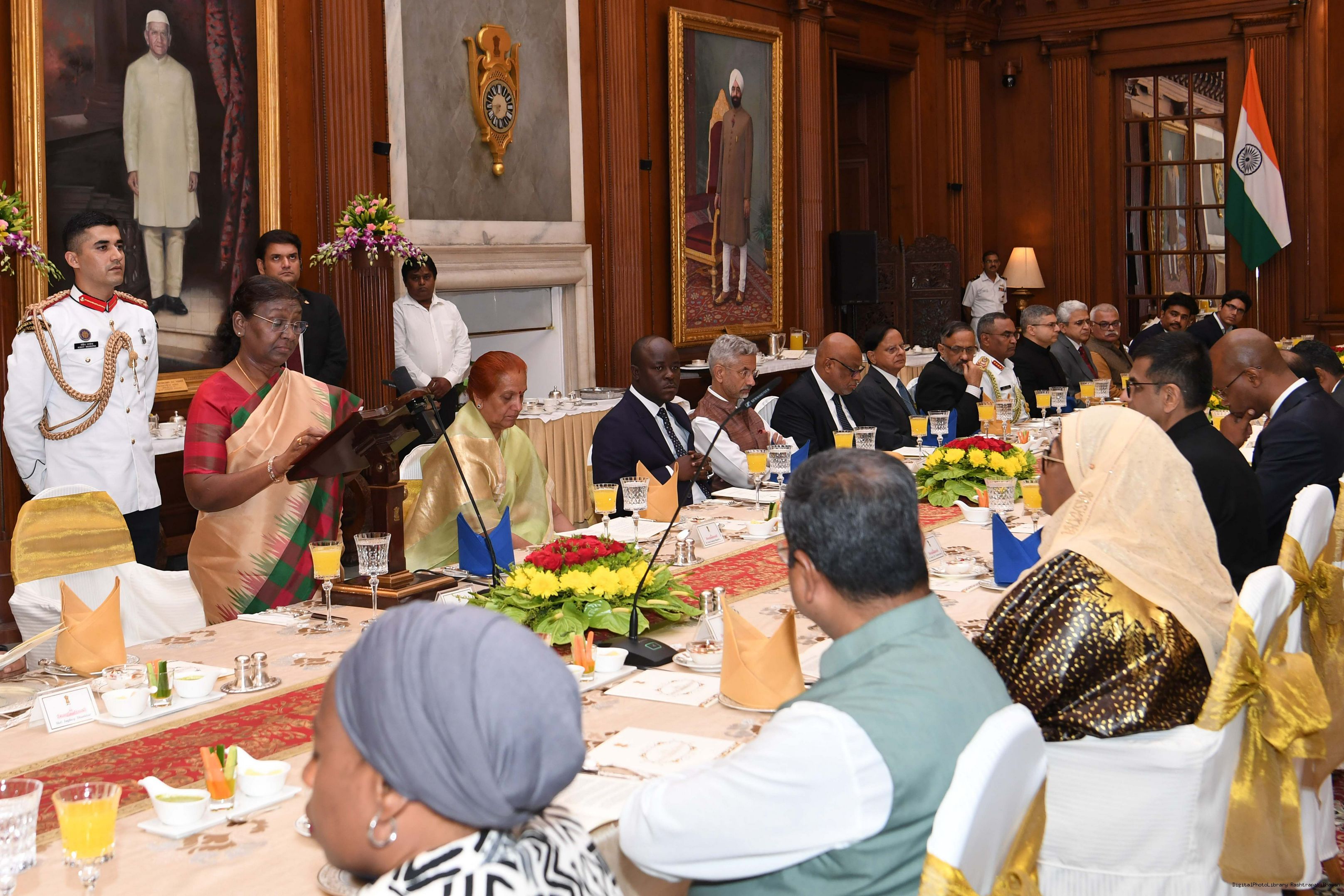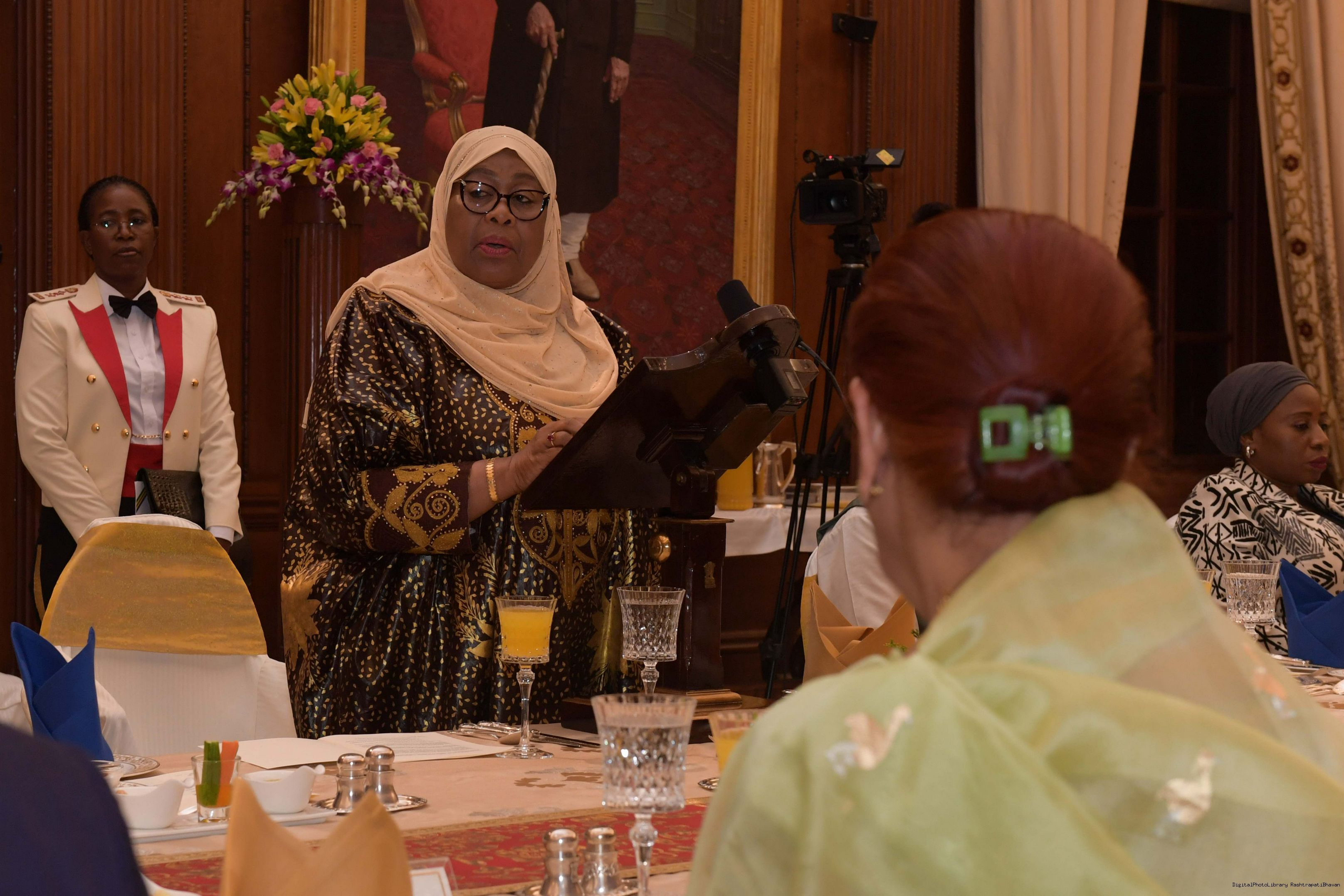 | Caption: | The President of India, Smt. Droupadi Murmu hosting a Banquet in honour H.E. Dr Samia Suluhu Hassan, the President of the United Republic of Tanzania at Rashtrapati Bhavan on October 09, 2023. |