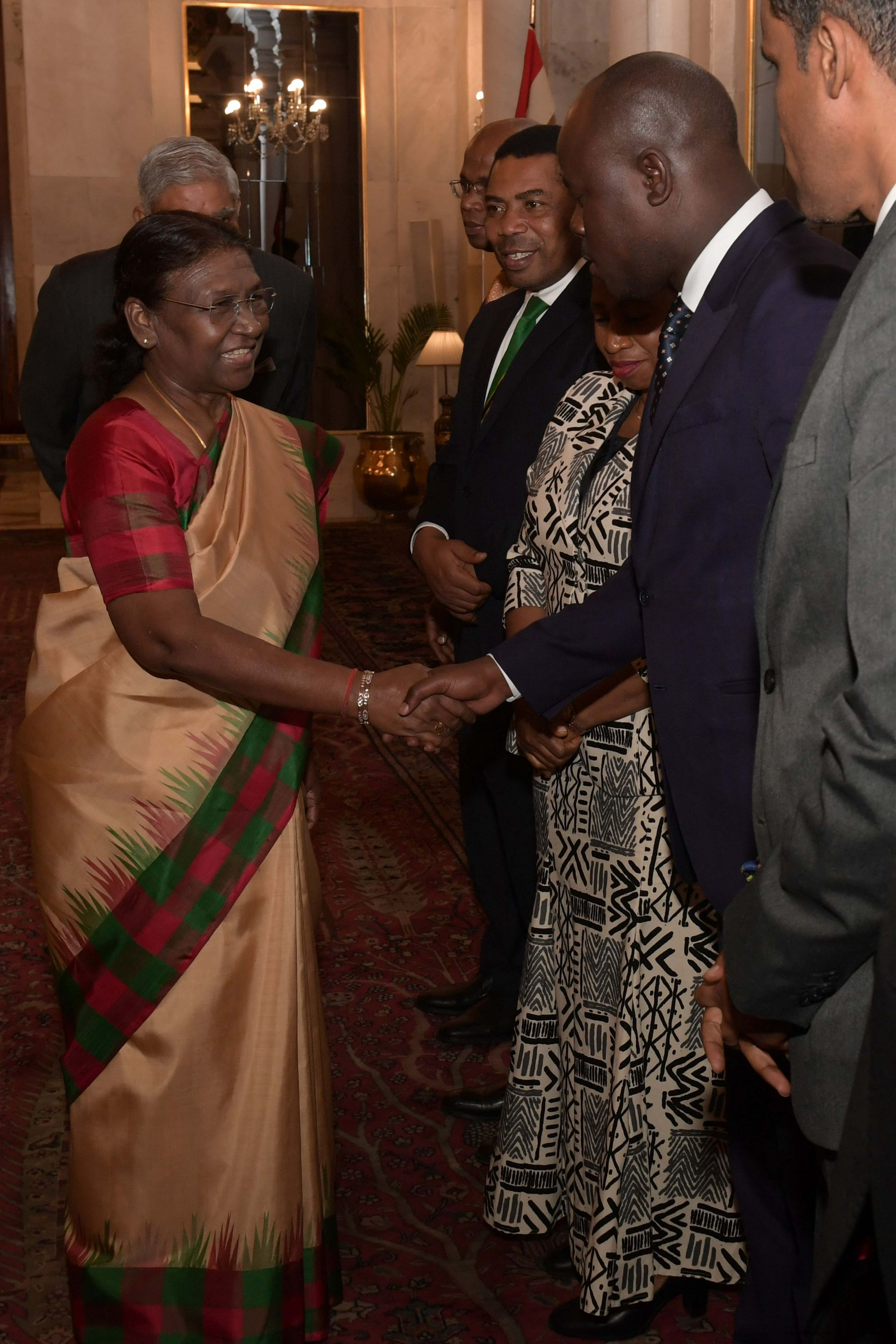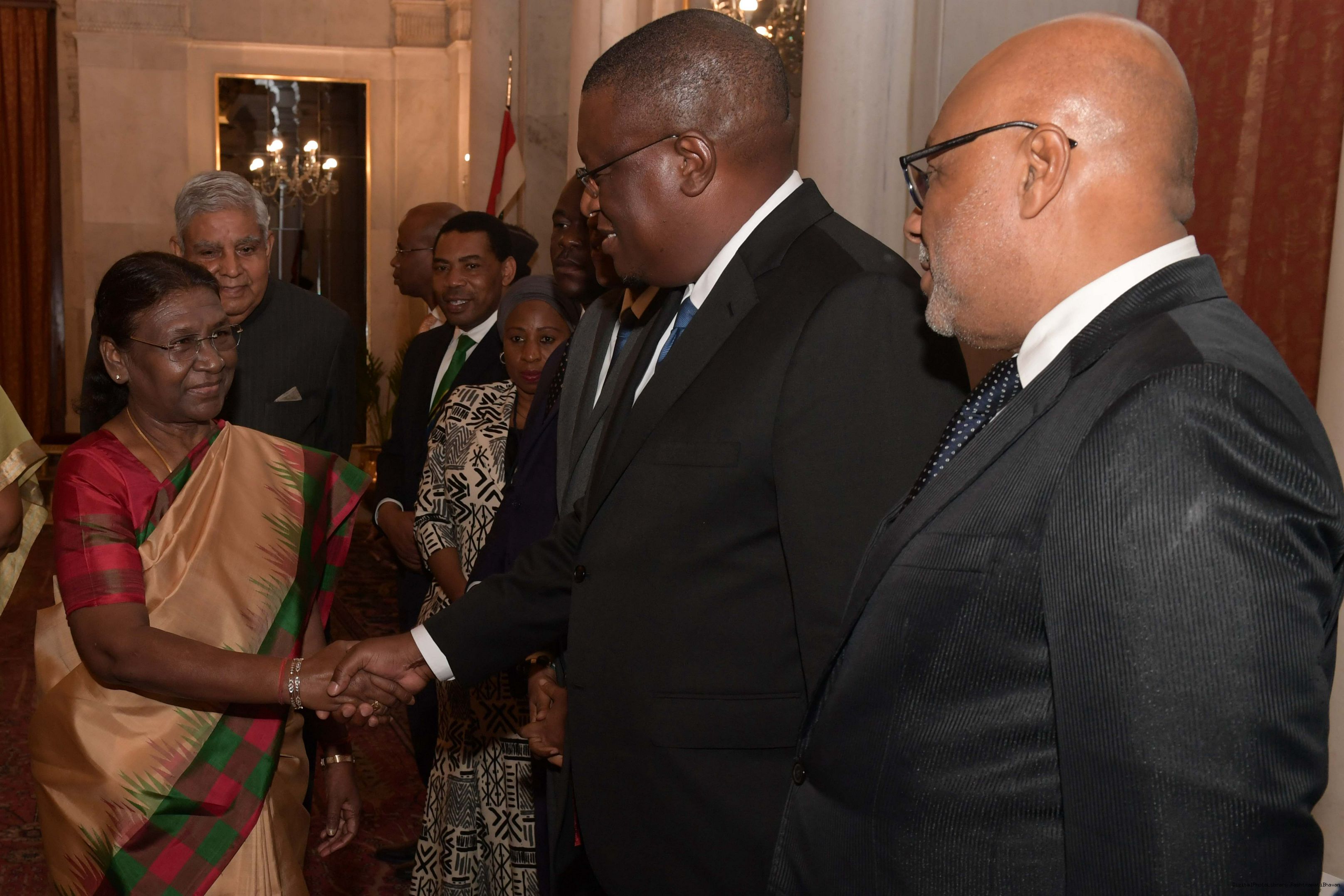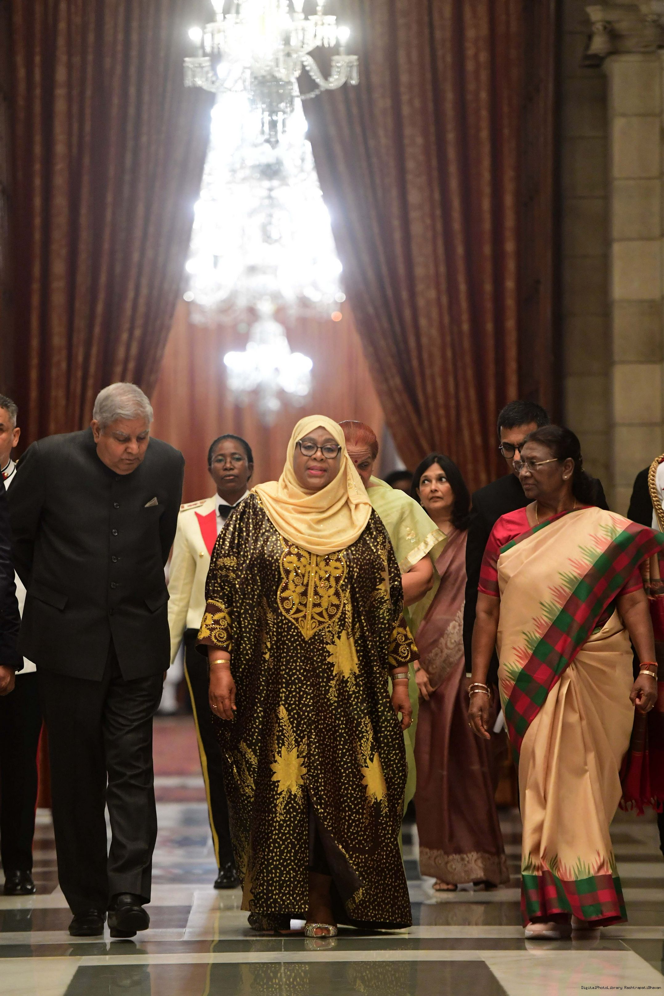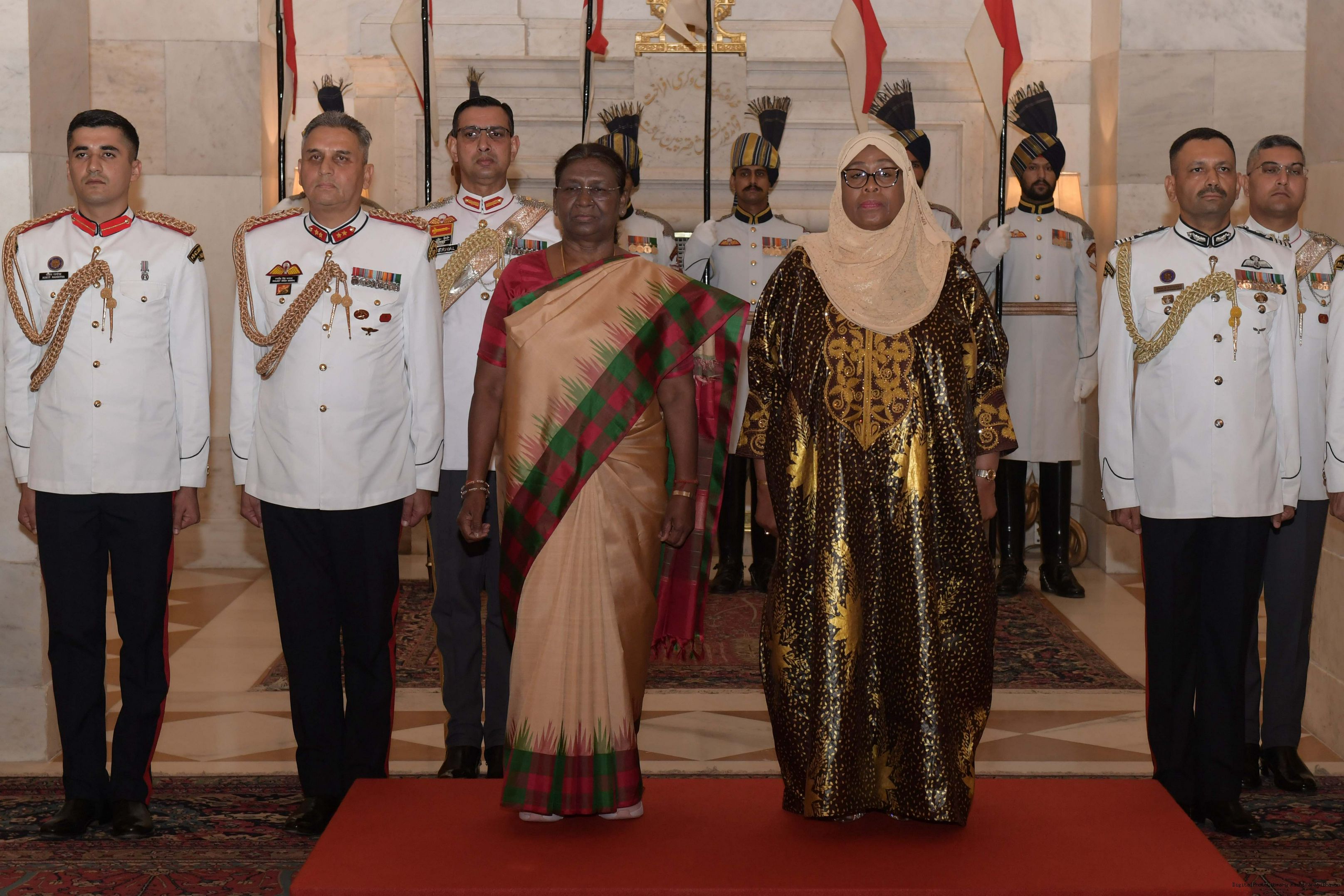| Caption: | The President of India, Smt. Droupadi Murmu hosting a Banquet in honour H.E. Dr Samia Suluhu Hassan, the President of the United Republic of Tanzania at Rashtrapati Bhavan on October 09, 2023. |