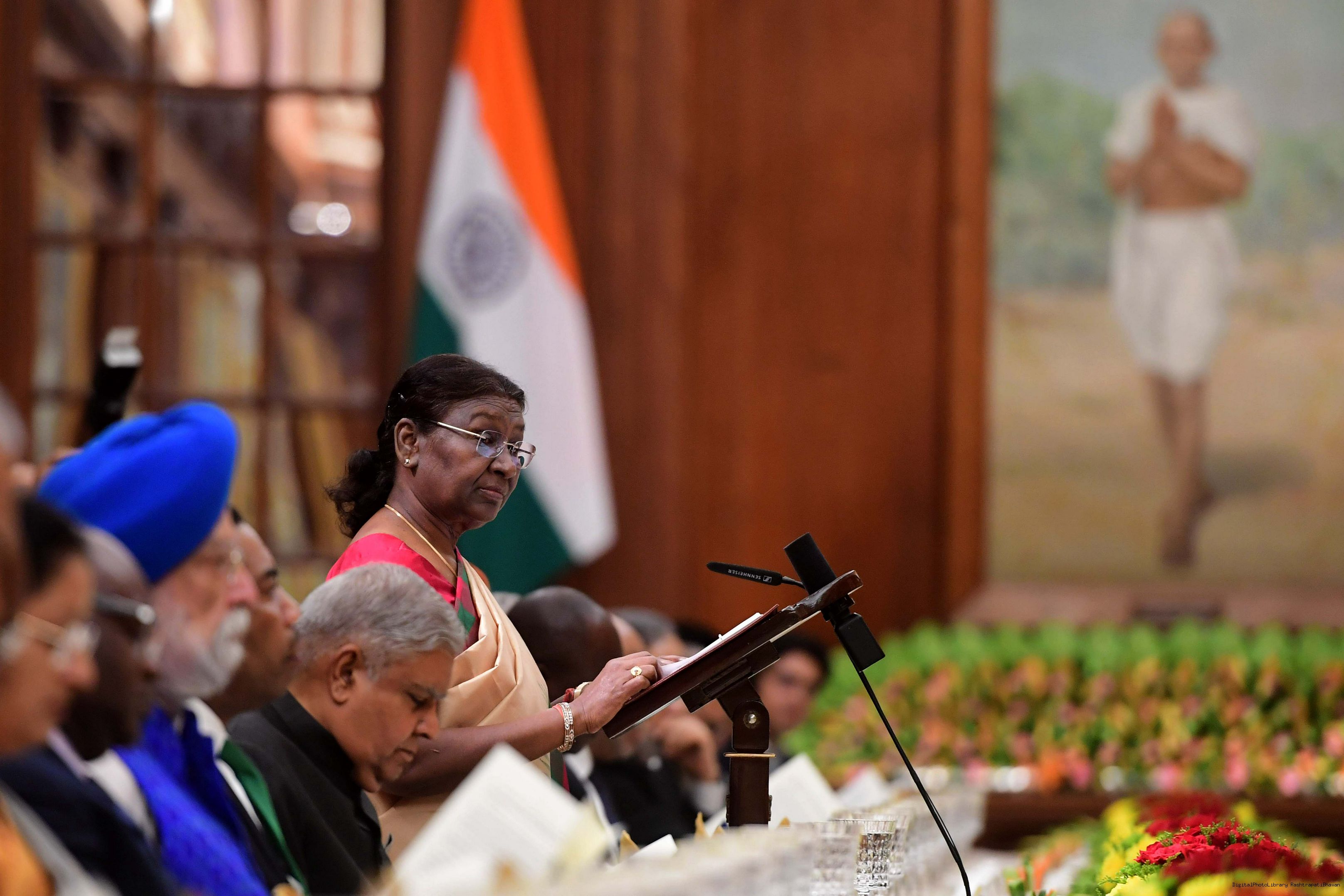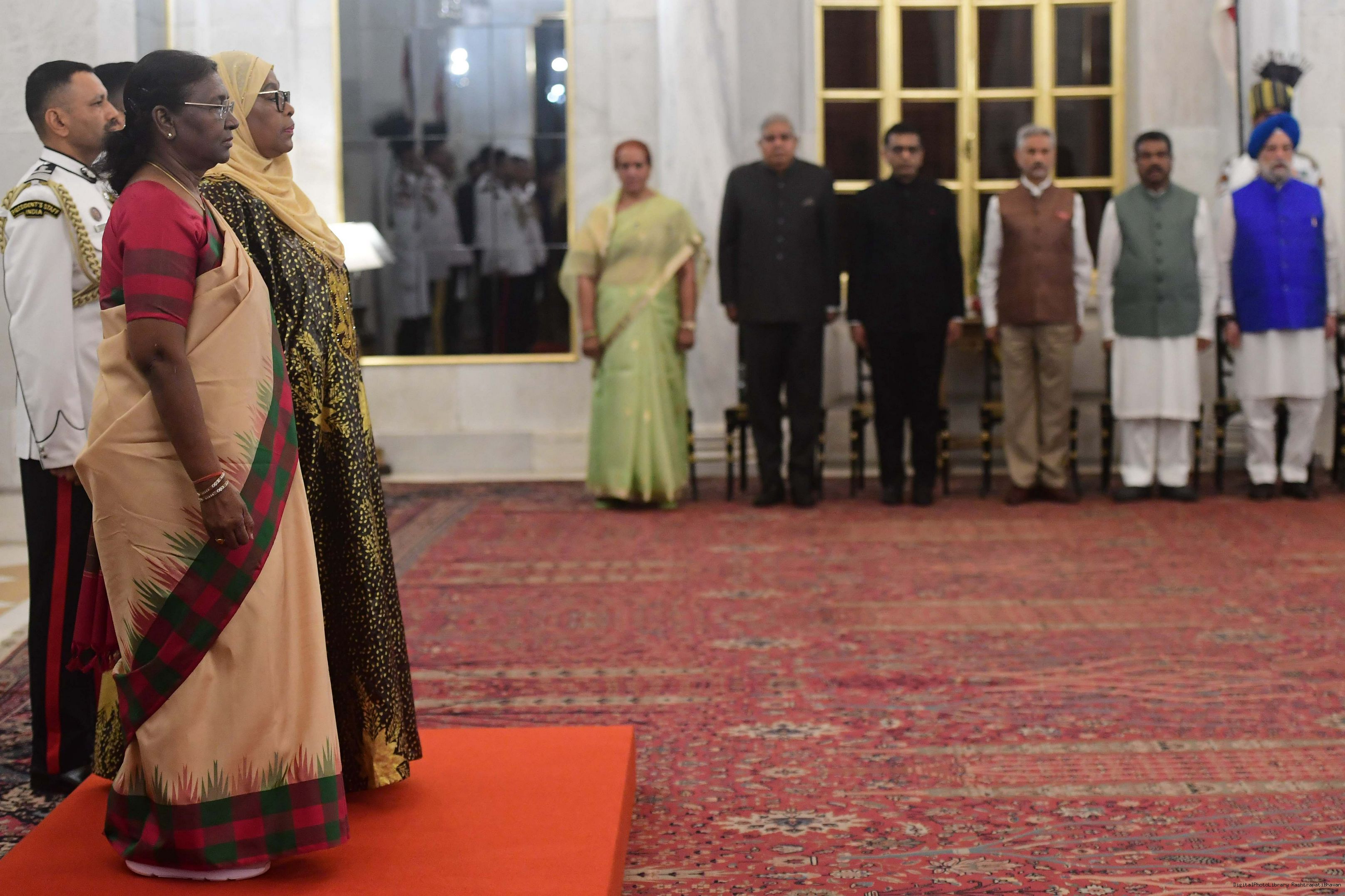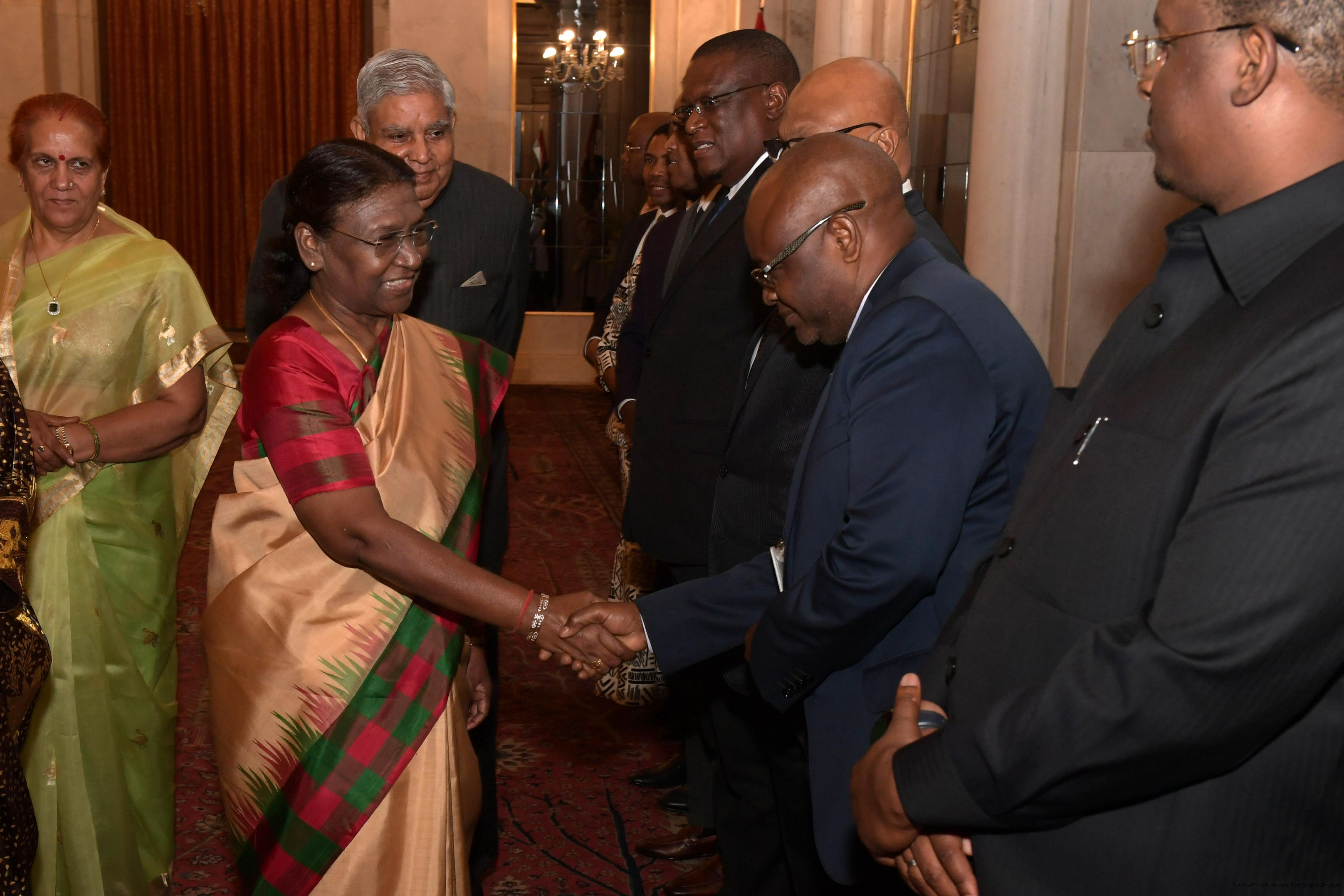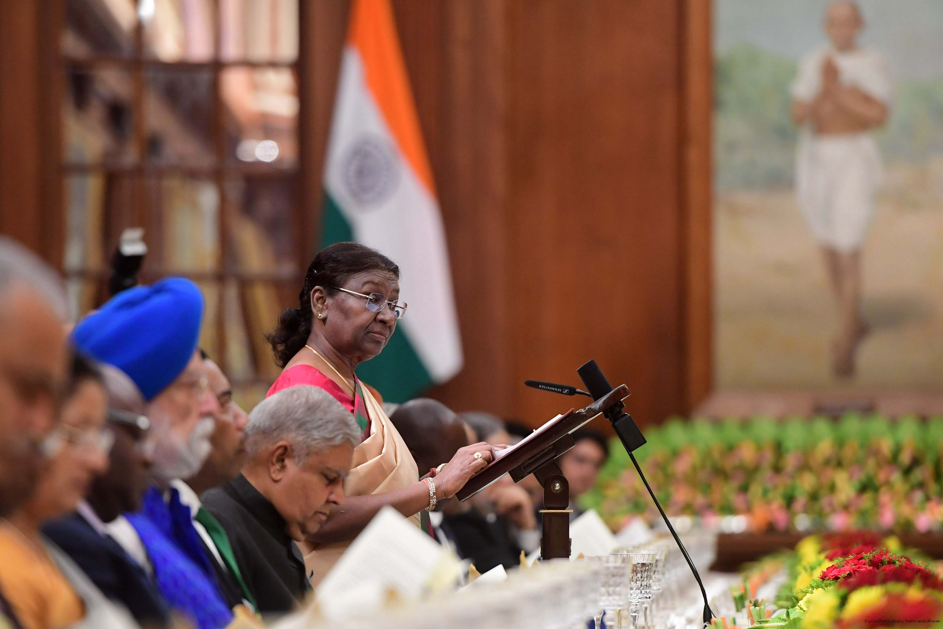 | Caption: | The President of India, Smt. Droupadi Murmu hosting a Banquet in honour H.E. Dr Samia Suluhu Hassan, the President of the United Republic of Tanzania at Rashtrapati Bhavan on October 09, 2023. |