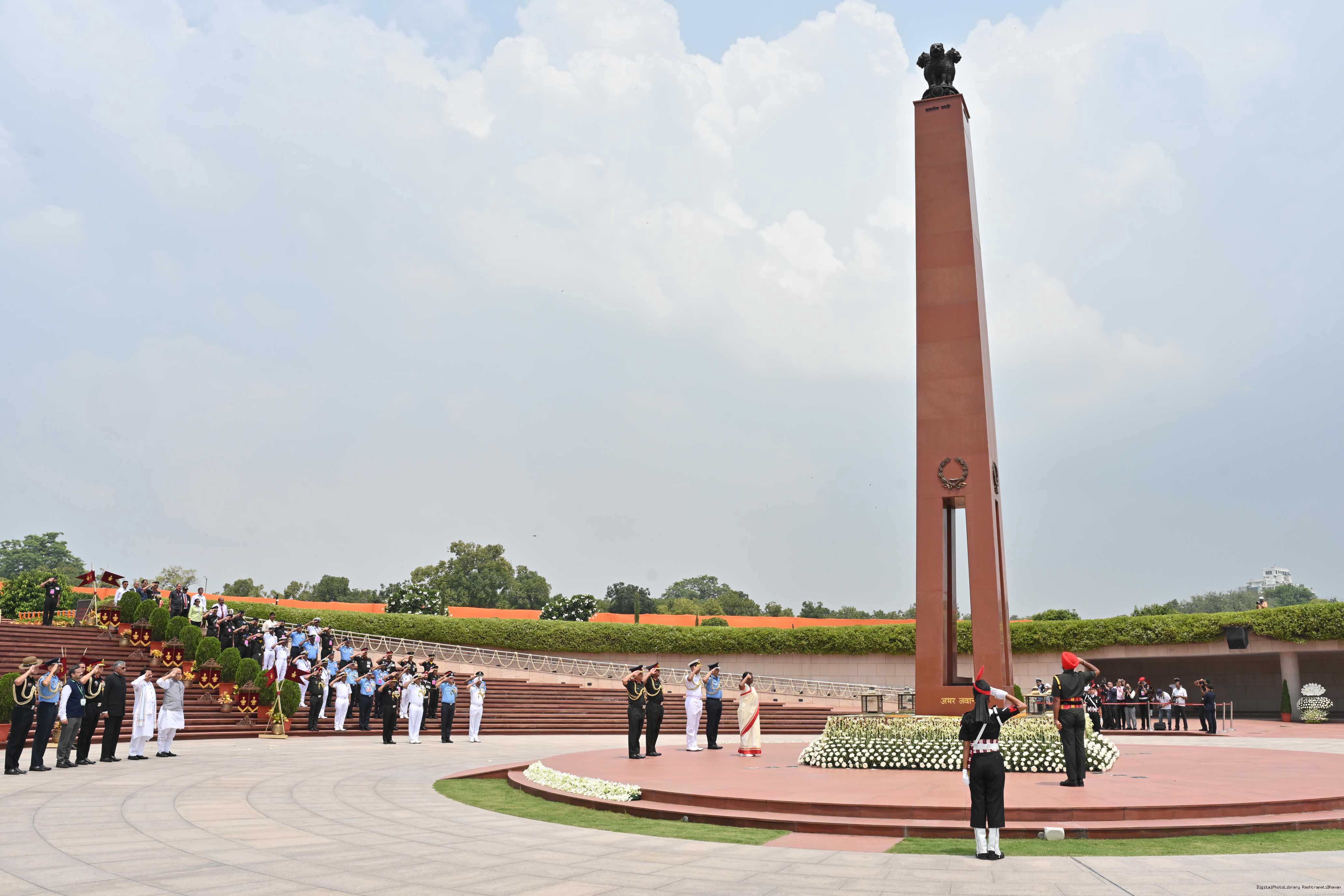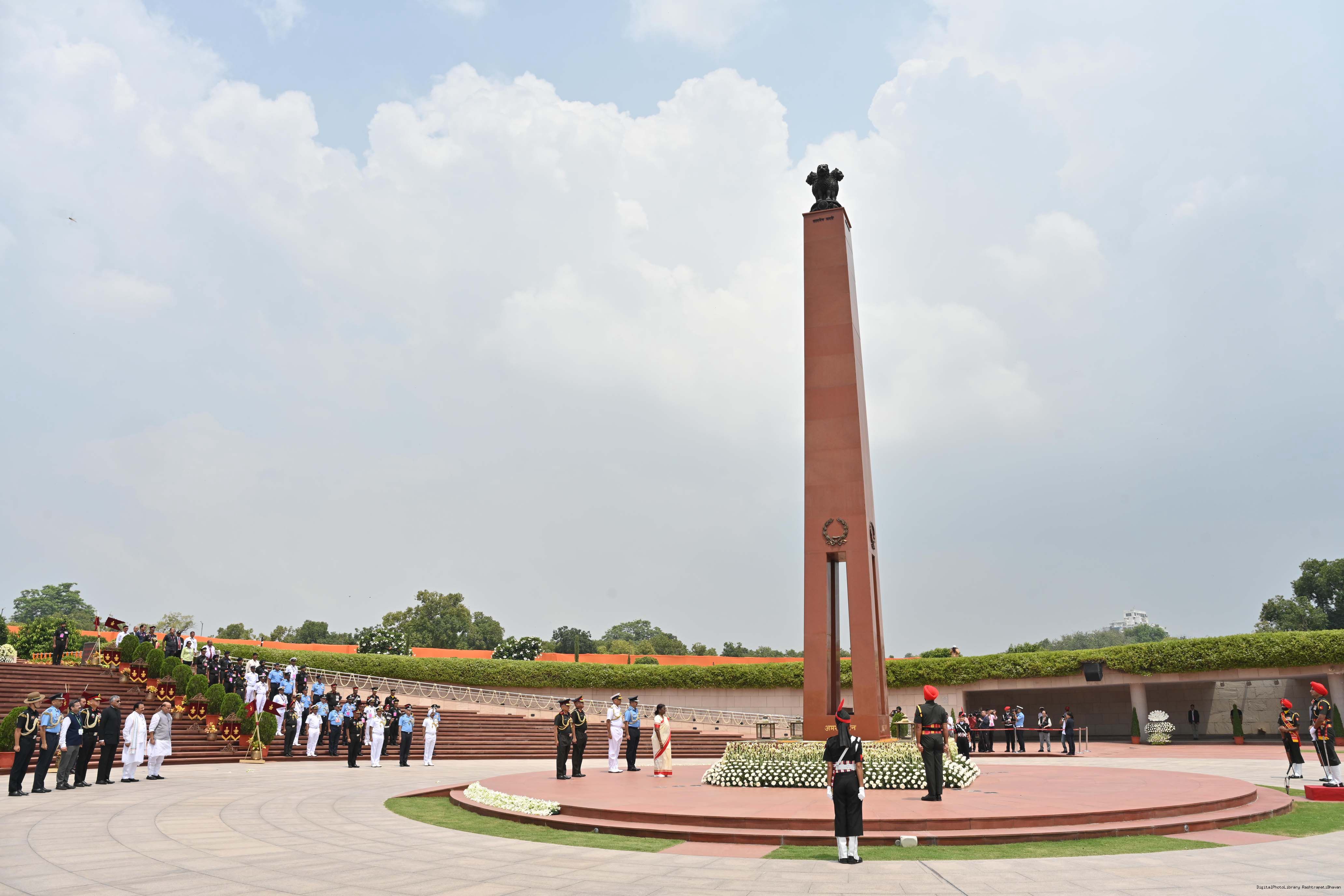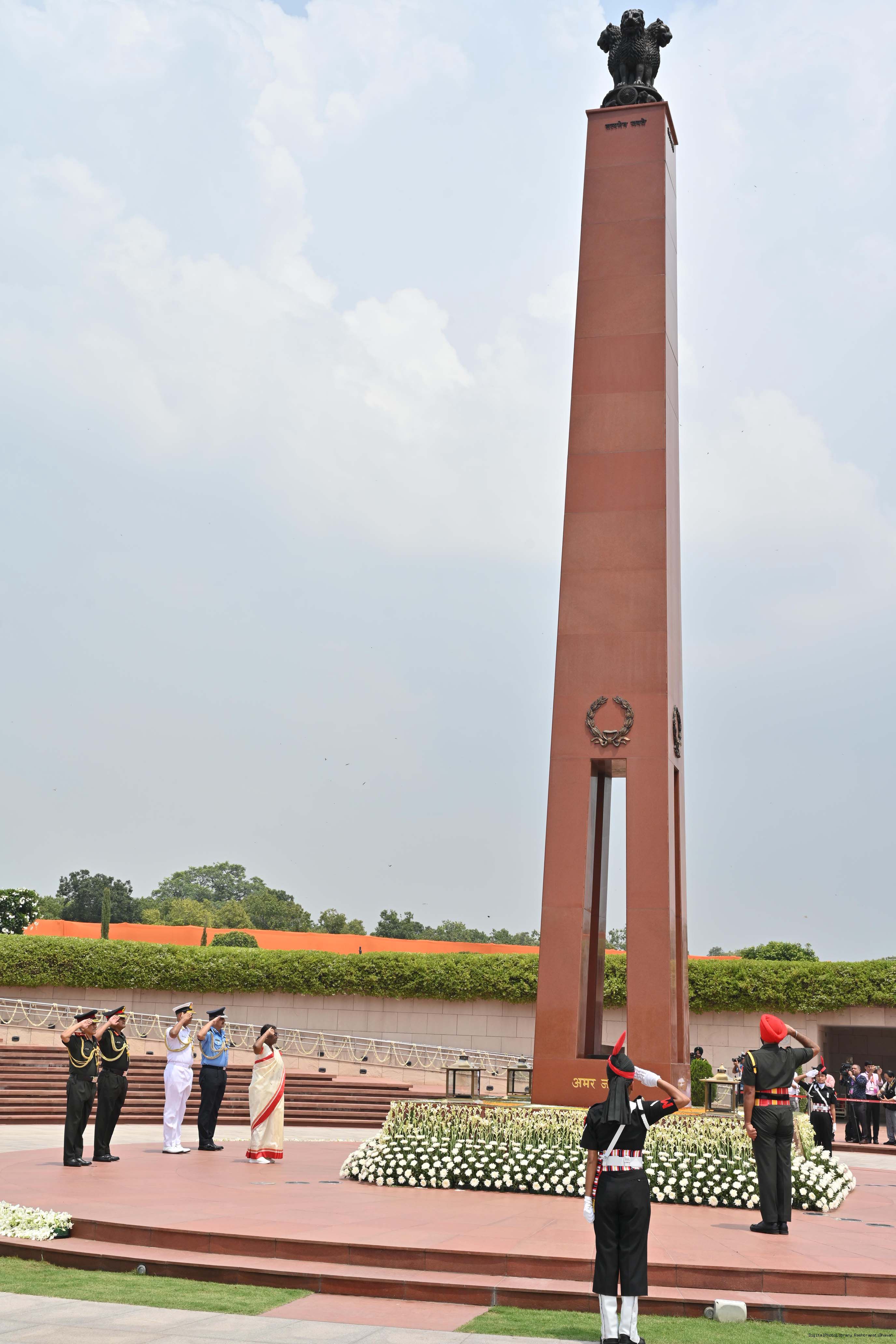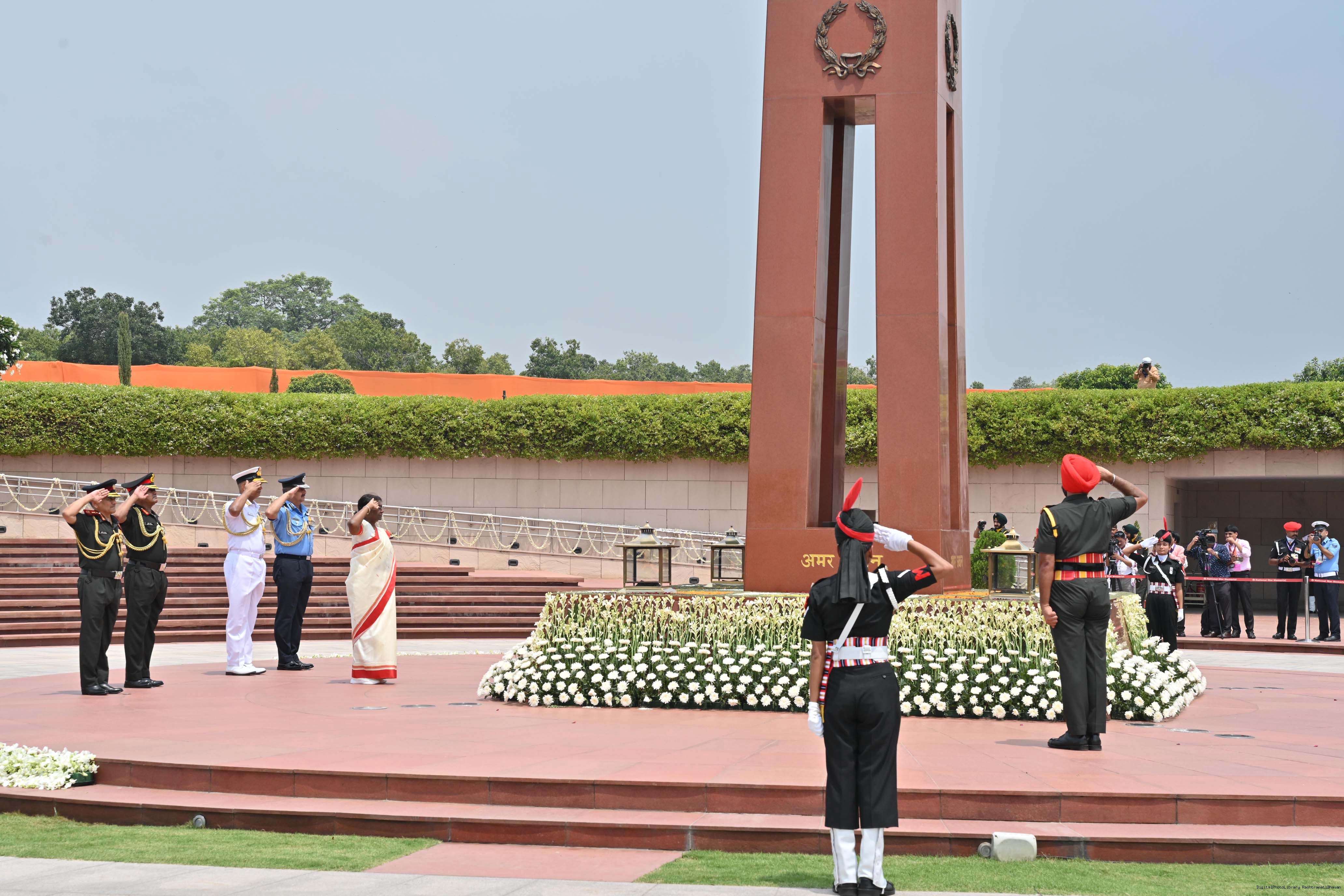 | Caption: | The President of India, Smt. Droupadi Murmu Wreath laying the National War Memorial and paid homage to the martyrs, on the occasion of 77th Independence Day, in New Delhi on August 15, 2023. |