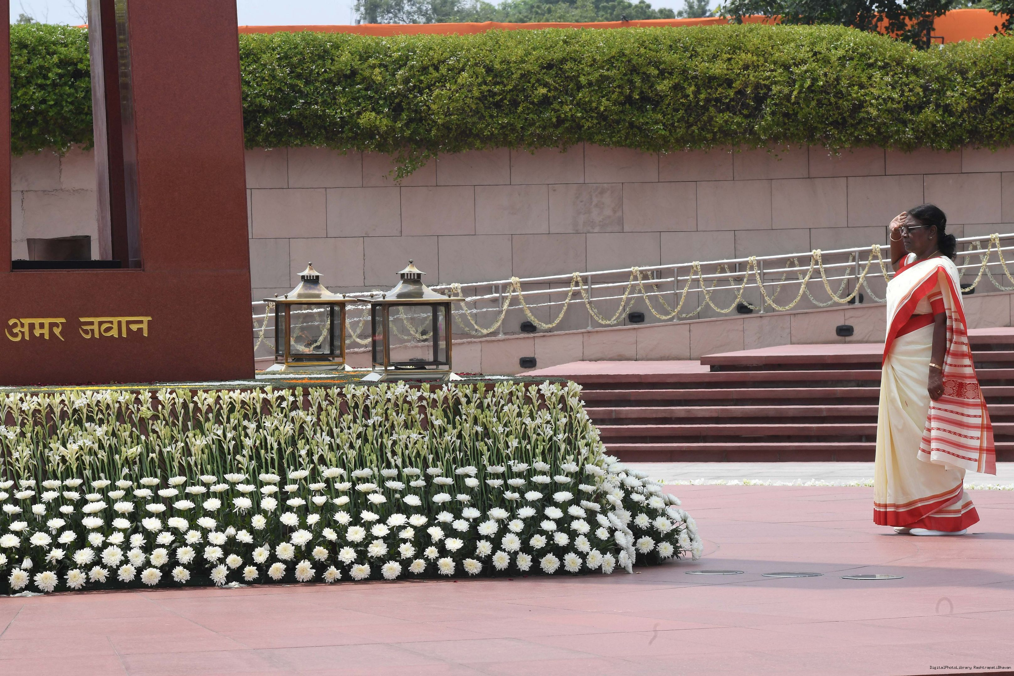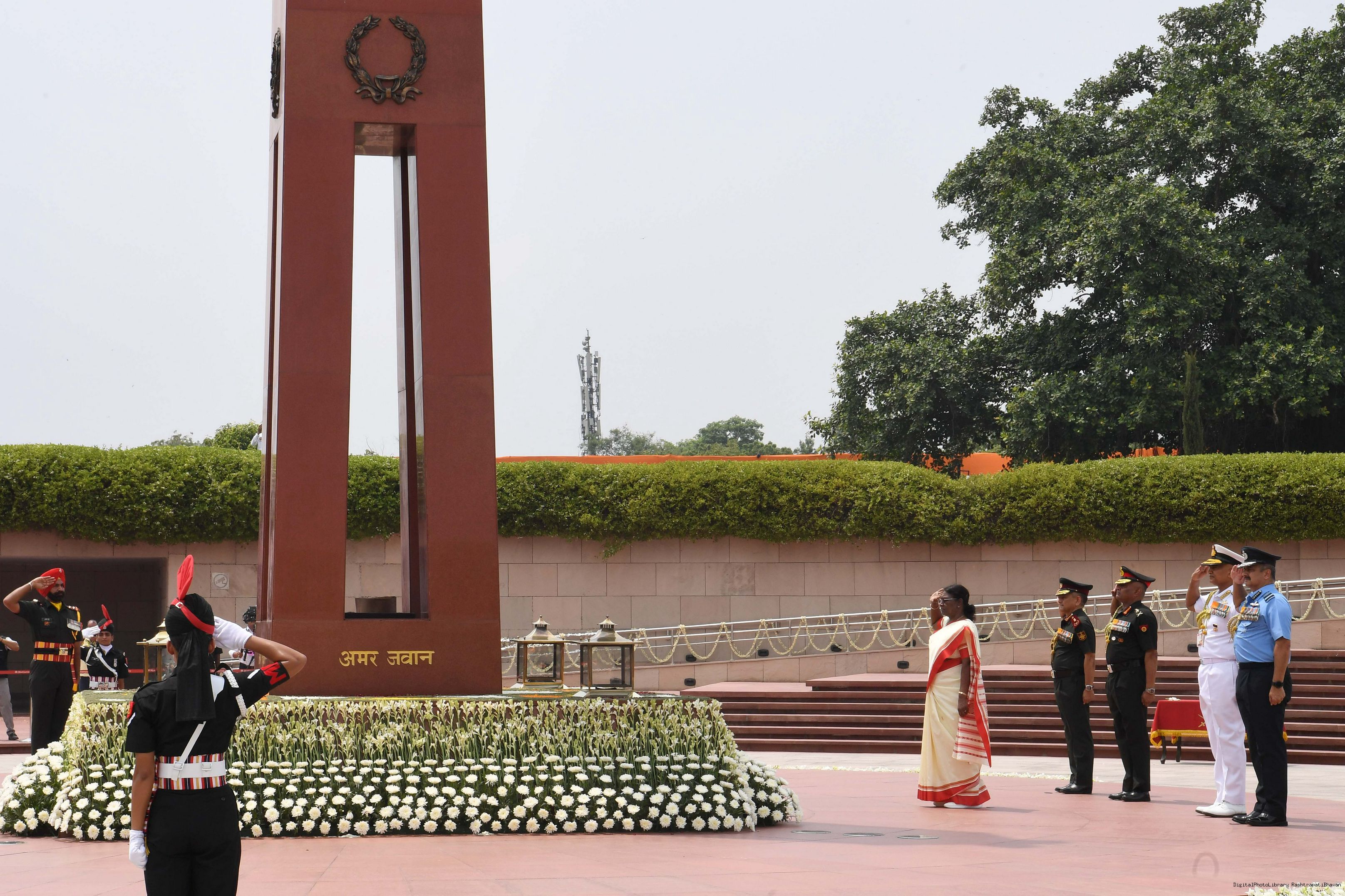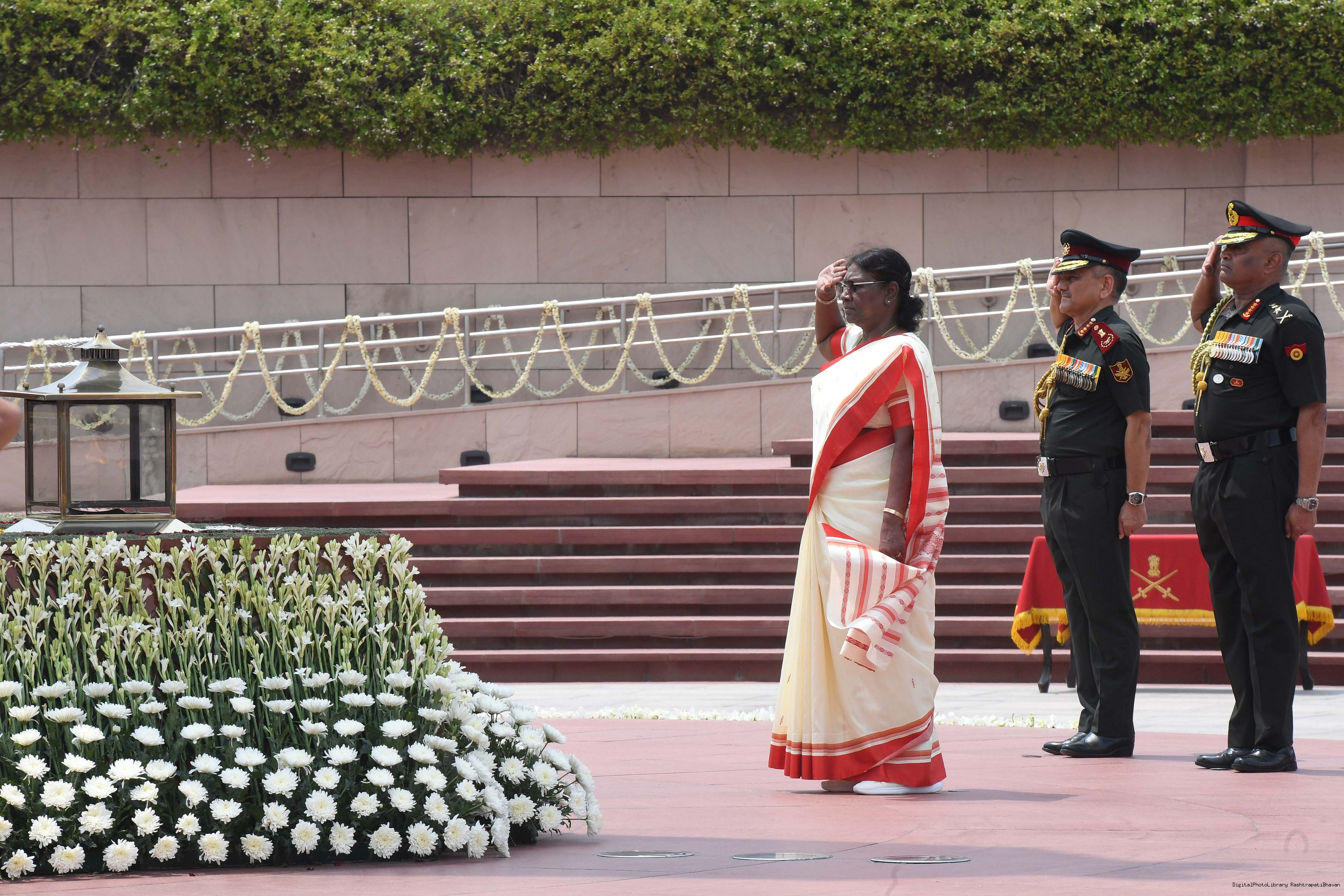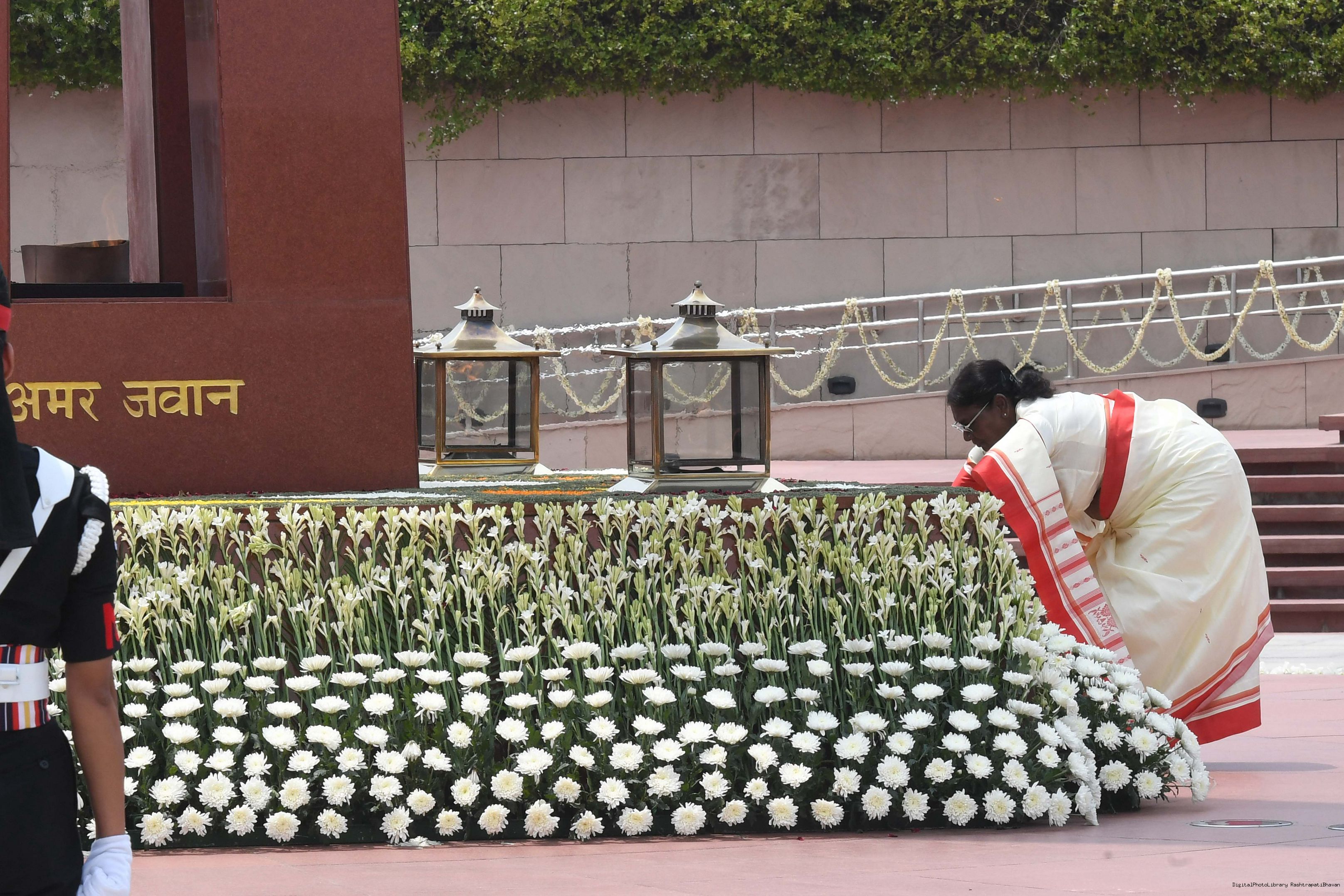 | Caption: | The President of India, Smt. Droupadi Murmu Wreath laying the National War Memorial and paid homage to the martyrs, on the occasion of 77th Independence Day, in New Delhi on August 15, 2023. |