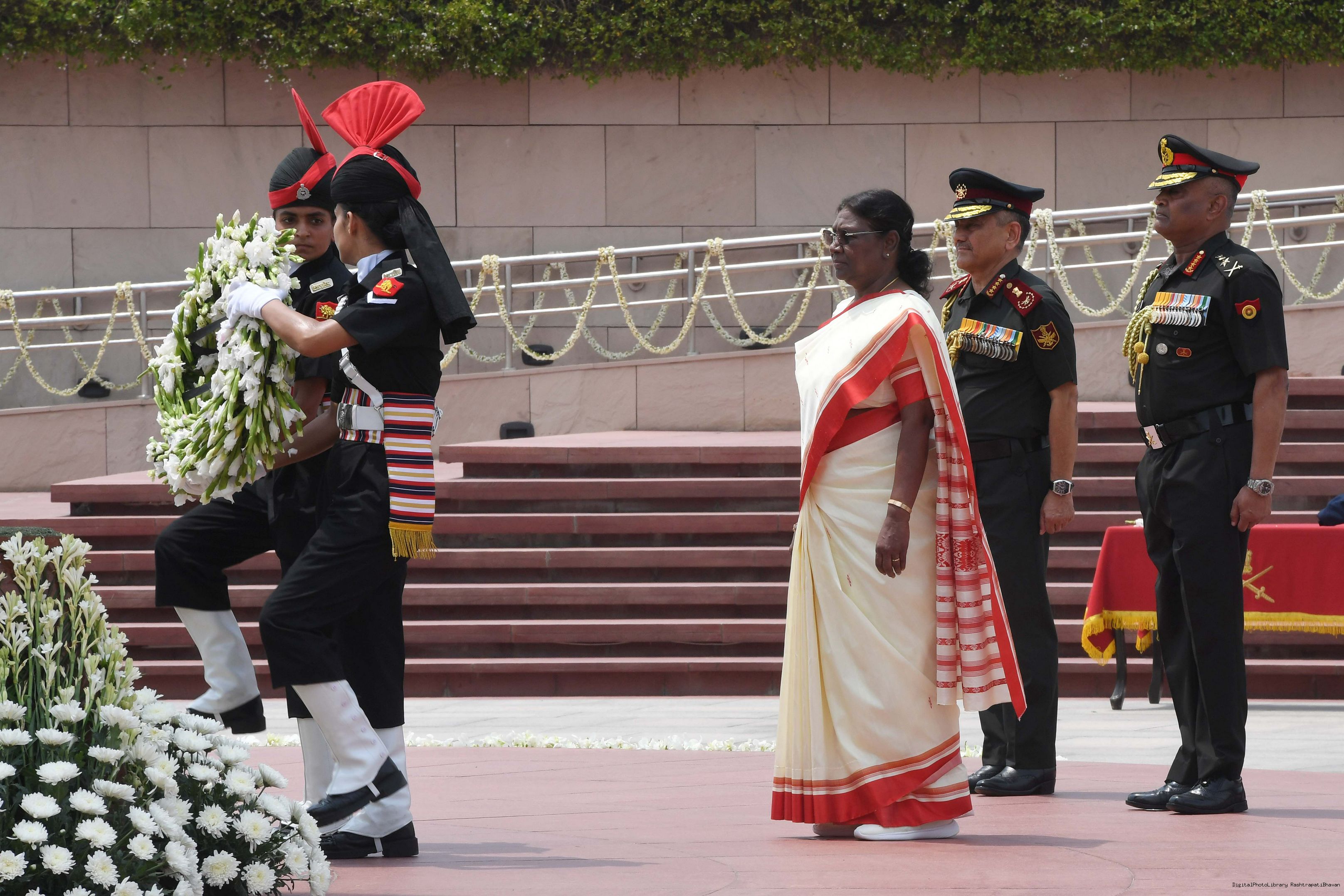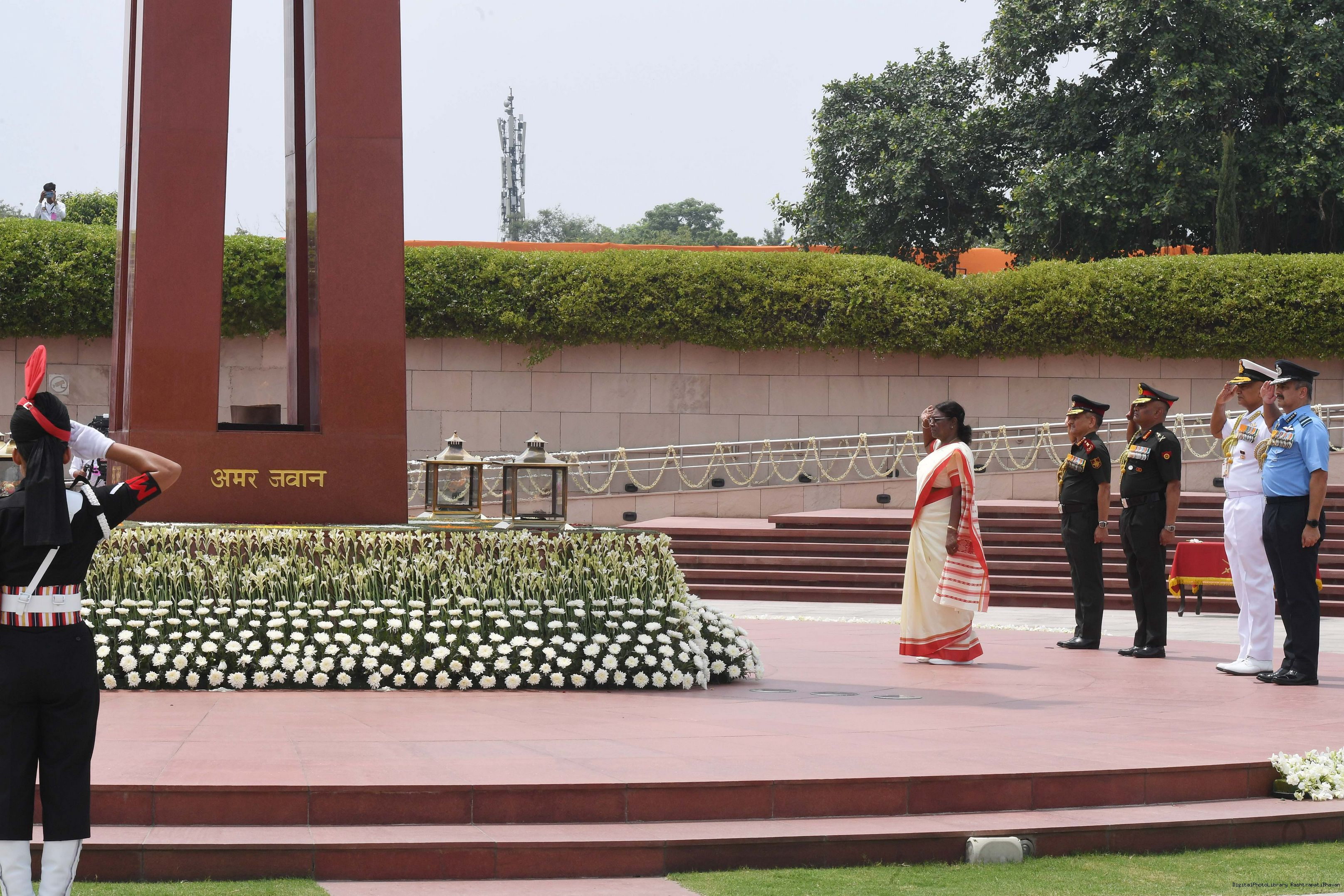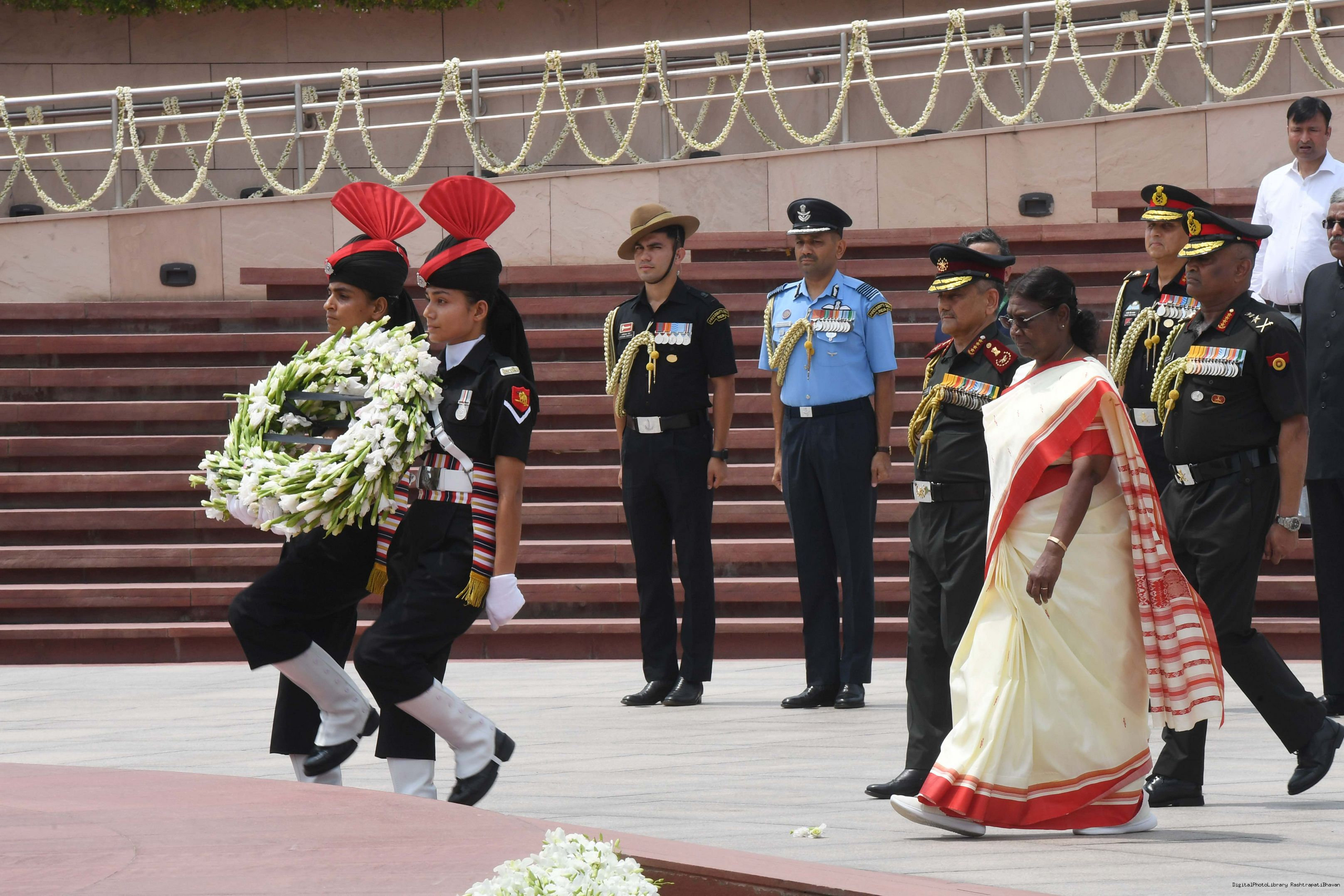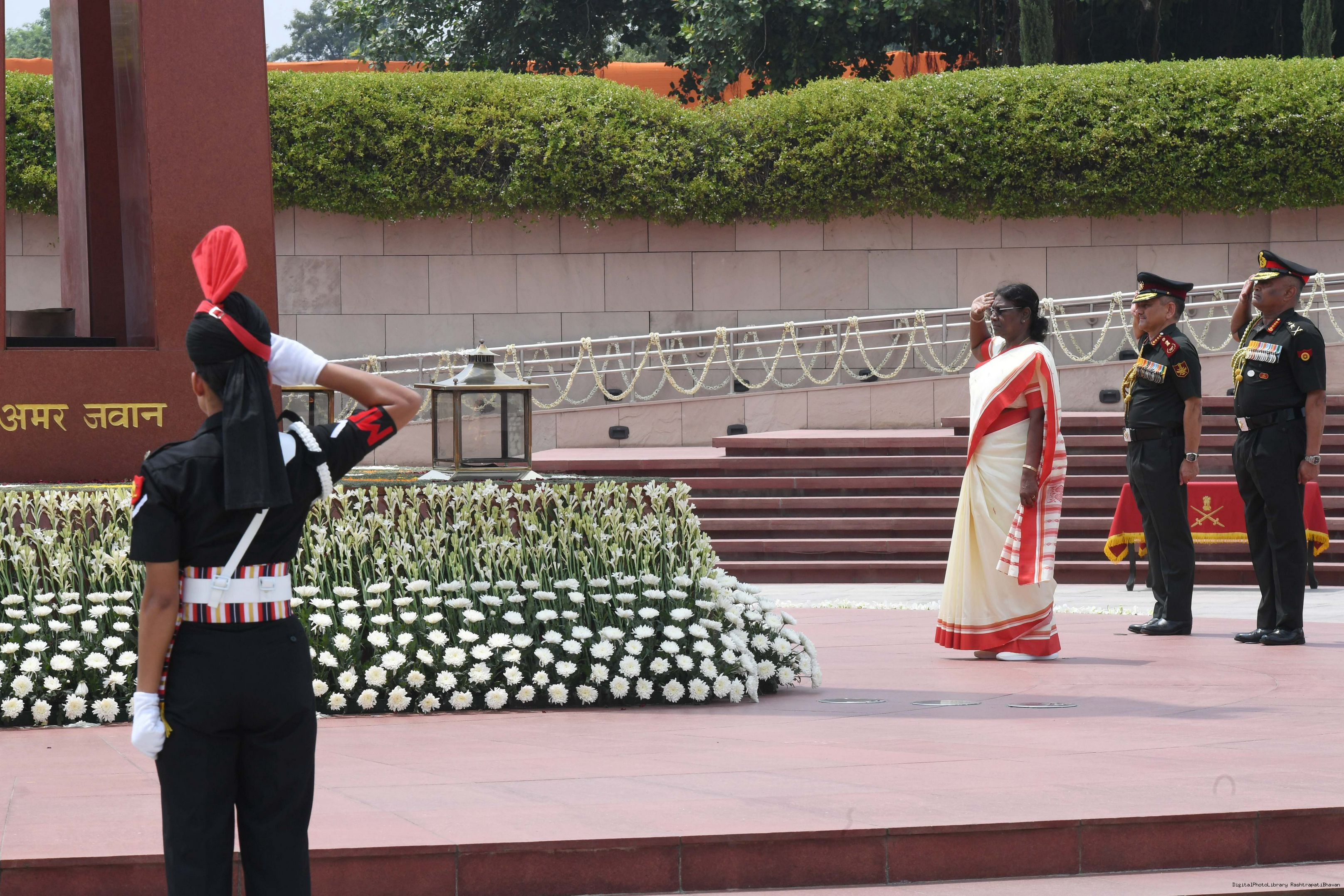 | Caption: | The President of India, Smt. Droupadi Murmu Wreath laying the National War Memorial and paid homage to the martyrs, on the occasion of 77th Independence Day, in New Delhi on August 15, 2023. |