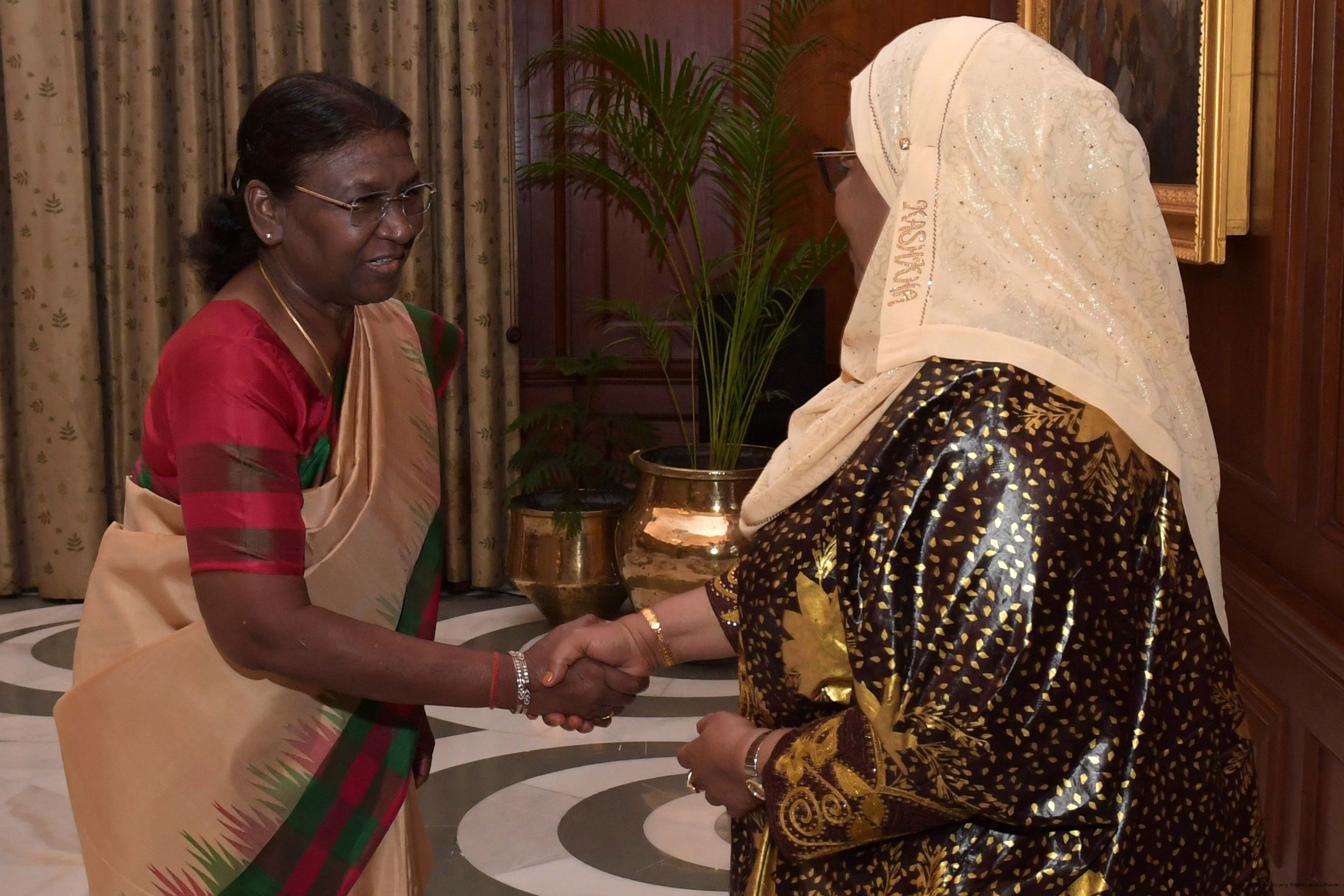 | Caption: | The President of the United Republic of Tanzania, Ms. Samia Suluhu Hassan called on the President of the United Republic of Tanzania at Rashtrapati Bhavan on October 09, 2023. |