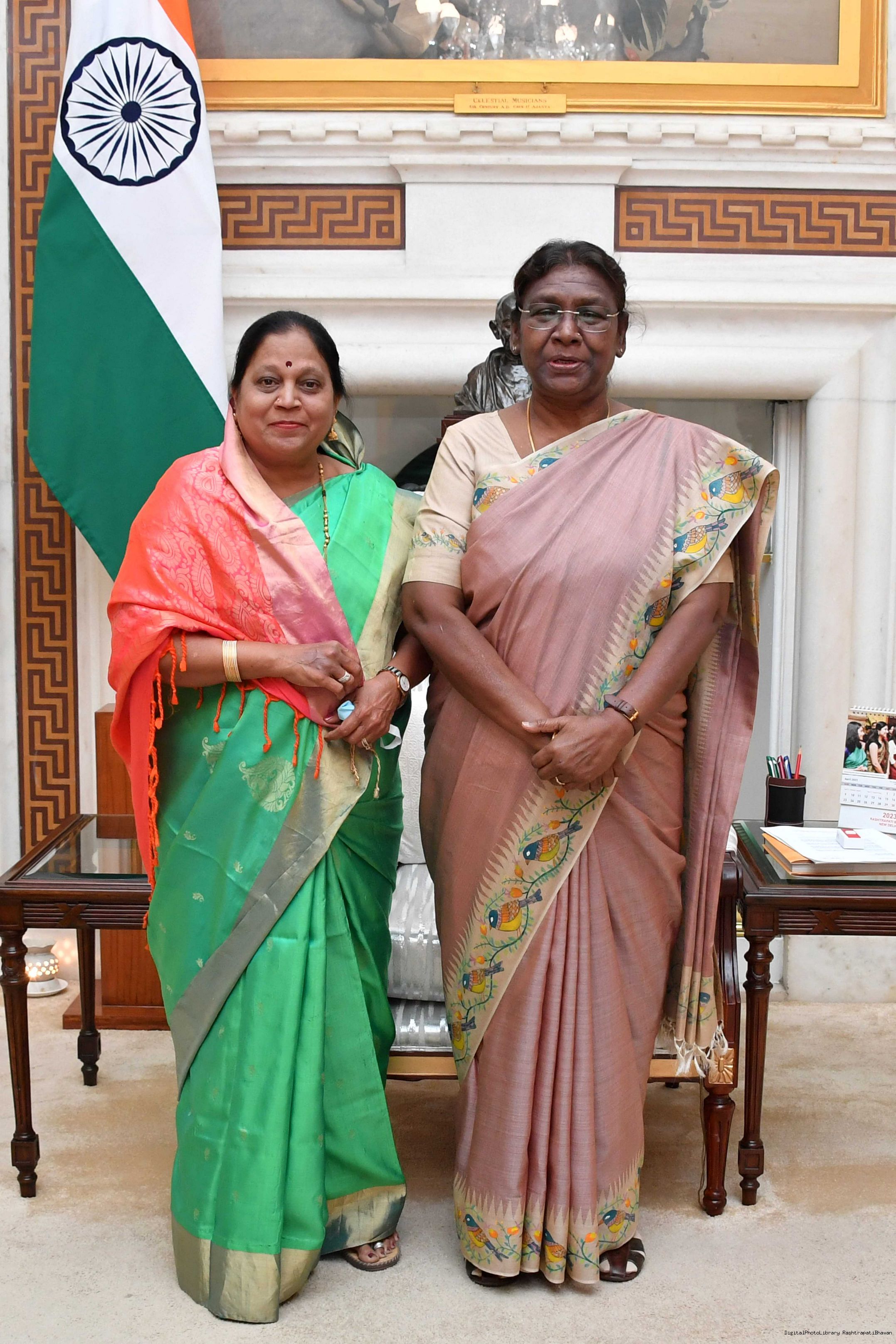 | Caption: | Smt Pratibha Patil Chikhalikar MP along with her daughter in law meeting with the President of India Smt. Droupadi Murmu at Rashtrapati Bhavan on April 22, 2023. |
