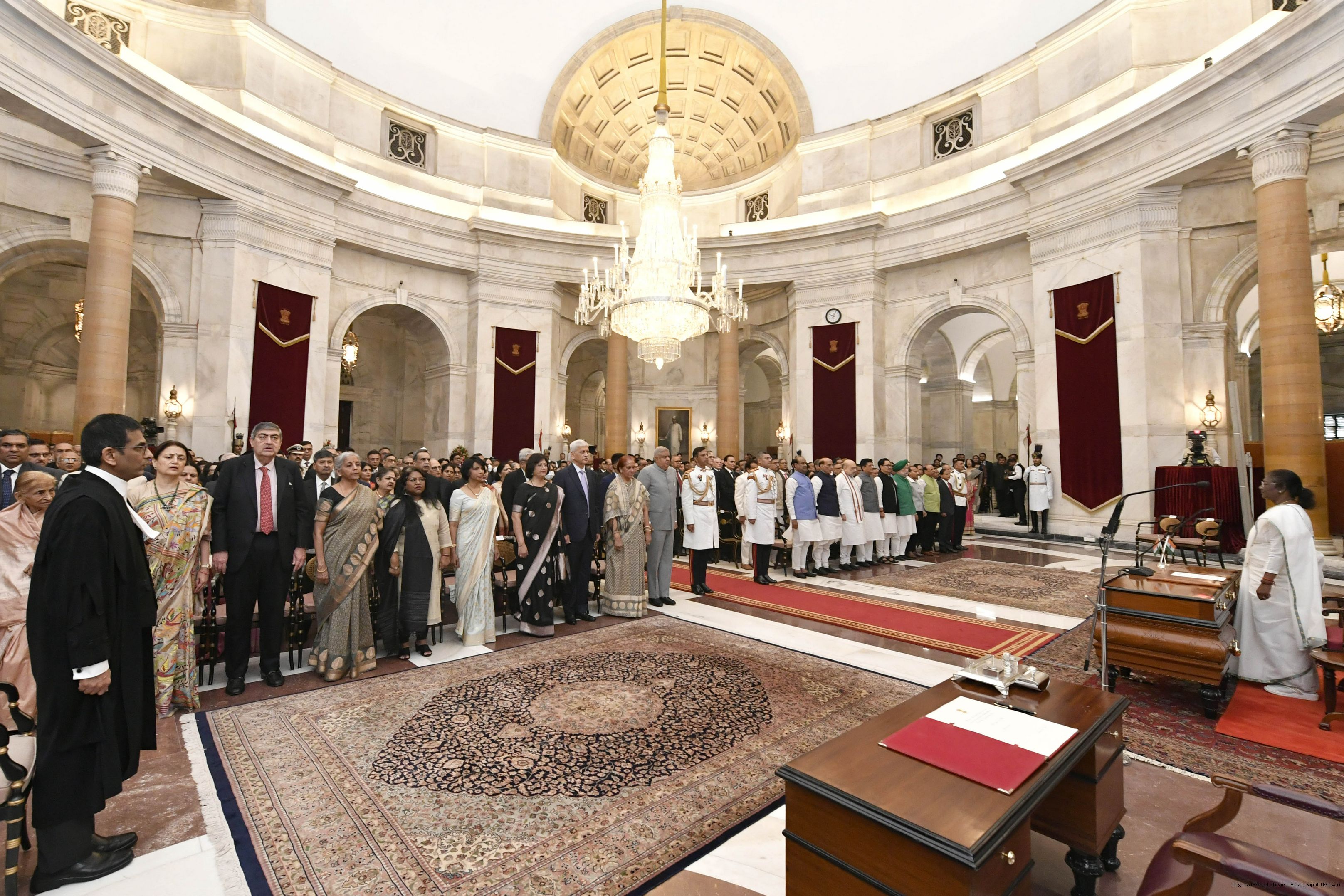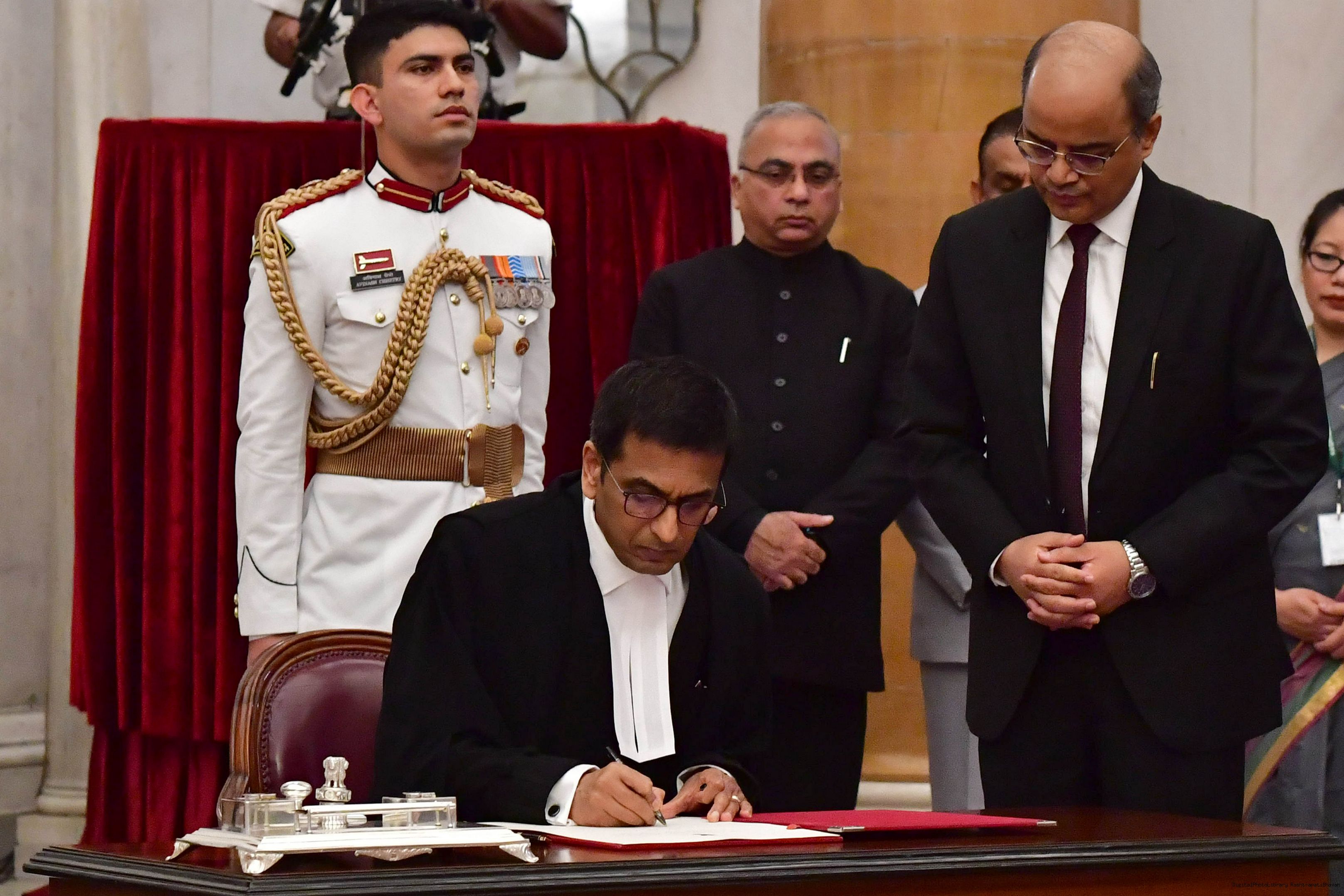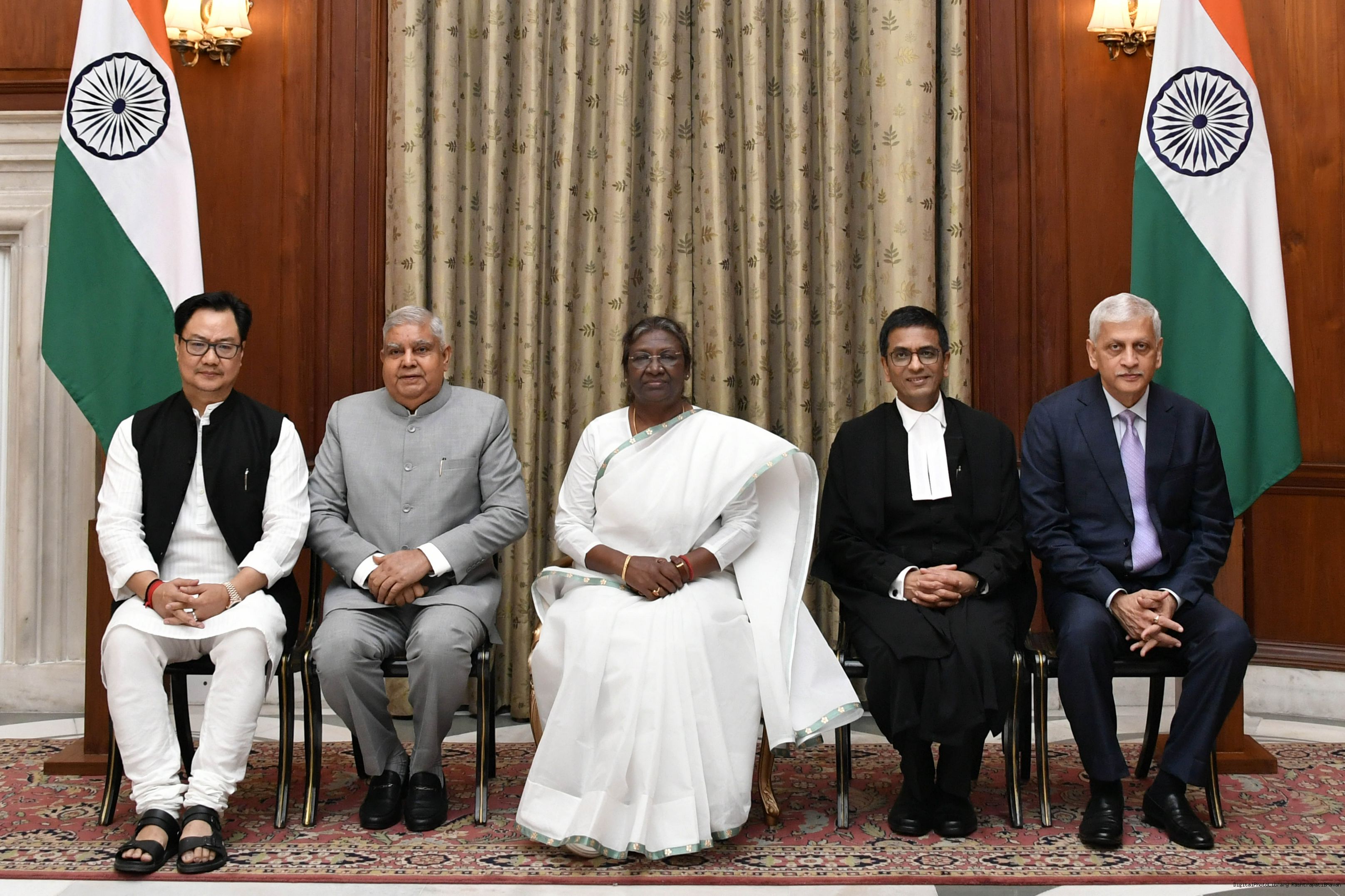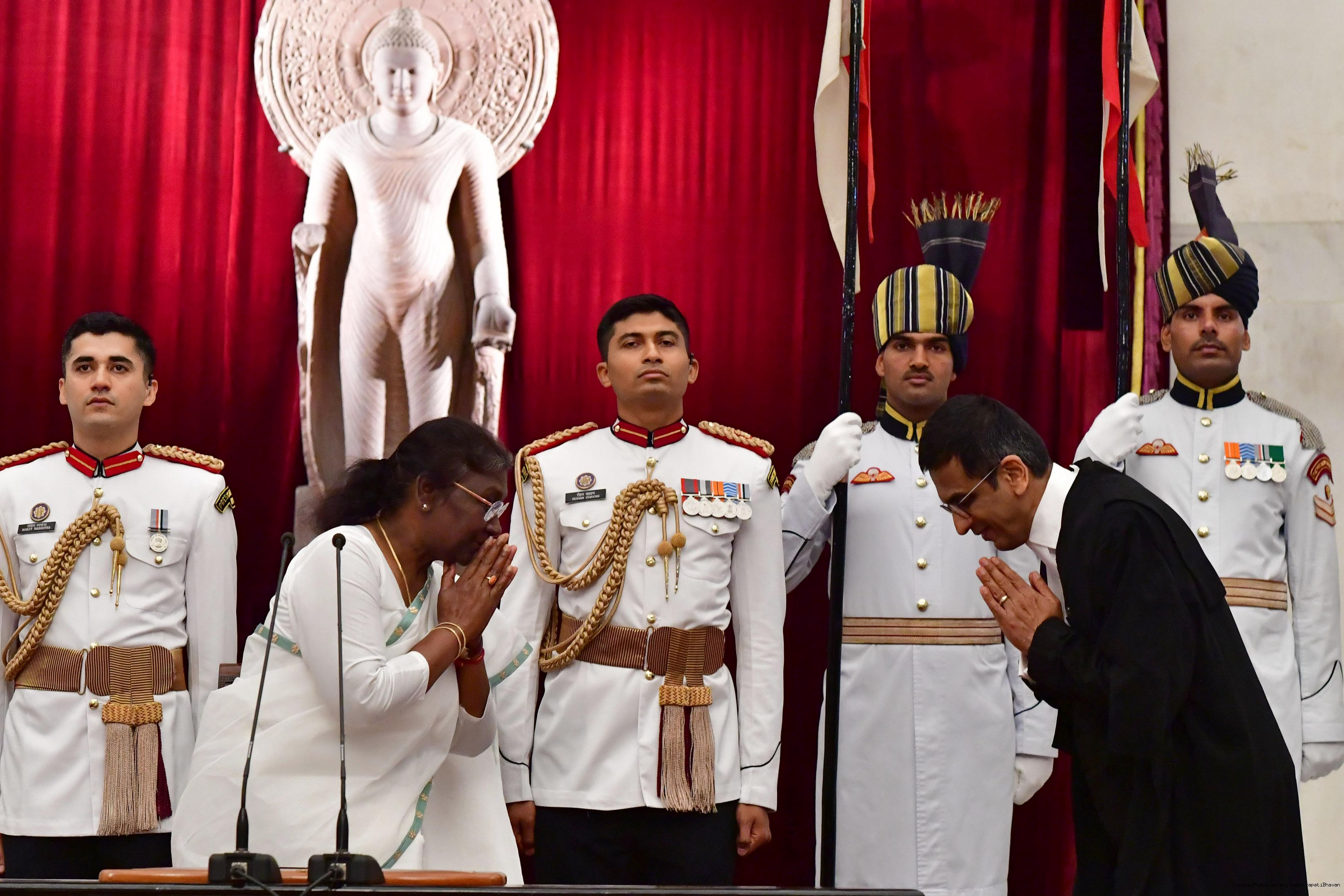 | Caption: | The President of India, Smt. Droupadi Murmu administered the oath of office to Dr. Justice Dhananjaya Yashwant Chandrachud as the Chief Justice of the Supreme Court of India, at a Swearing-in-Ceremony, in Rashtrapati Bhavan on November 09, 2022. |
