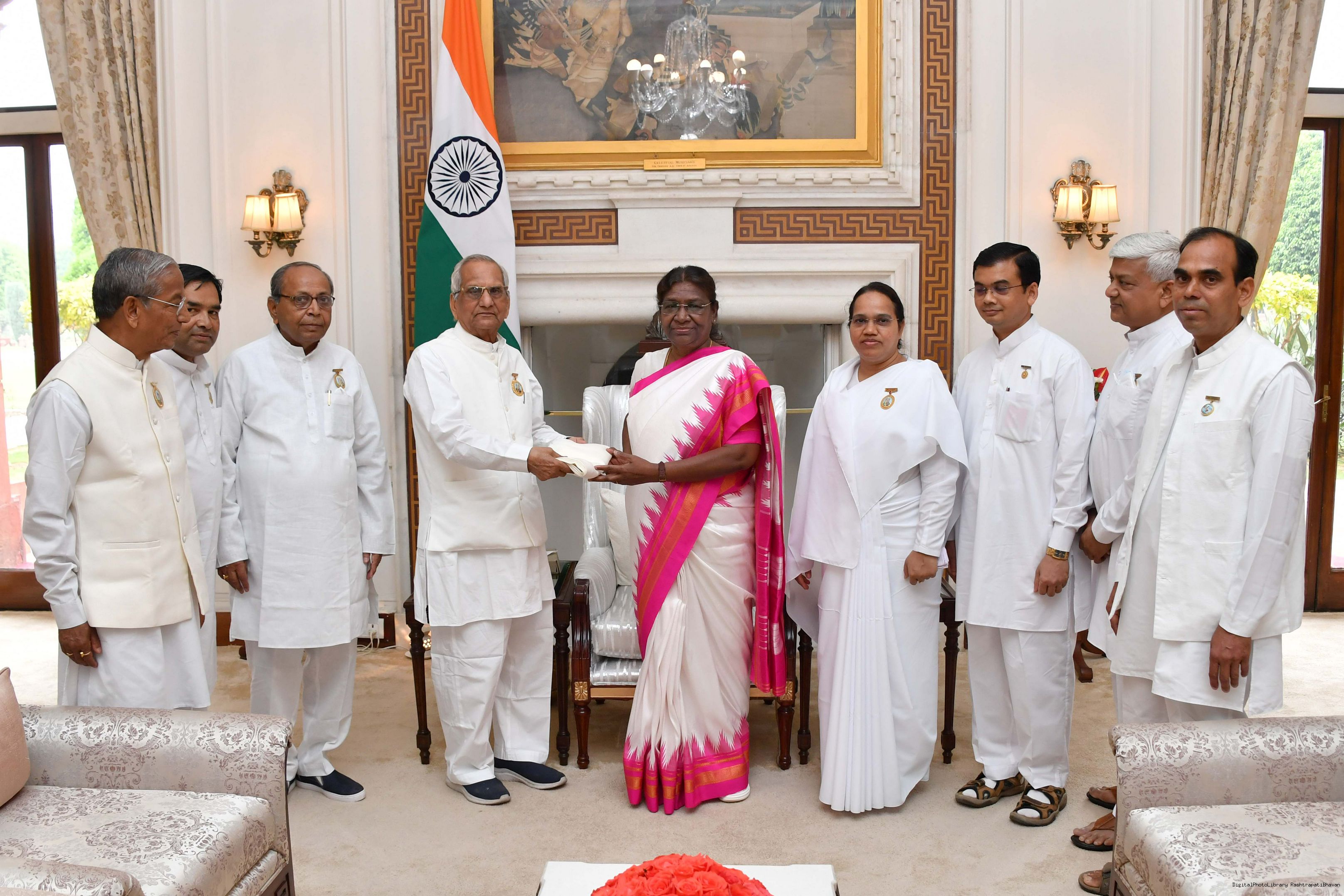 | Caption: | Rajyogi BK Suraj Bhai along with others from Brahma Kumari meeting with the President of India, Smt. Droupadi Murmu at Rashtrapati Bhavan on April 28, 2023 |
