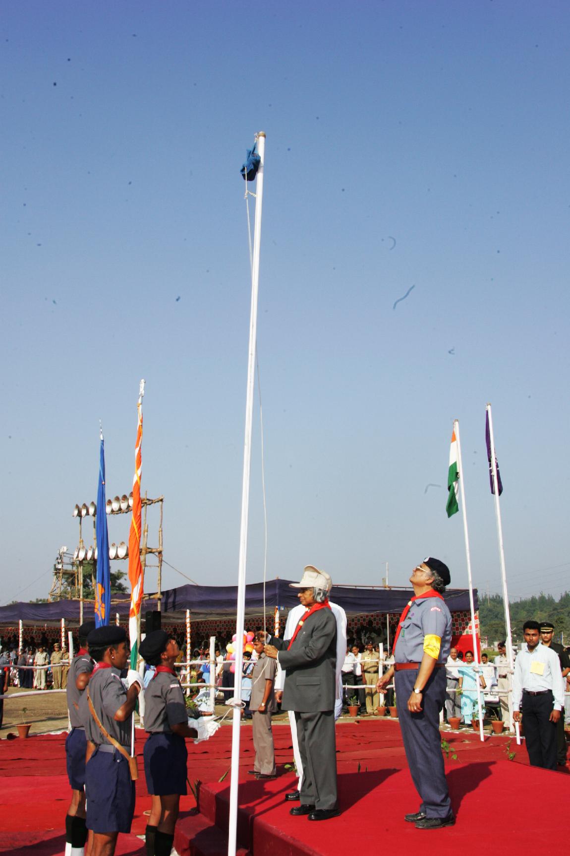 | Caption: | The President of India, Dr A P J Abdul Kalam at the inauguration of 15th National Scouts and Guides Jamboree at Haridwar in Uttaranchal on Oct 16, 2005 |