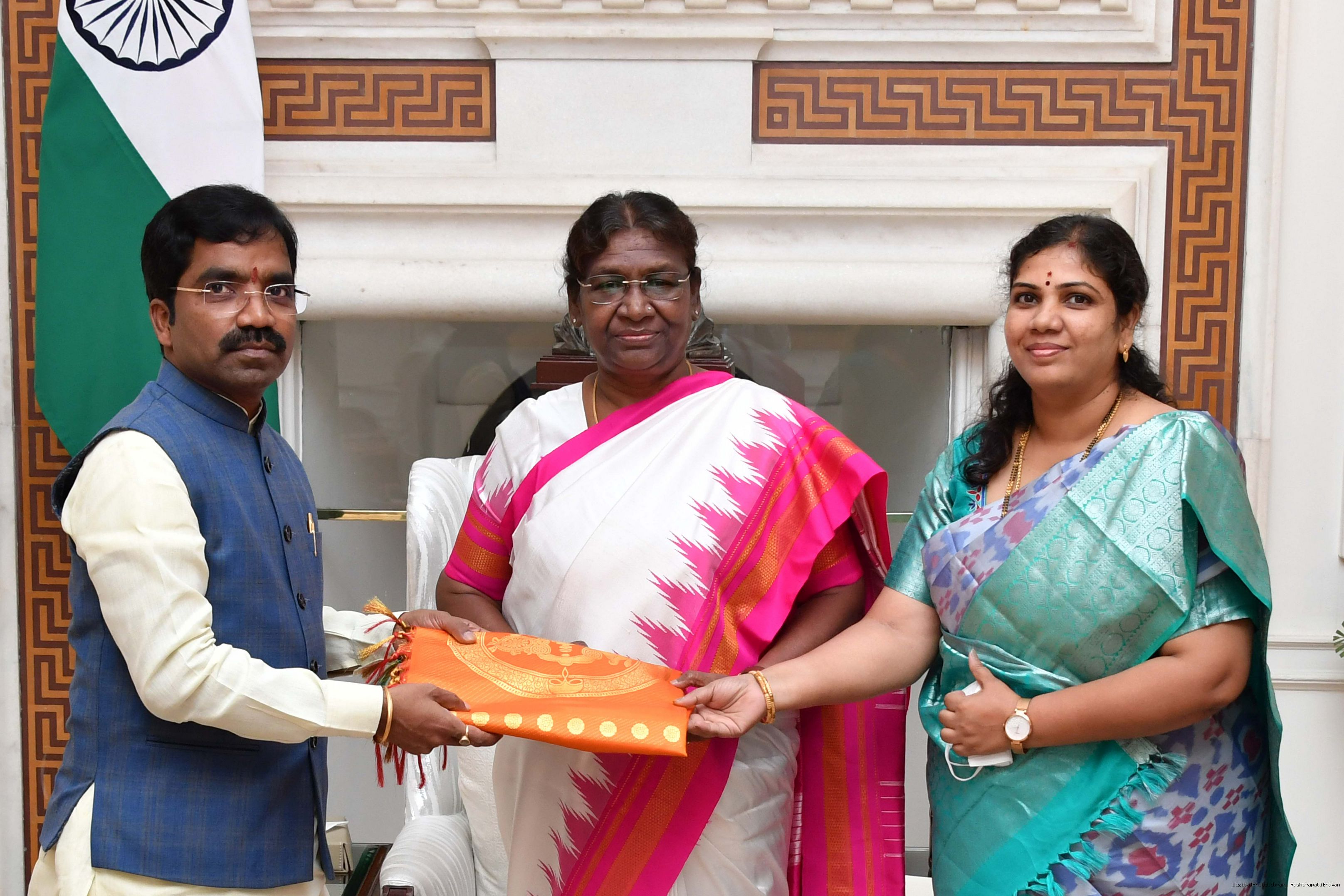 | Caption: | Shri Nune Balraj, Central BJP Coordinator (TS) SARAL National Incharge along with his wife Smt. K. Bharathi and other meeting with the President of India, Smt. Droupadi Murmu at Rashtrapati Bhavan on April 28, 2023 |