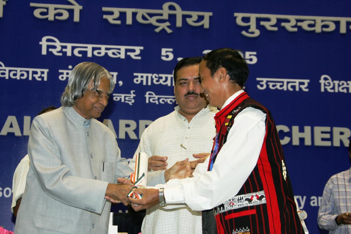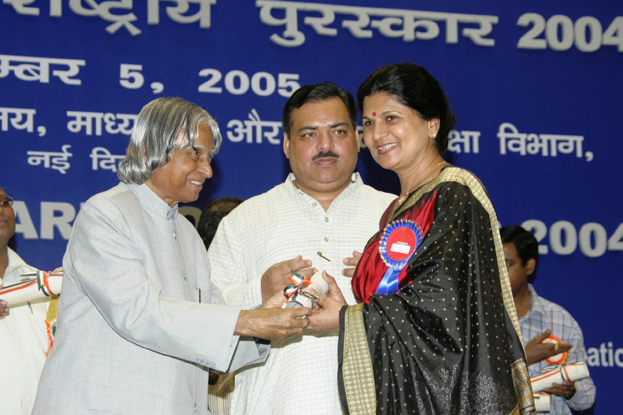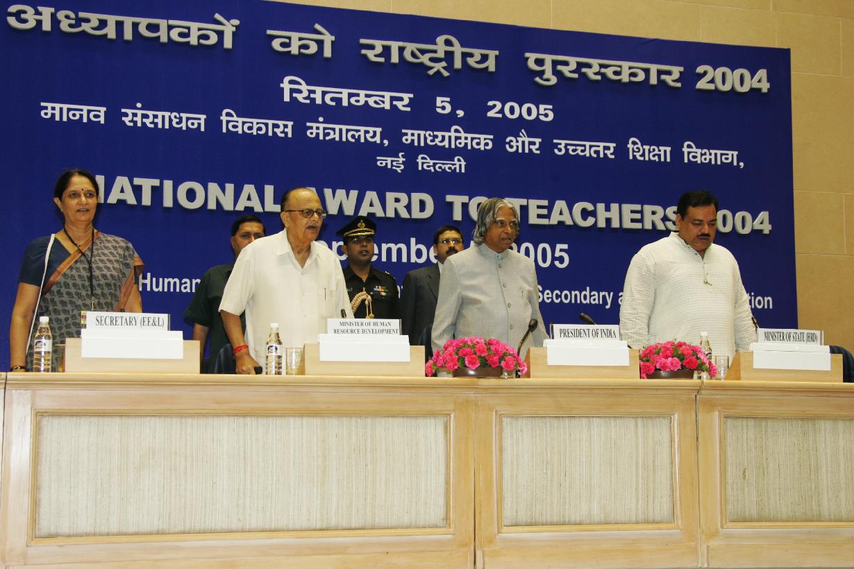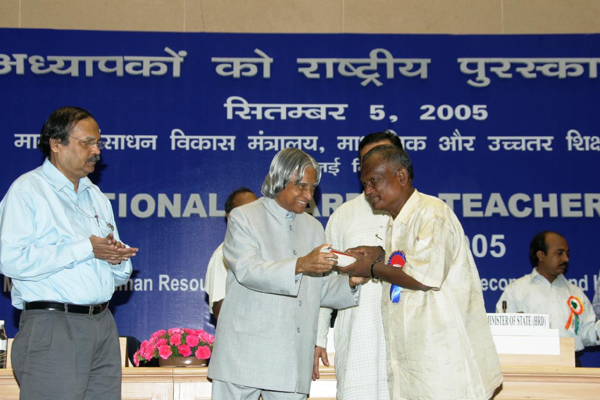 | Caption: | The President of India, Dr A P J Abdul Kalam presenting the National Awards to Teachers at Vigyan Bhavan in New Delhi on Sep 05, 2005 |