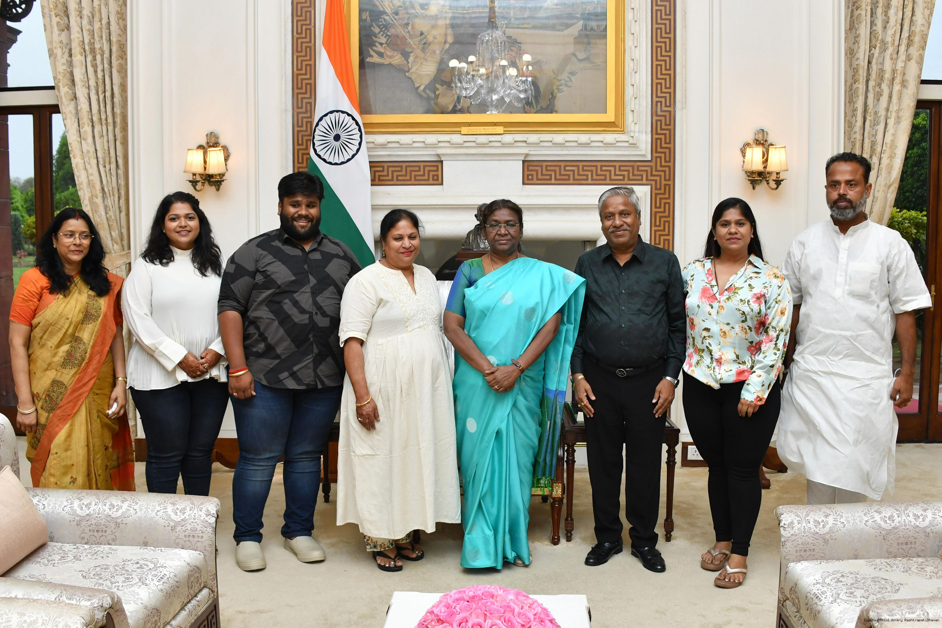 | Caption: | Smt. Uma Agarwal along with others meeting with the President of India, Smt. Droupadi Murmu at Rashtrapati Bhavan on May 03, 2023 |