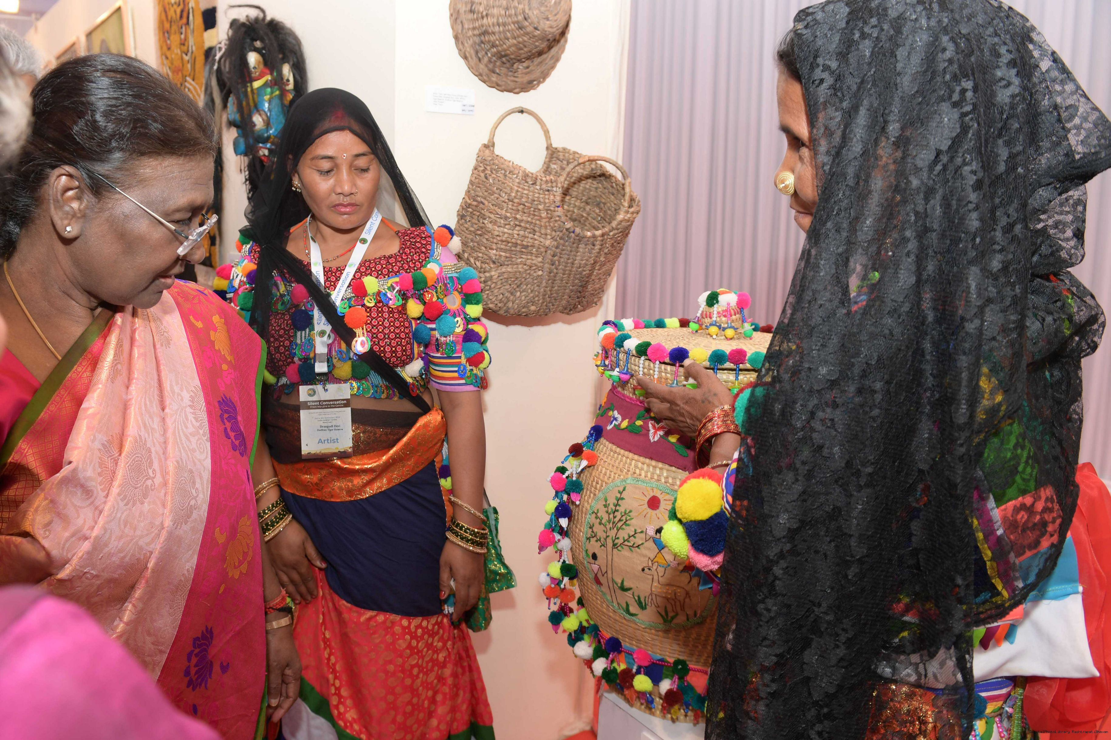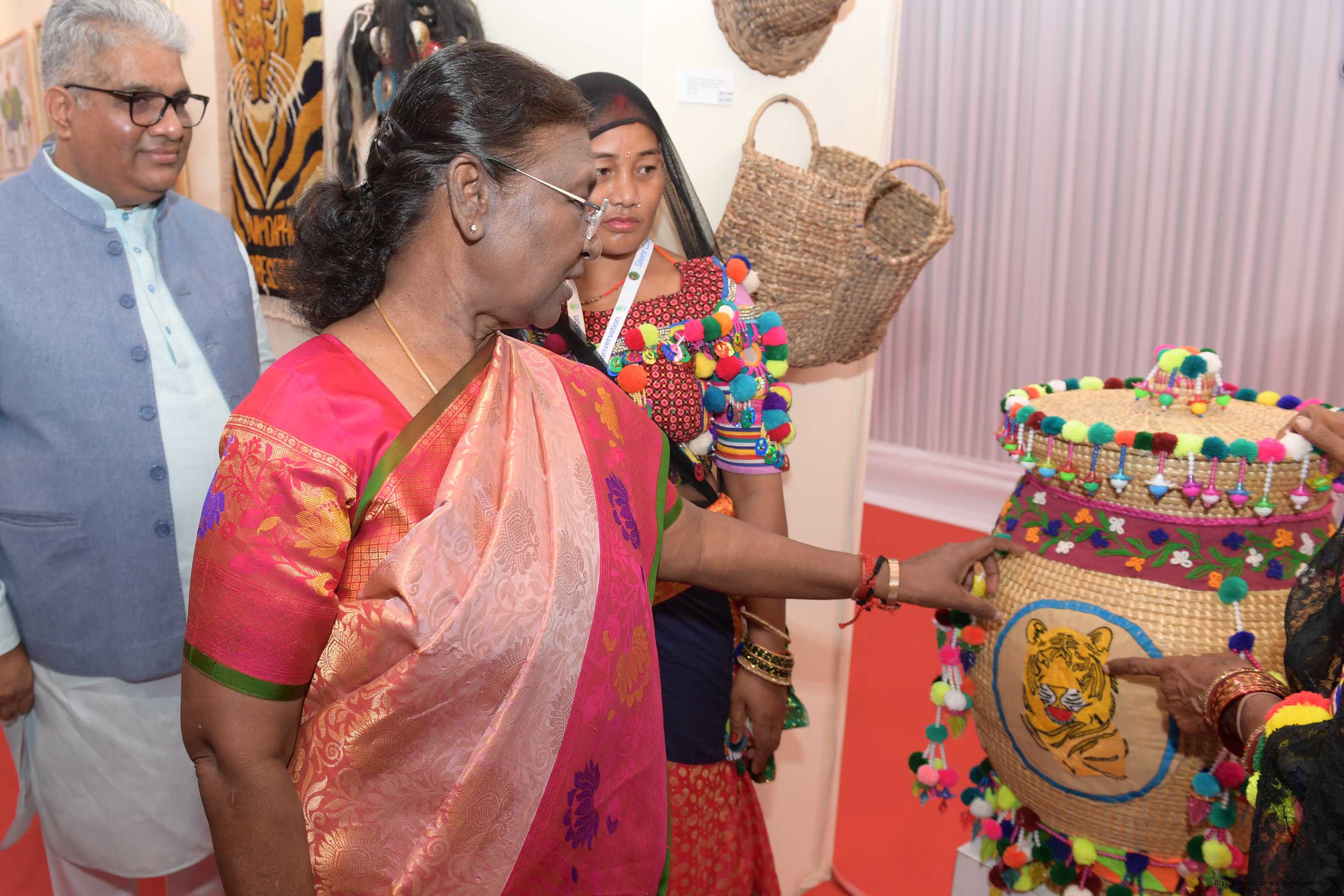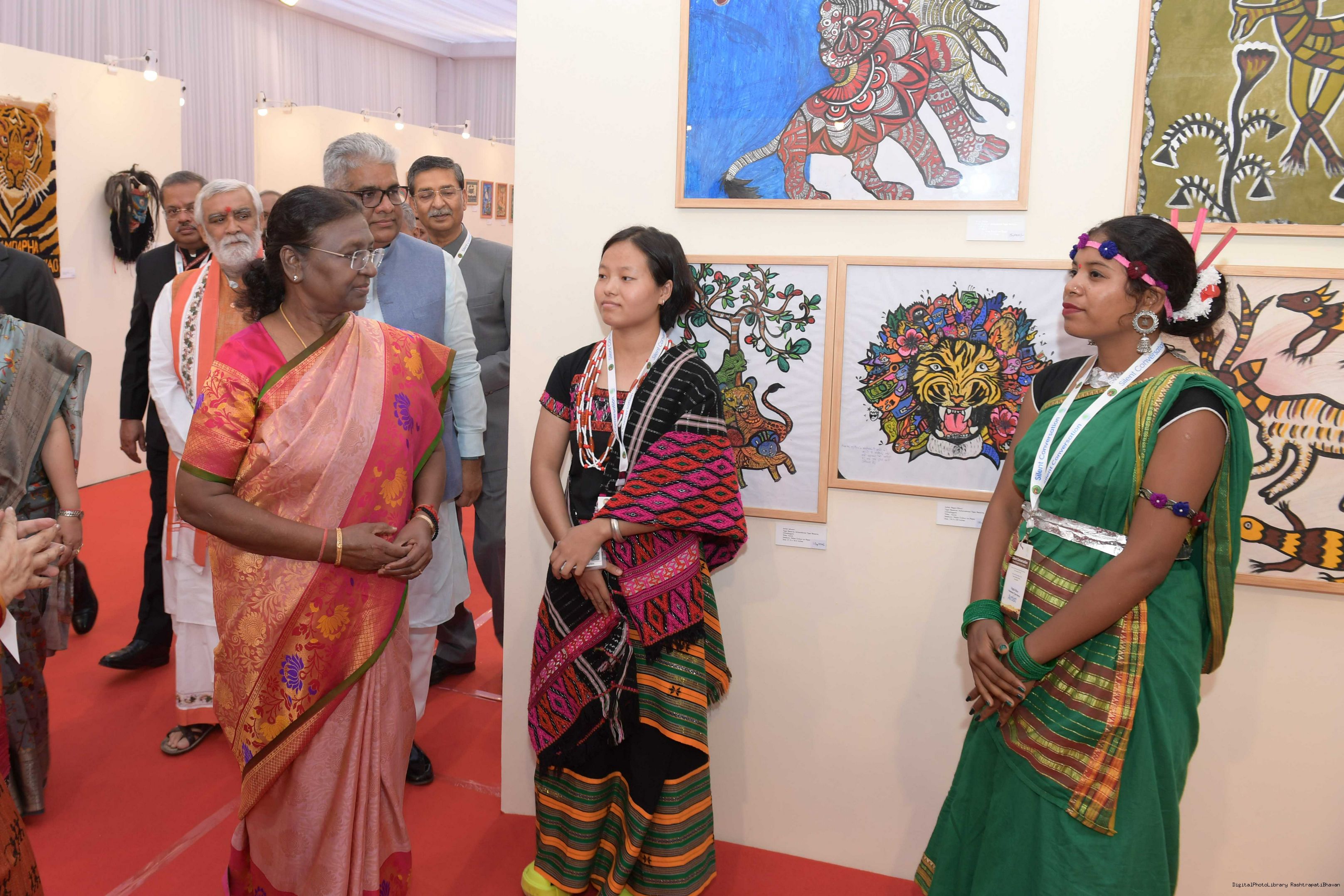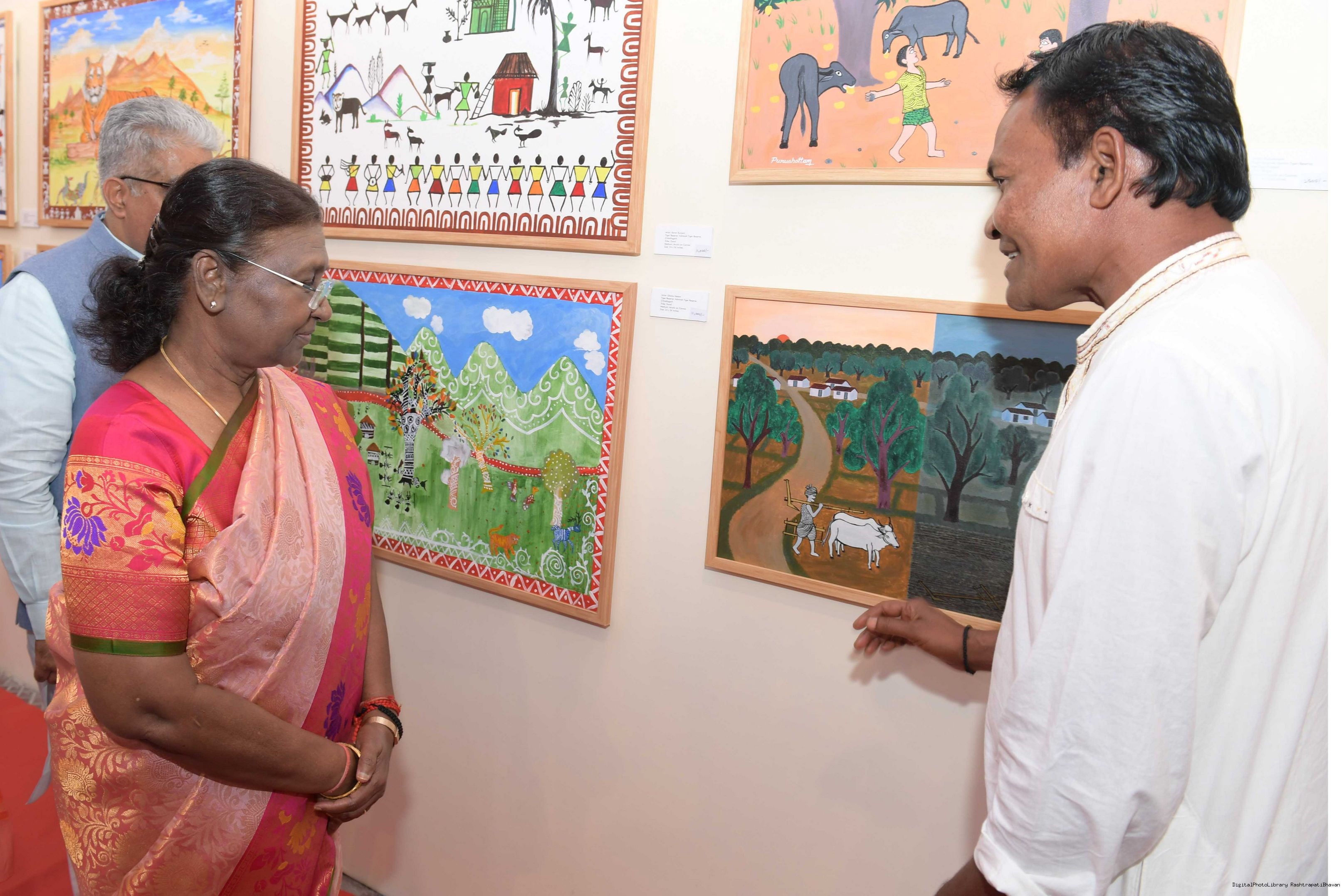 | Caption: | The President of India, Smt Droupadi Murmu inaugurated an art exhibition titled, “Silent Conversation: From Margins to the Centre” in New Delhi on November 3, 2023. |