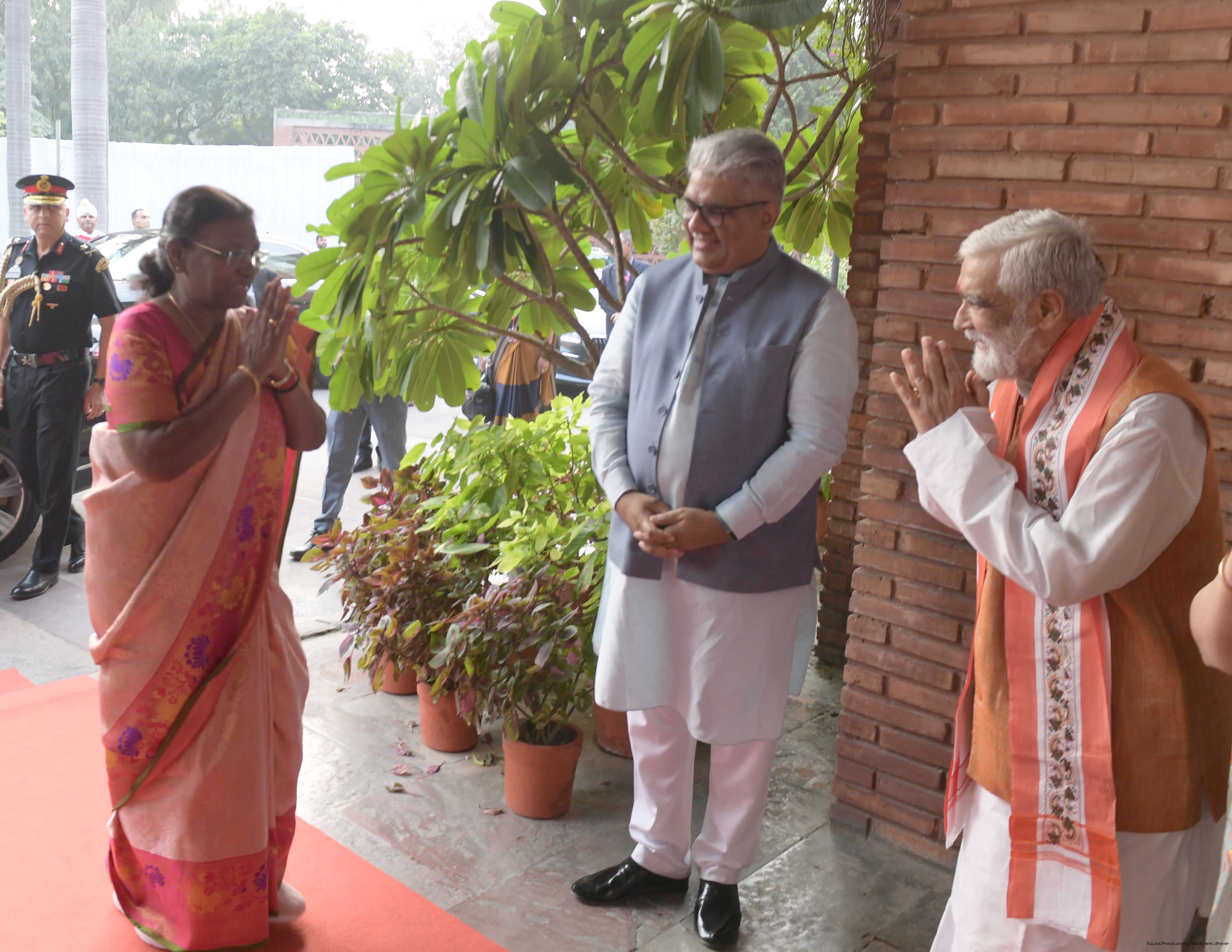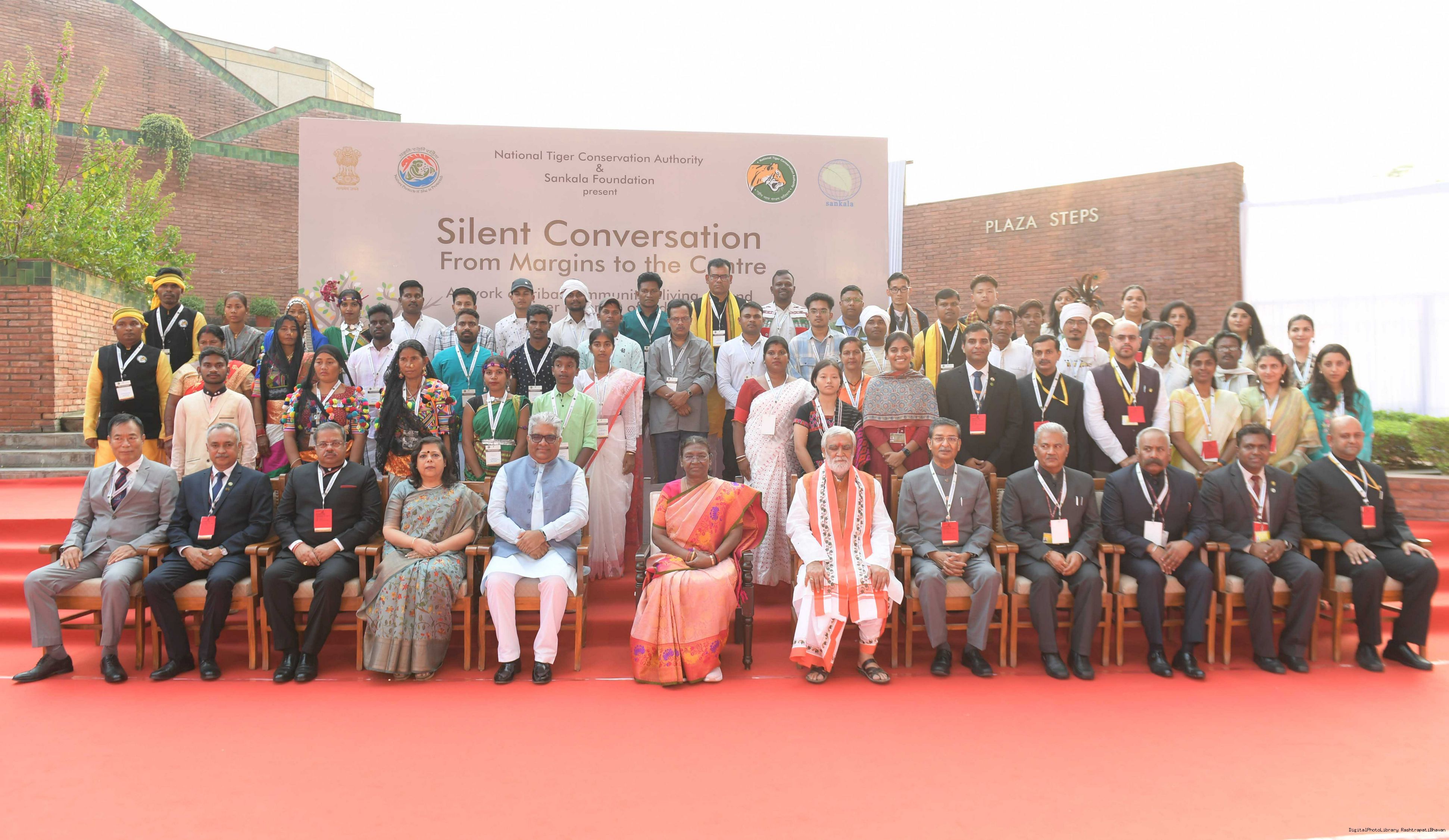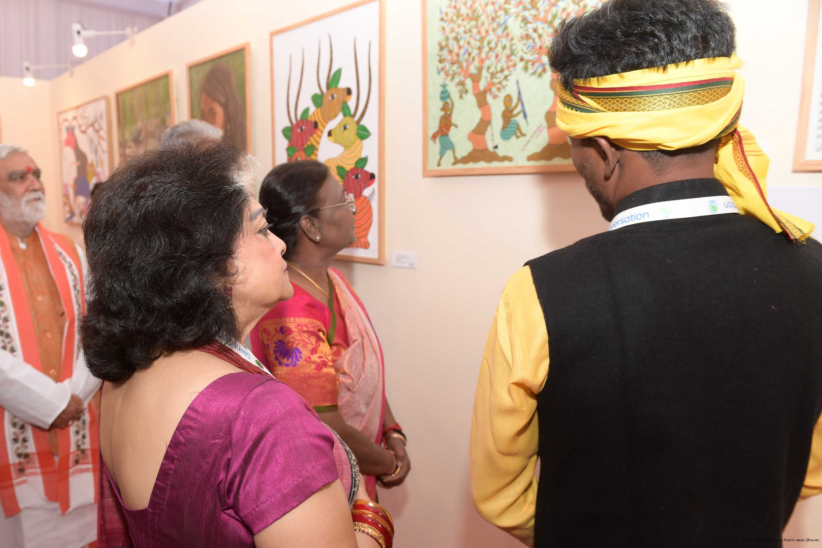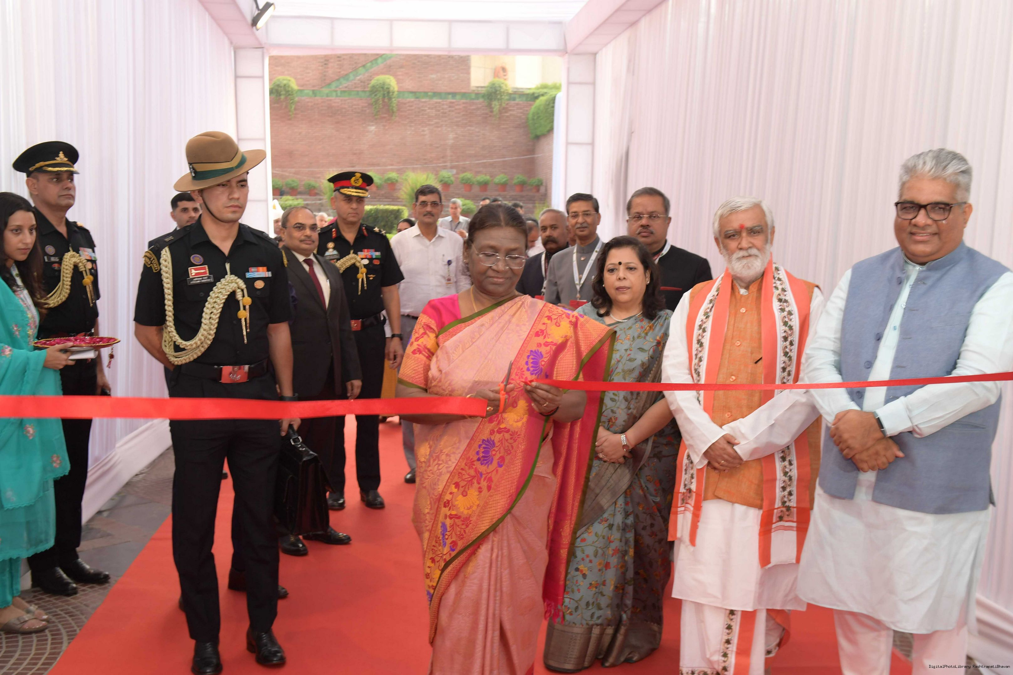 | Caption: | The President of India, Smt Droupadi Murmu inaugurated an art exhibition titled, “Silent Conversation: From Margins to the Centre” in New Delhi on November 3, 2023. |