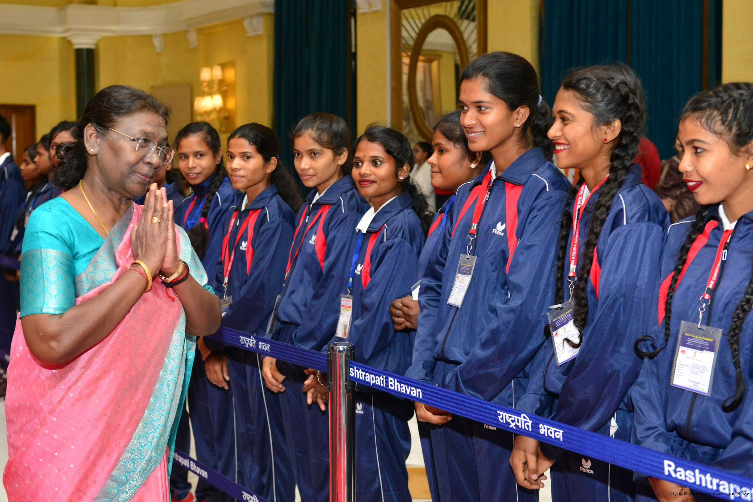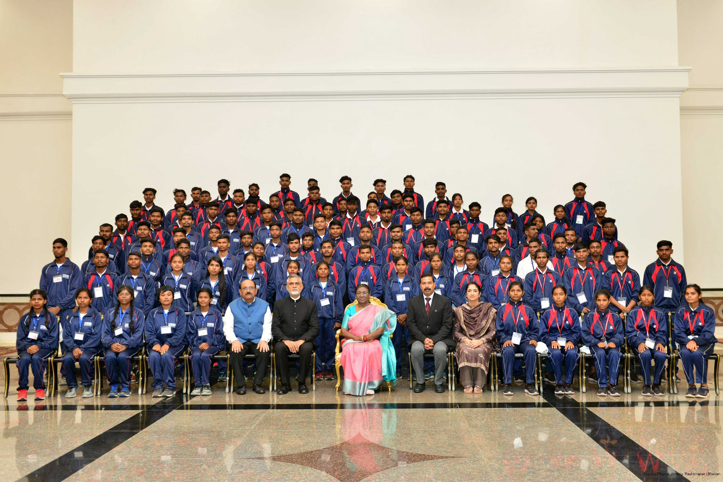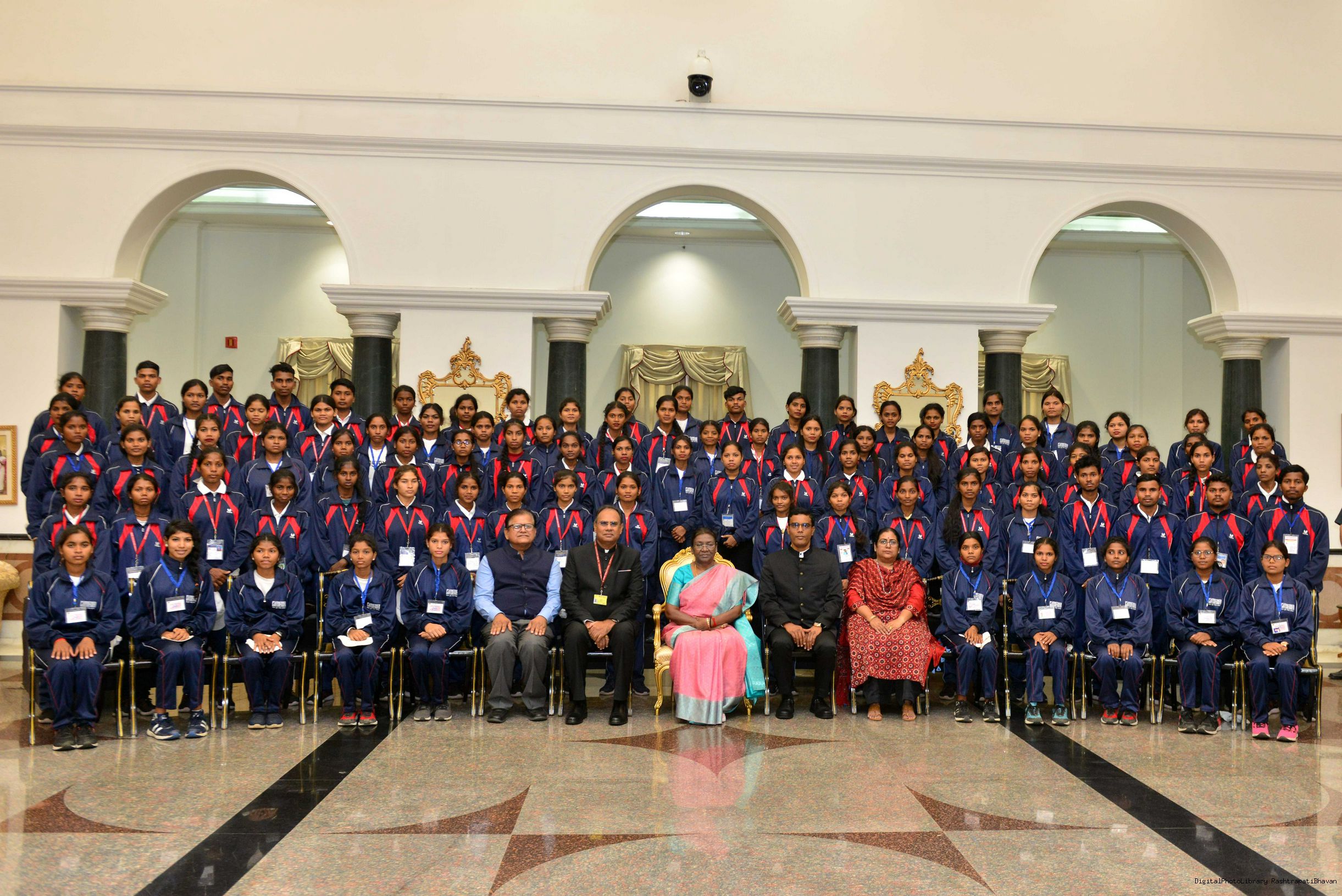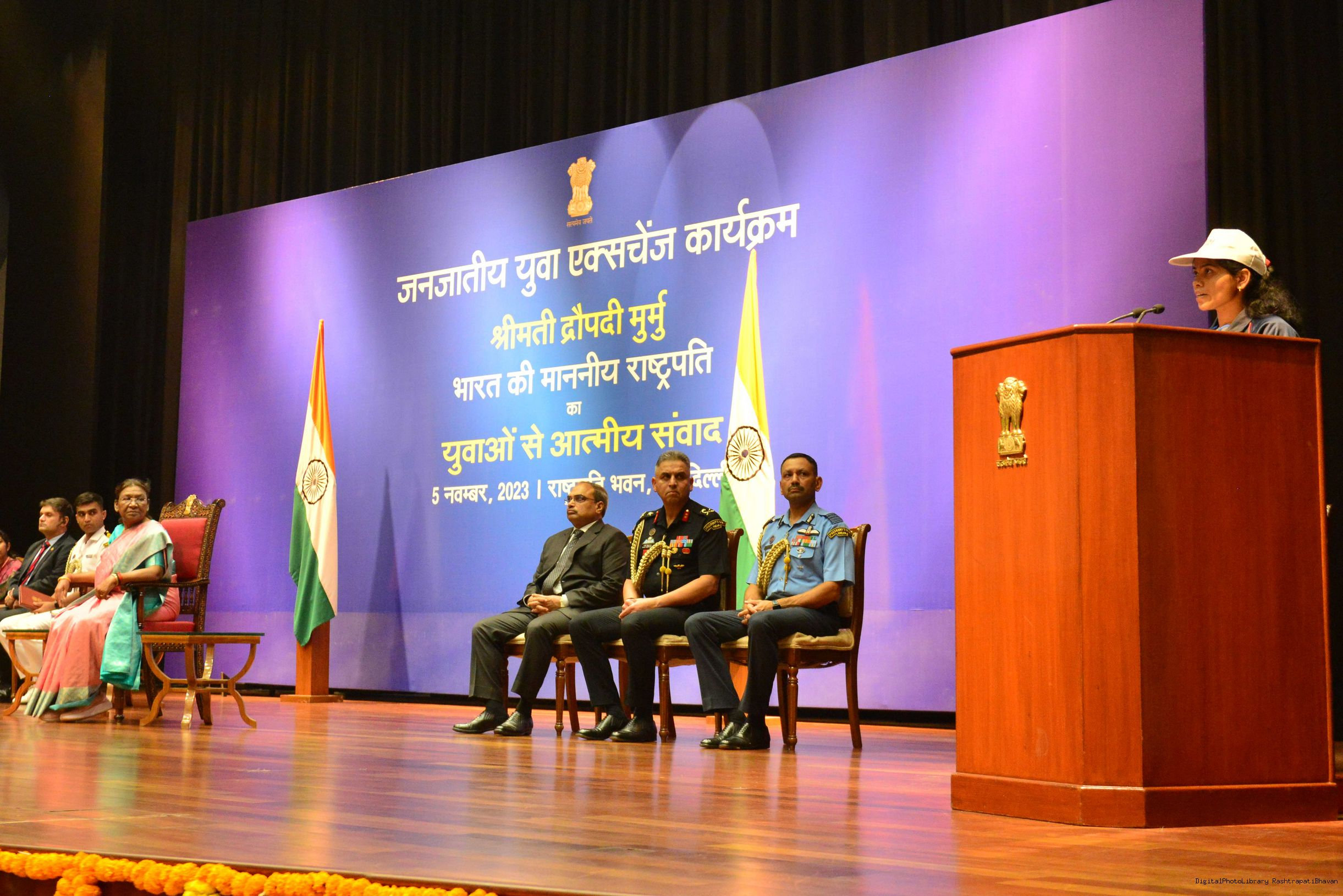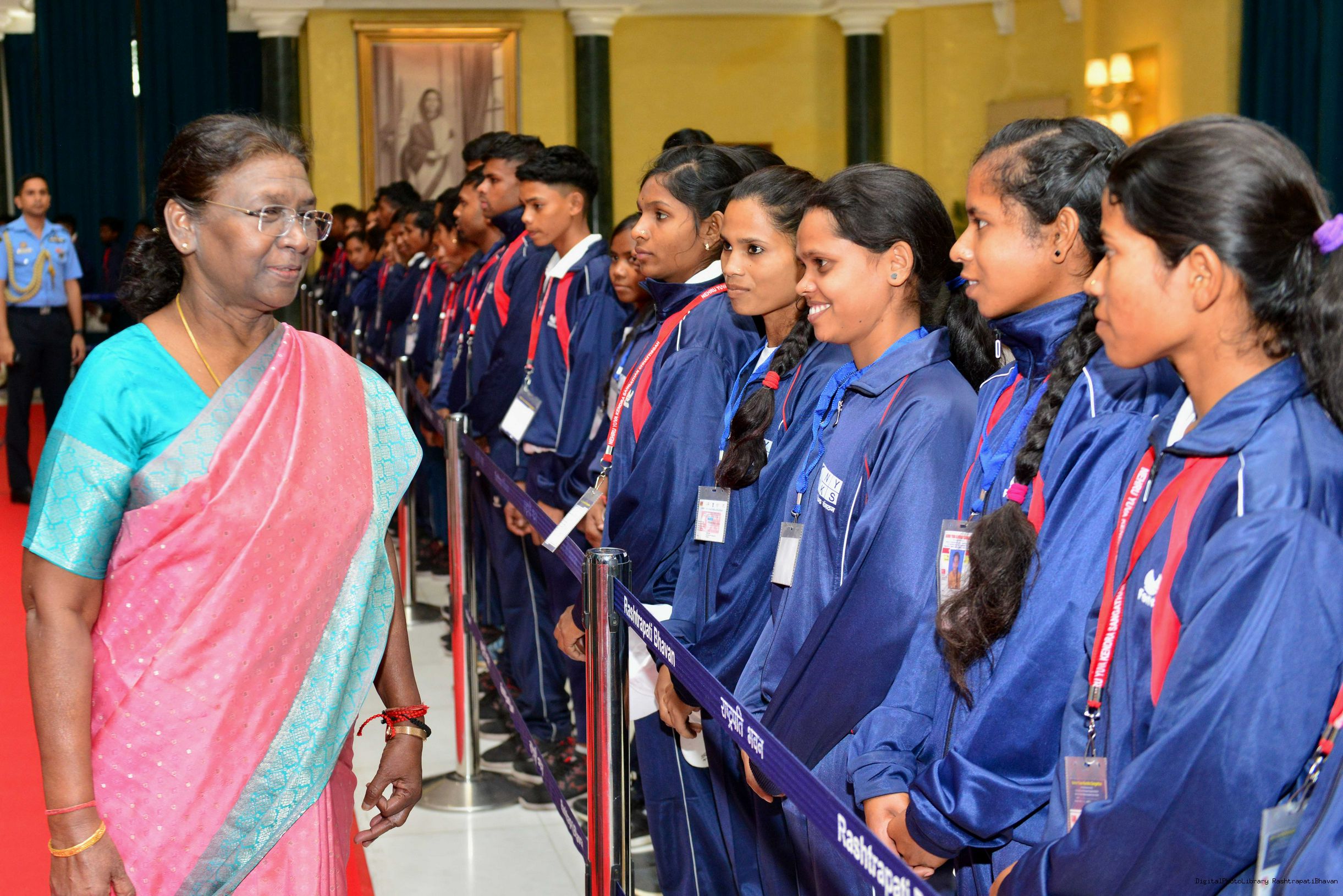 | Caption: | The President of India Smt. Droupadi Murmu meeting and interact with 200 Tribal Youth others meeting with at Rashtrapati Bhavan on November 5, 2023. |