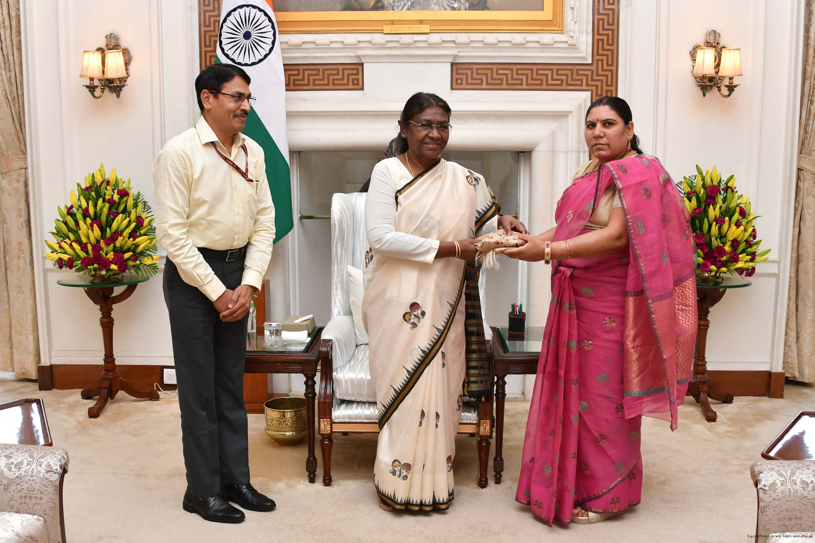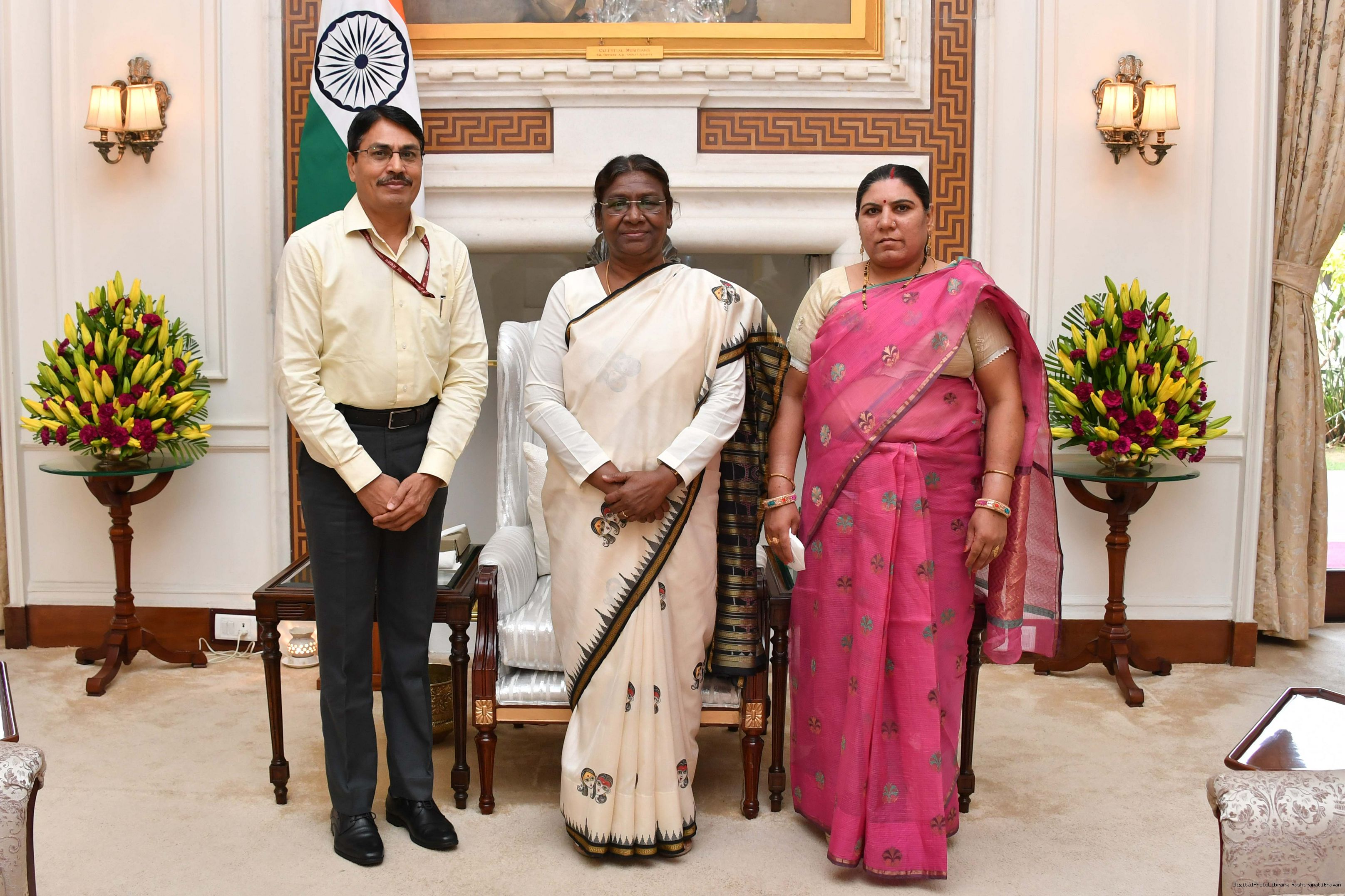 | Caption: | Shri Mast Ram Meena, Principal Resident Commissioner, Govt. of Jharkhand along with his wife meeting with the President of India, Smt. Droupadi Murmu at Rashtrapati Bhavan on May 12, 2023 |
