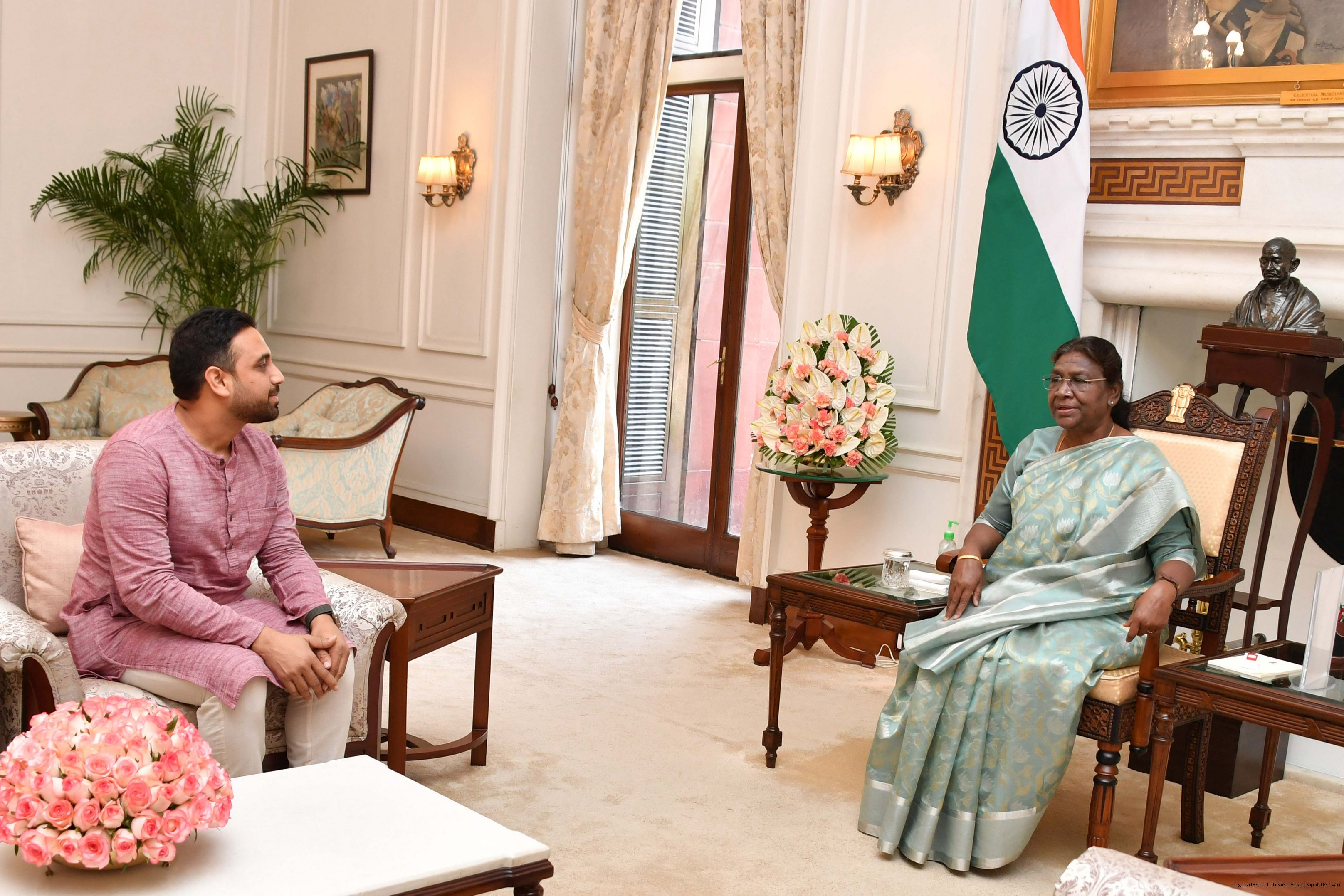 | Caption: | Shri Kunal Sarangi, former Whip of the Jharkhand Legislative Assembly and, BJP State Spokesperson, Jharkhand meeting with the President of India, Smt. Droupadi Murmu at Rashtrapati Bhavan on May 22, 2023 |