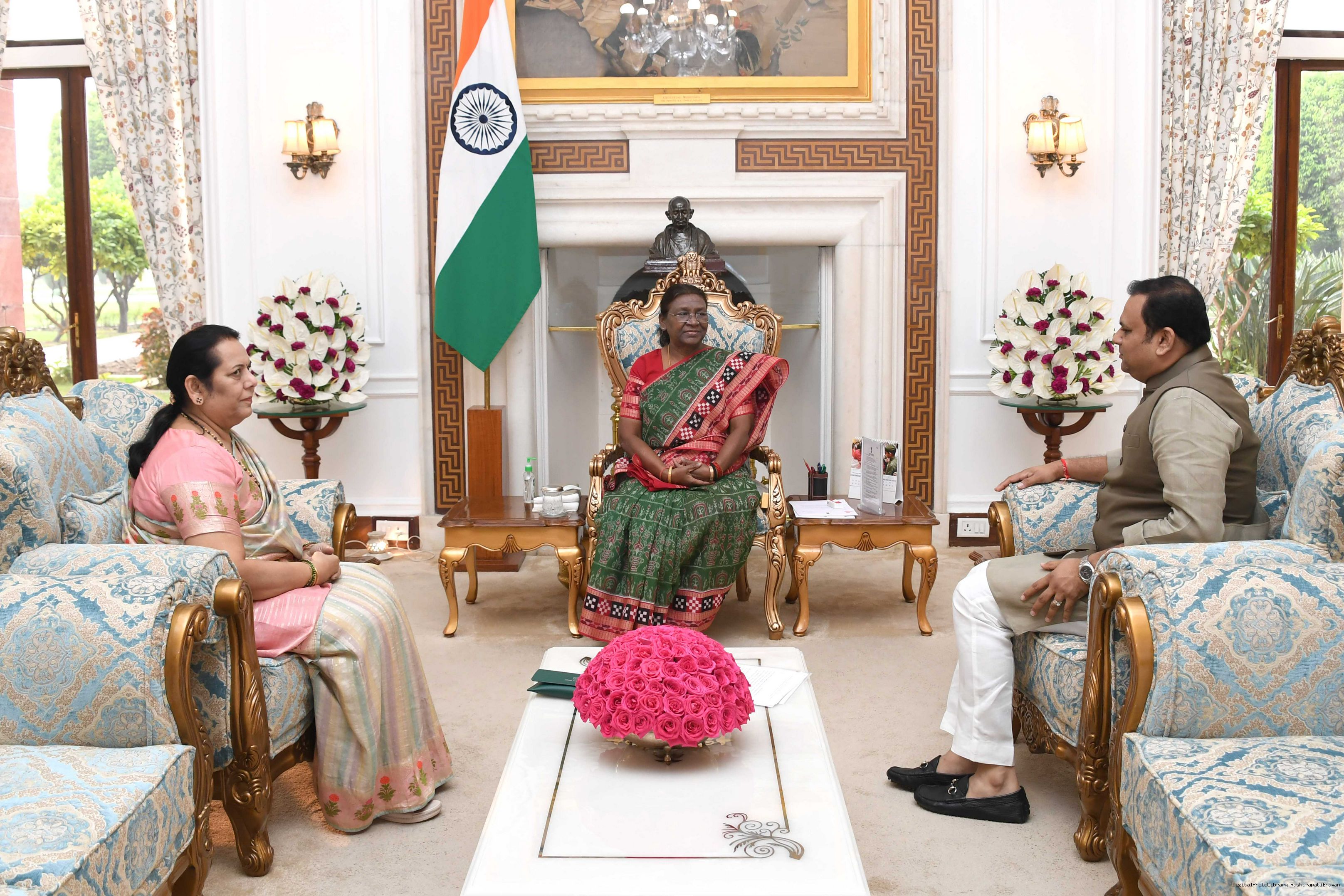 | Caption: | Shri Rahul Narvekar, Speaker, Maharashtra Legislative Assembly and Dr. Neelam Gorhe, Deputy Chairman, Maharashtra Legislative Council meeting with the President of India, Smt. Droupadi Murmu at Rashtrapati Bhavan on November 6, 2023. |