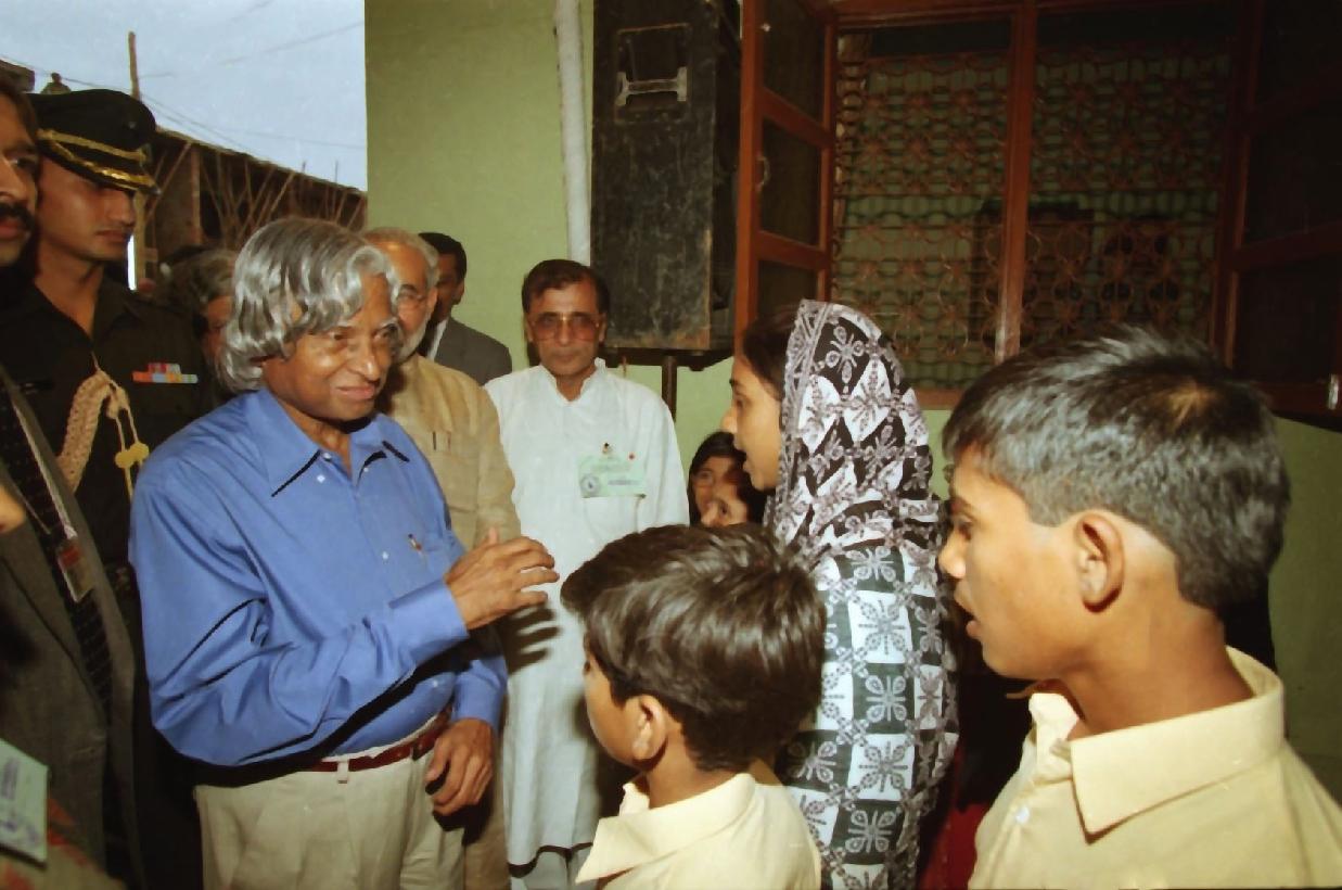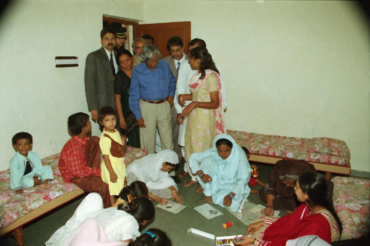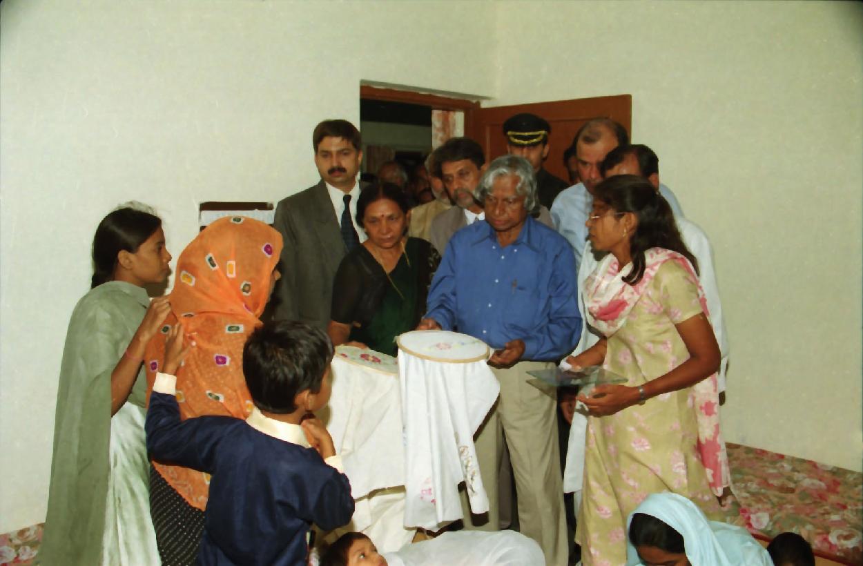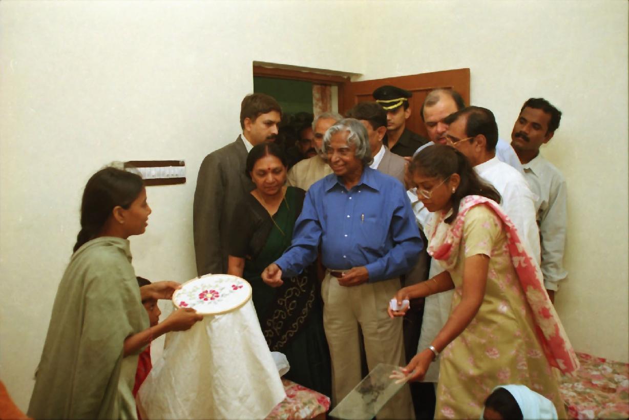 | Caption: | The President of India, Dr A P J Abdul Kalam visiting to the Widow House in Gujarat on Aug 12, 2002 |