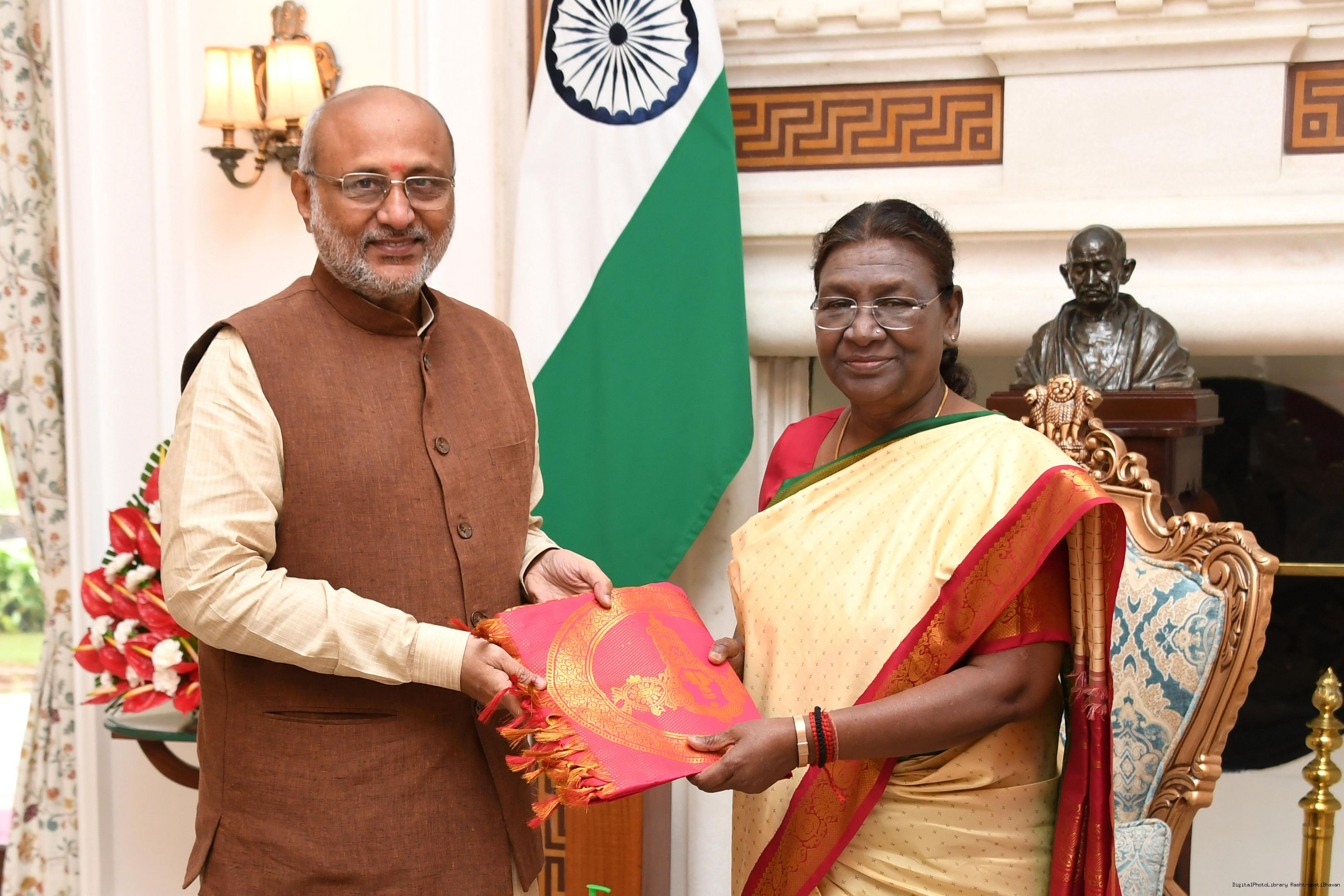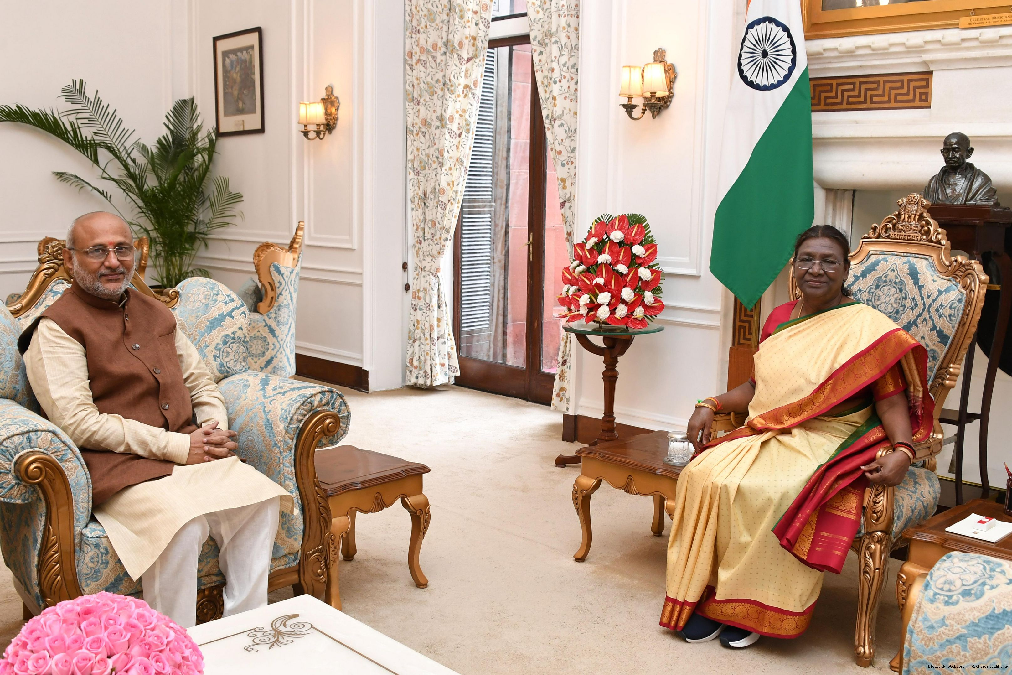 | Caption: | Shri C.P. Radhakrishnan, Governor of Jharkhand called on with the President of India Smt. Droupadi Murmu at Rashtrapati Bhavan on November 10, 2023. |