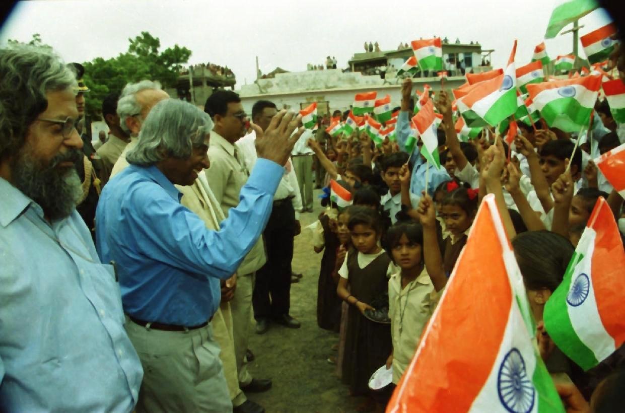 | Caption: | The President of India, Dr A P J Abdul Kalam visiting the Sukhapur Rehabilitation Site at Bhuj in Gujarat on Aug 13, 2002 |