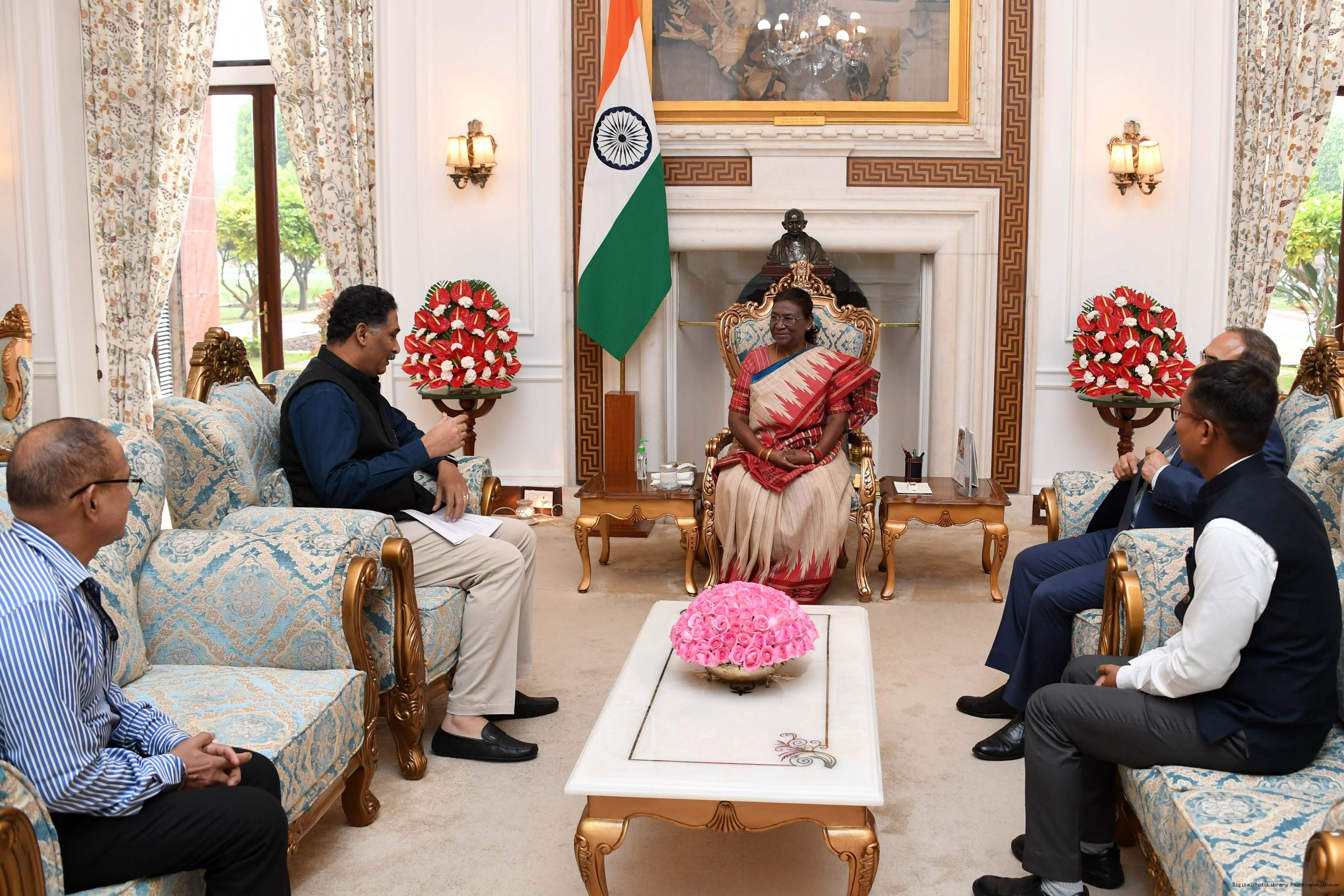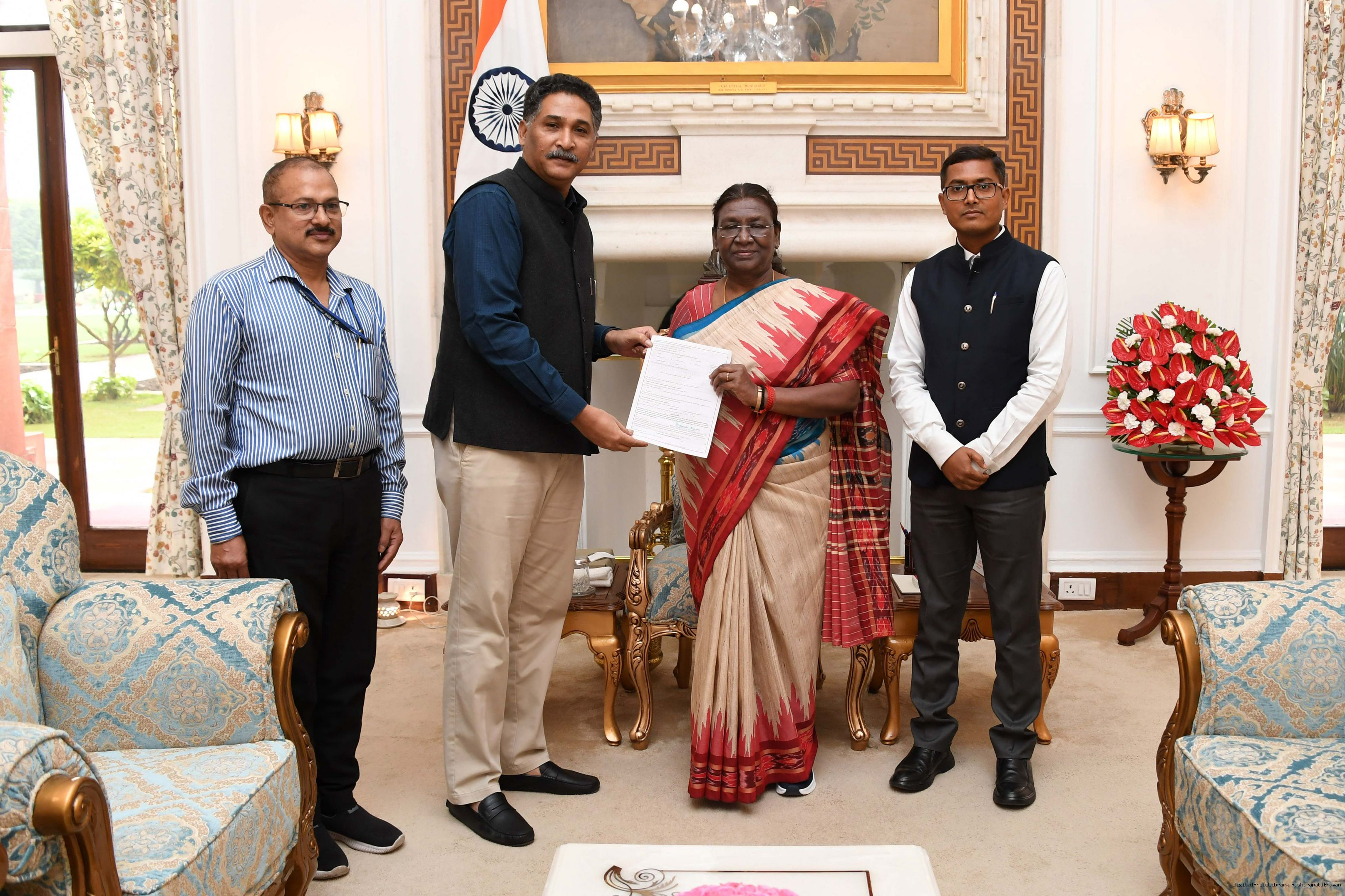 | Caption: | Voter Identity Card Registration Shri P Krishnamurthy Chief Electoral Officer Delhi Shri Santosh Kumar Rai DM New delhi Shri Suresh Giri UDC Sanchar Bhawan meeting with the President of India Smt. Droupadi Murmu at Rashtrapati Bhavan on November 10-11-2023 |