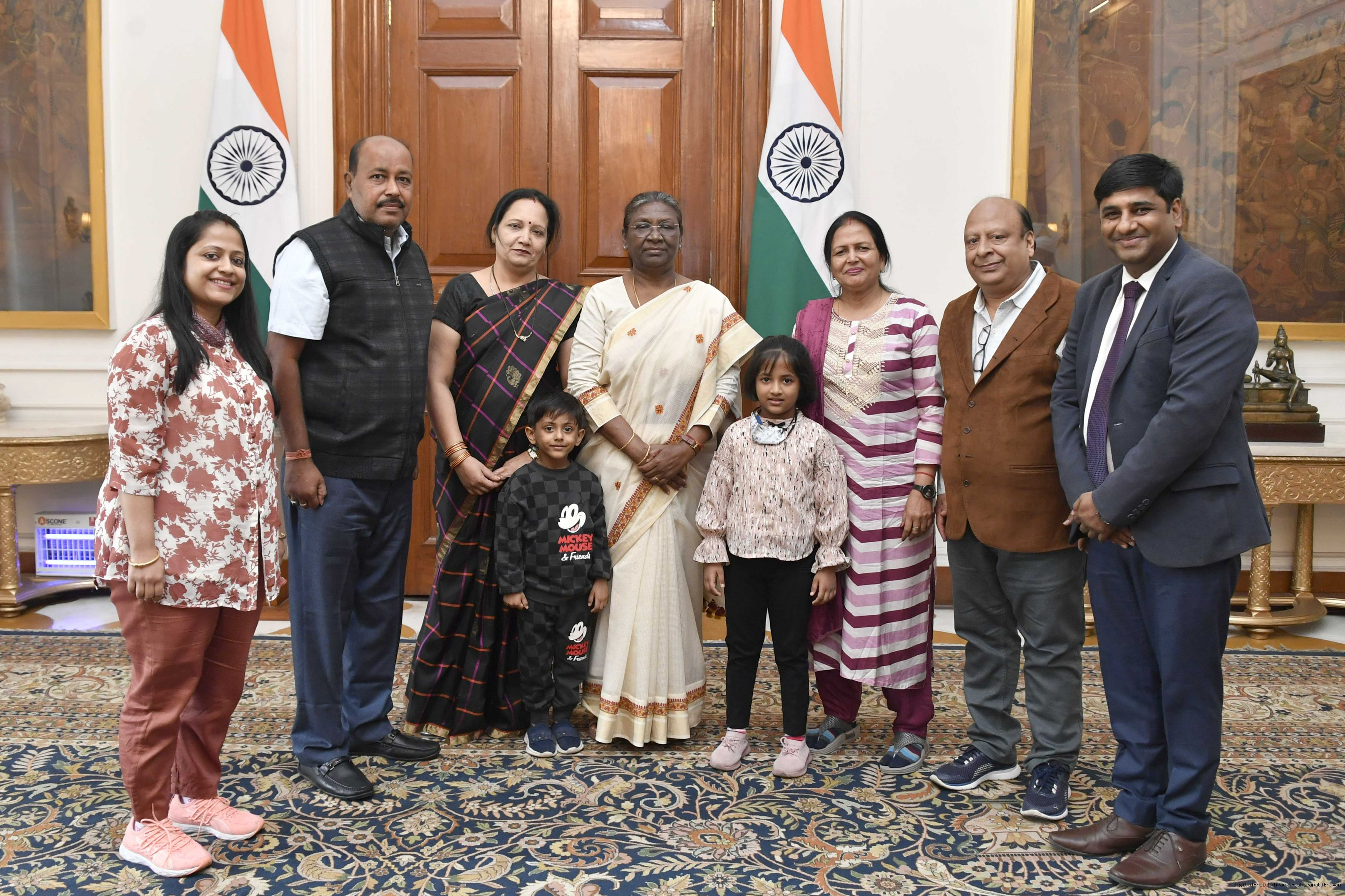 | Caption: | Shri Rajendra Agarwal along with his family from Rairangpur meeting with the President of India, Smt. Droupadi Murmu, at Rashtrapati Bhavan on Nov 18, 2022. |