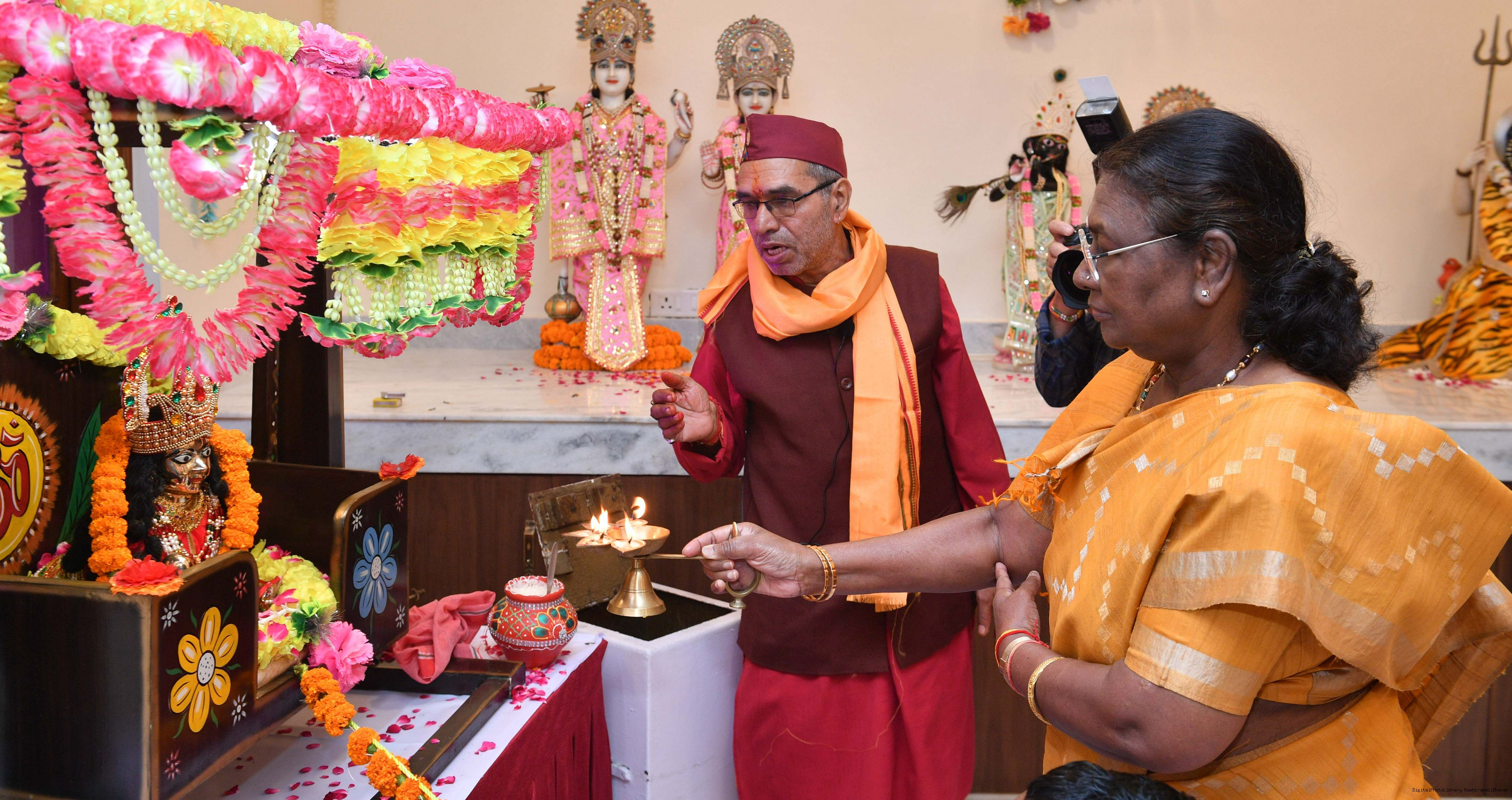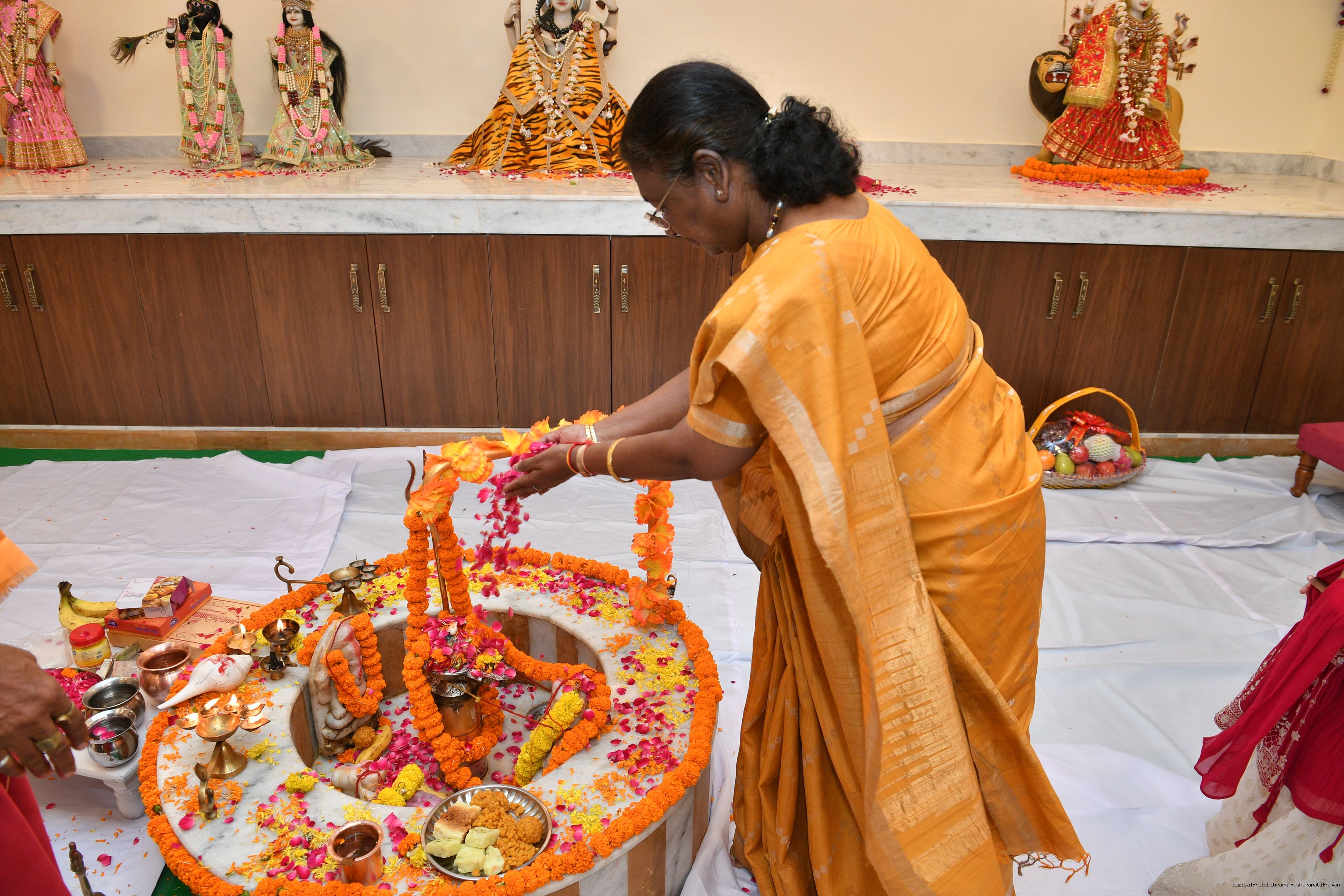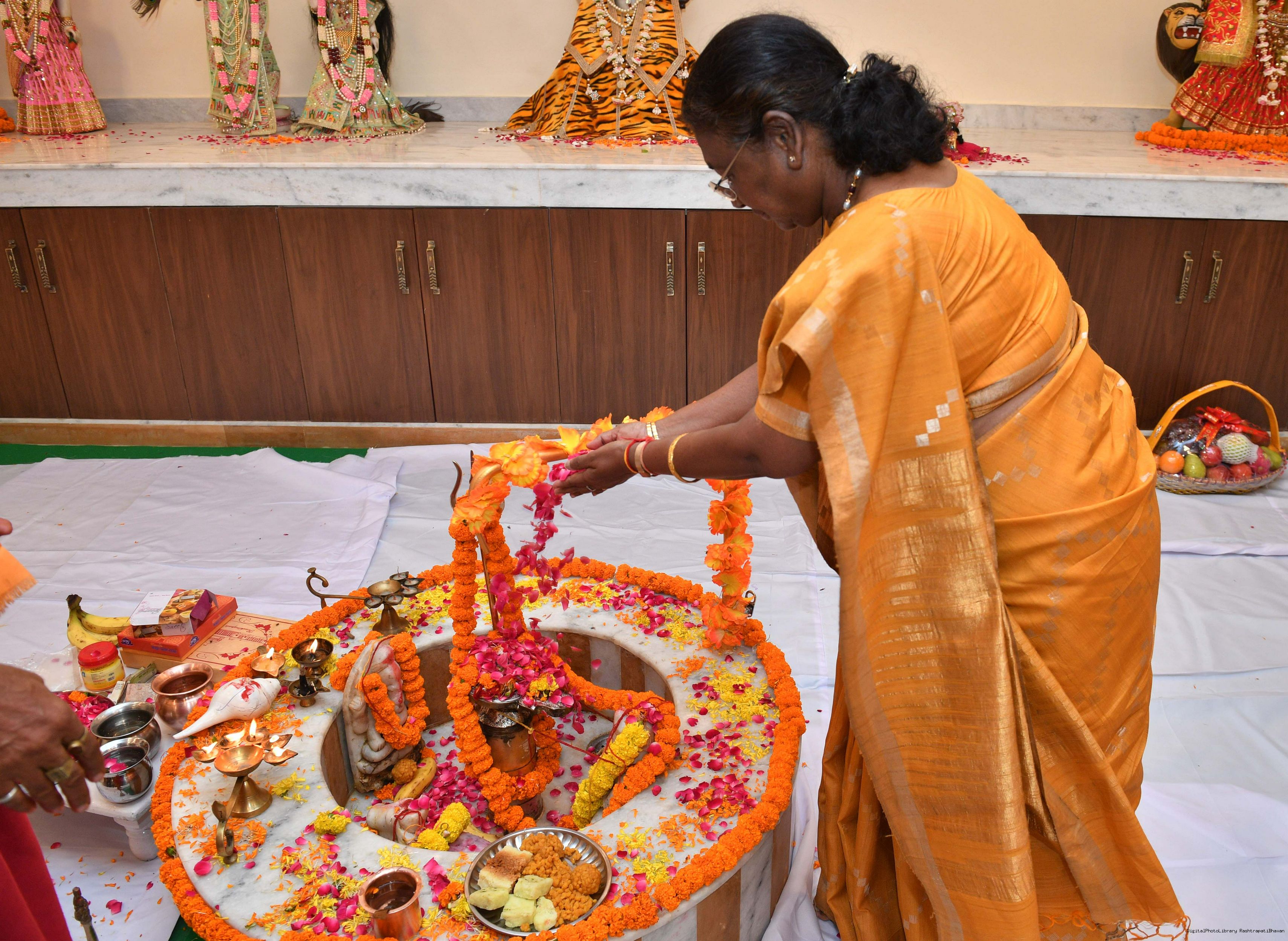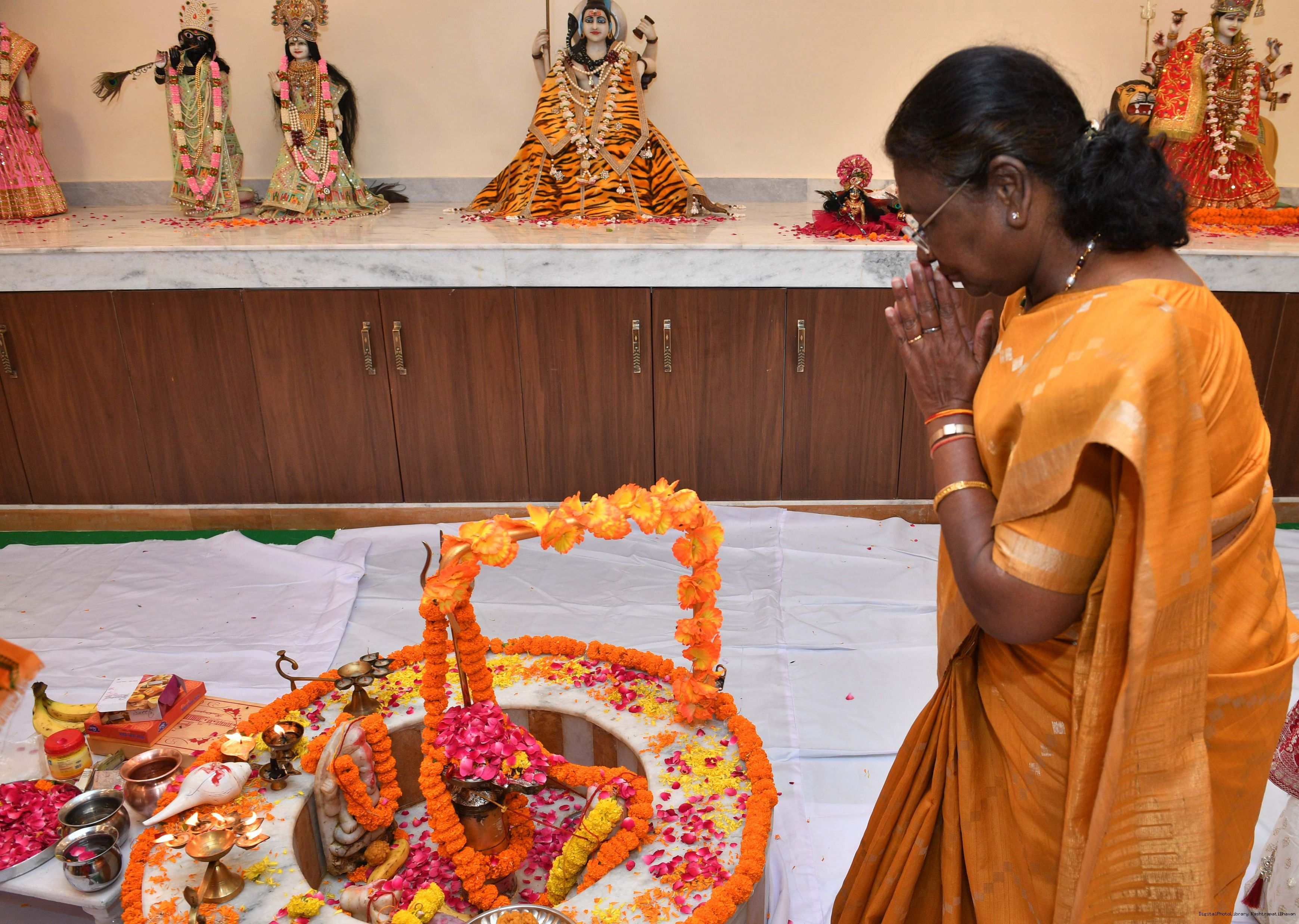 | Caption: | The President Smt. Droupadi Murmu visited Shiv Mandir, Sch 'B', President's Estate 26-08-2024 |