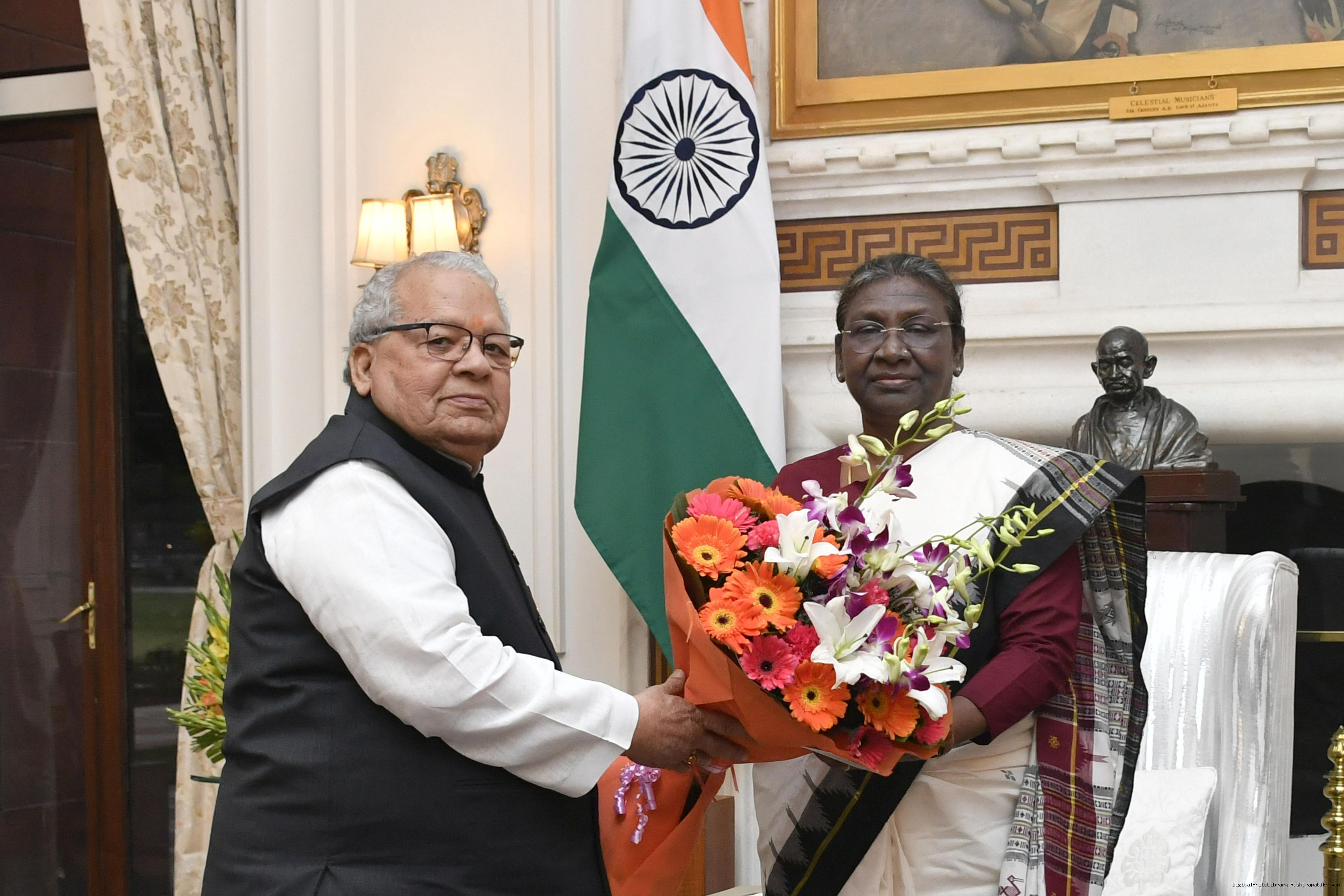 | Caption: | Shri Kalraj Mishra, Governor of Rajasthan meeting with the President of India, Smt. Droupadi Murmu, at Rashtrapati Bhavan on Nov 18, 2022. |