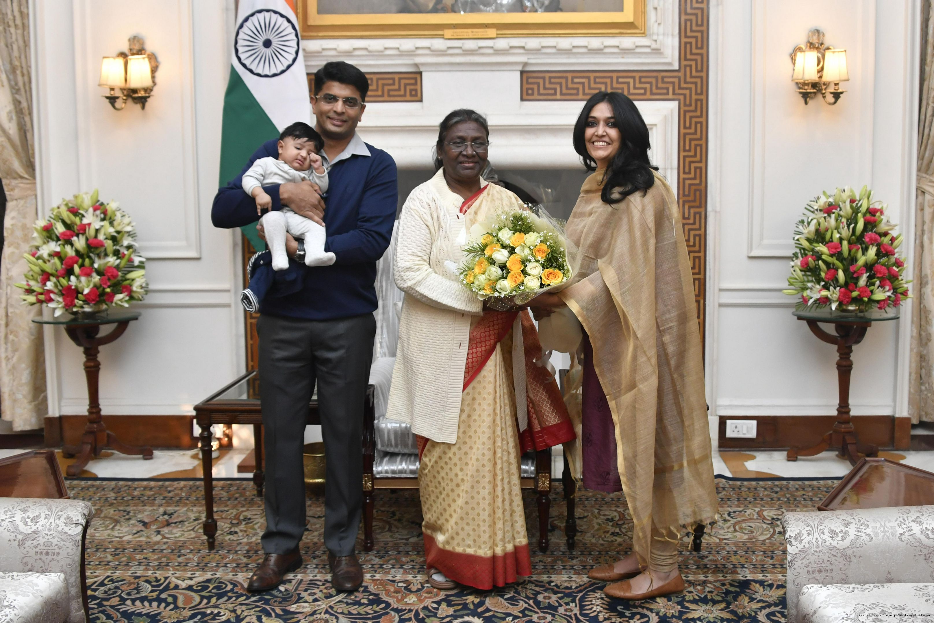 | Caption: | Lt Col Tushar Menon along with others meeting with the President of India, Smt. Droupadi Murmu, at Rashtrapati Bhavan on Nov 28, 2022. |