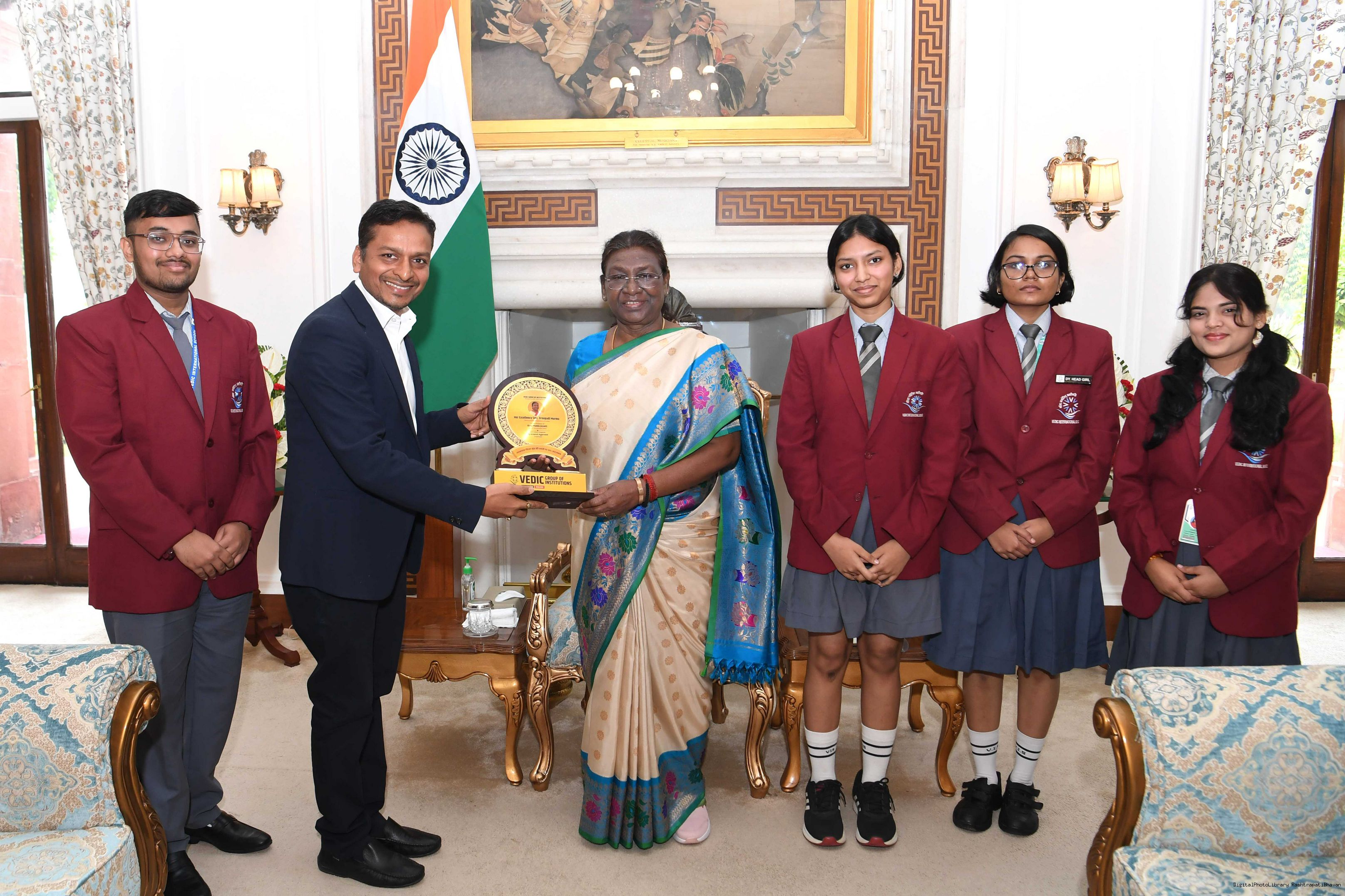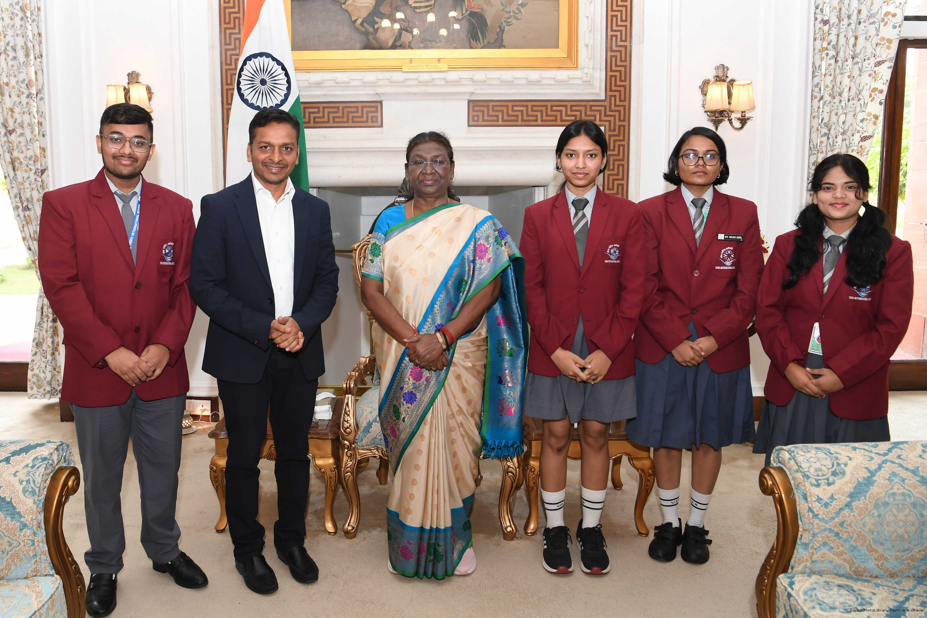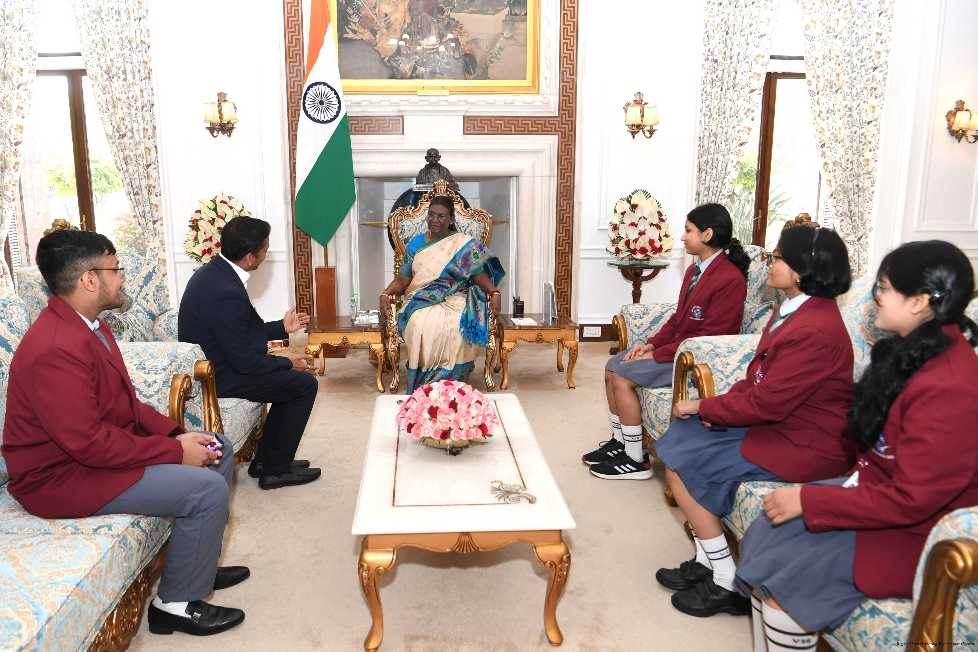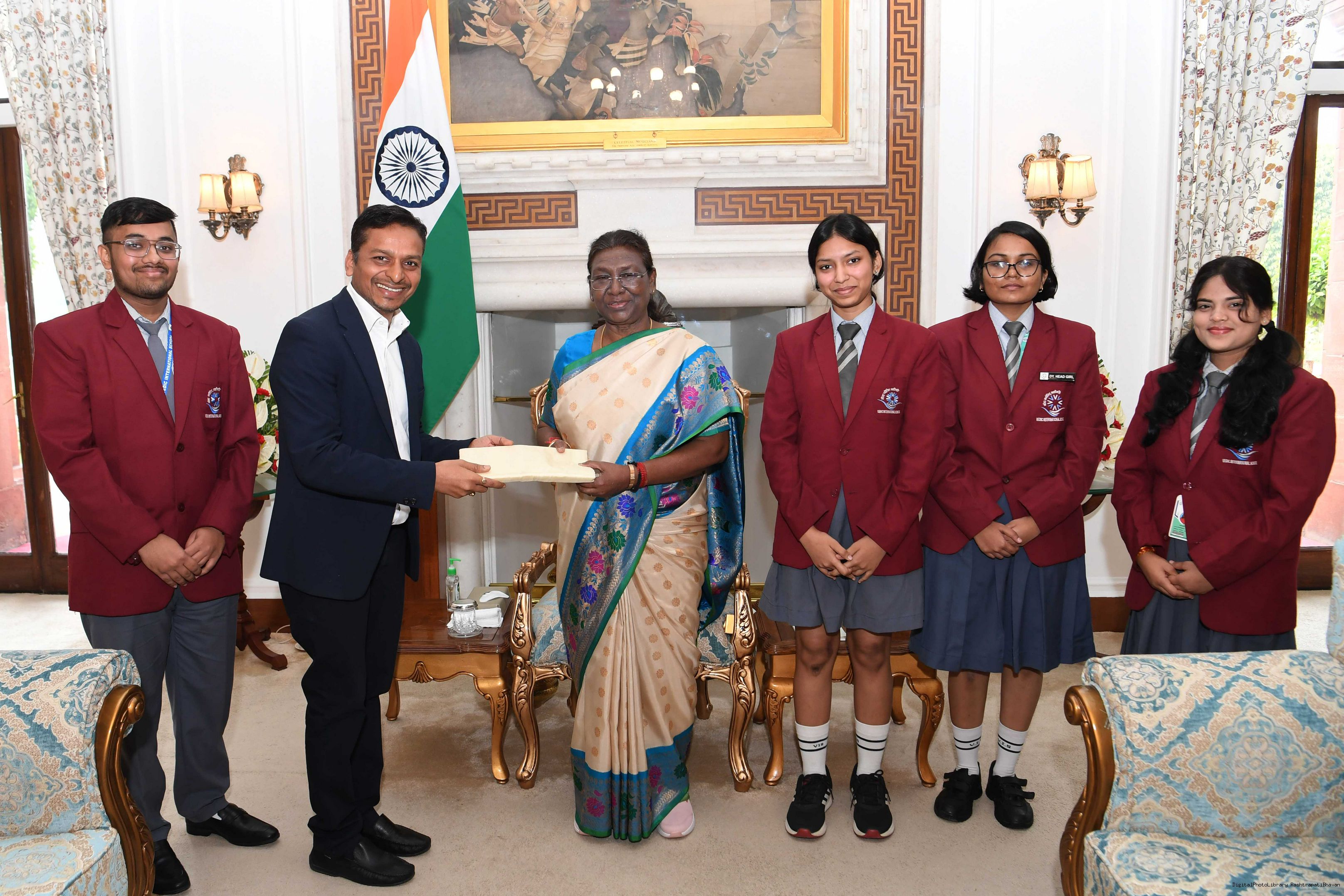 | Caption: | Shri Pratap chandra Sarangi MP Lok Sabha along with Shri anand Agrawal Ms Riya Agrawal Shri Ujjwal Jain Ms Aaniska Patel Ms Giribala Patel and Shri Arrish Anurag bara meeting with the President of India Smt. Droupadi Murmu at Rashtrapati Bhavan on November 15, 2023 |