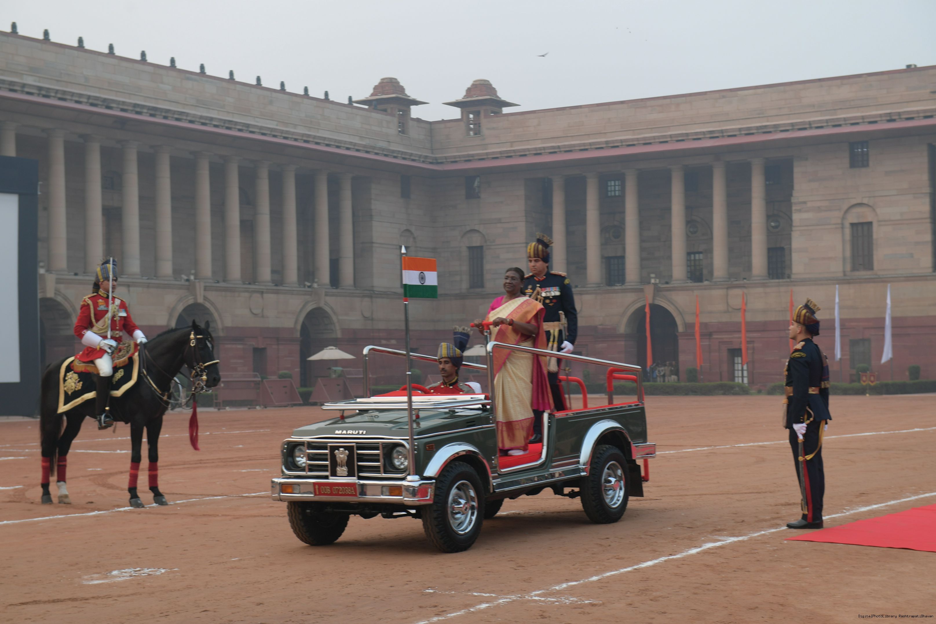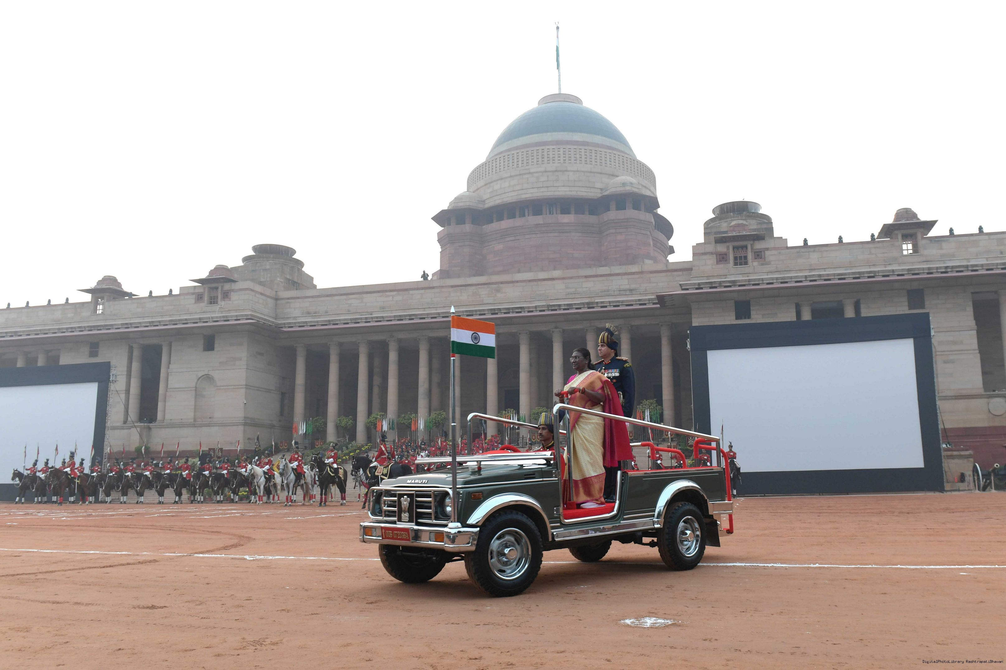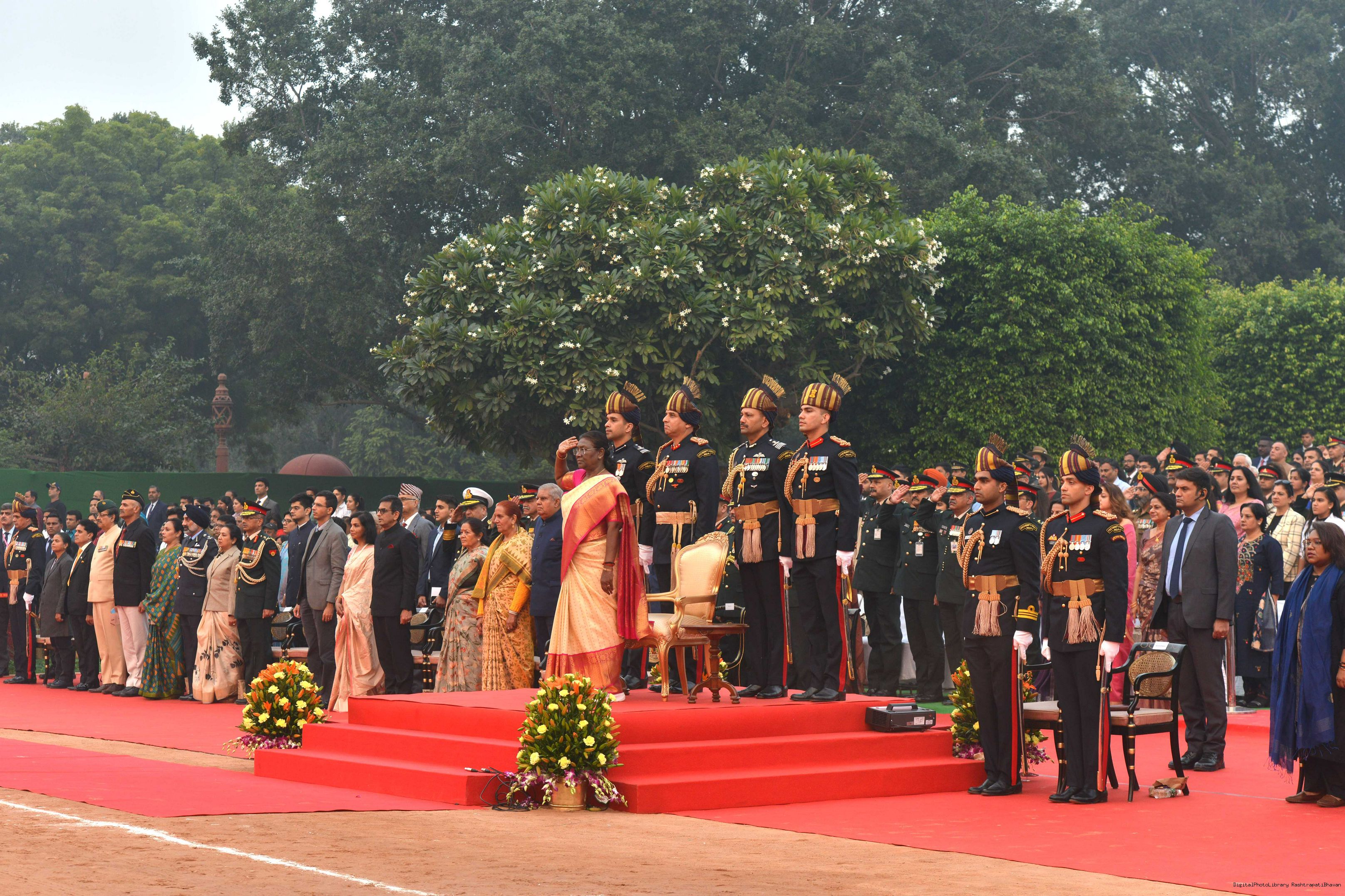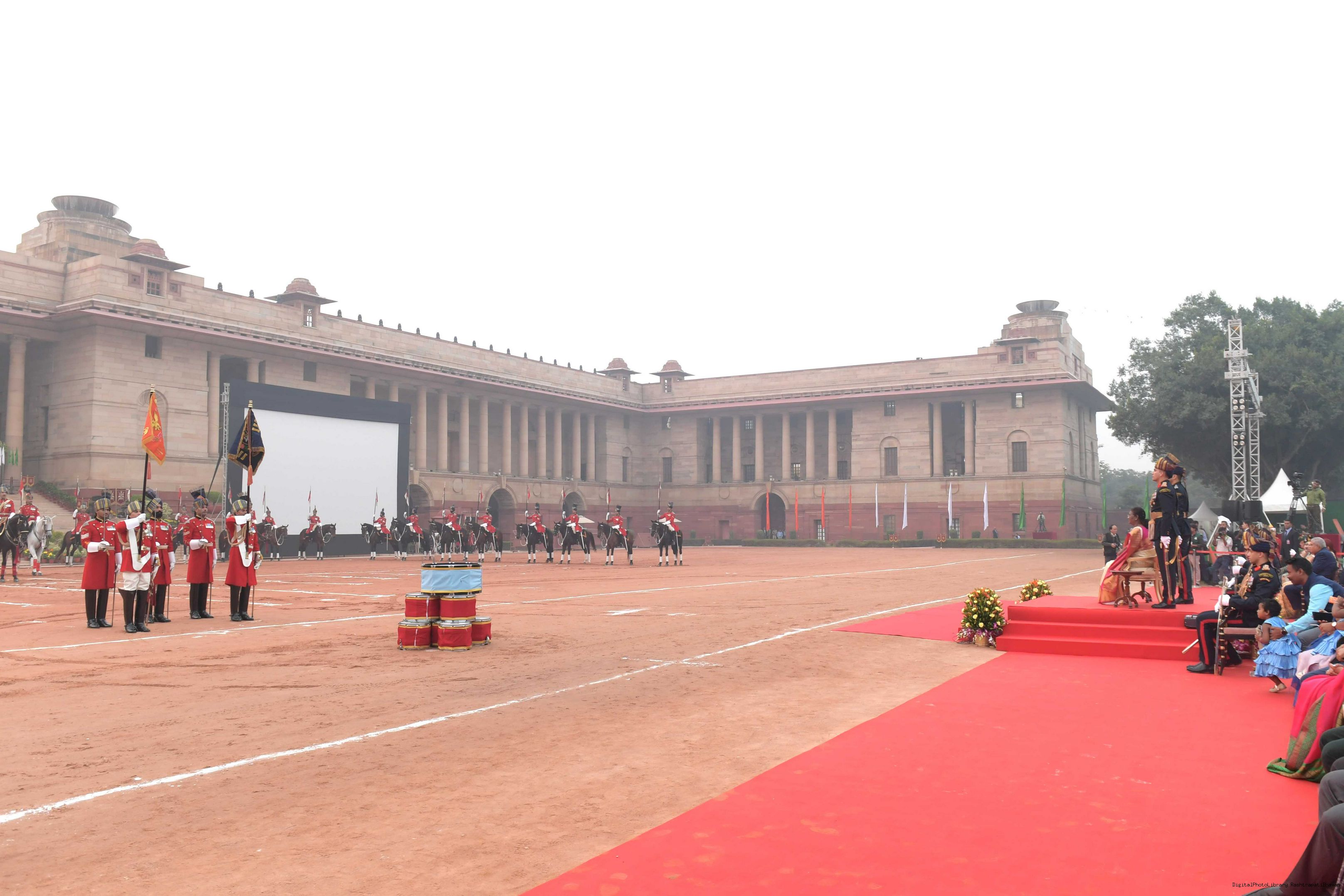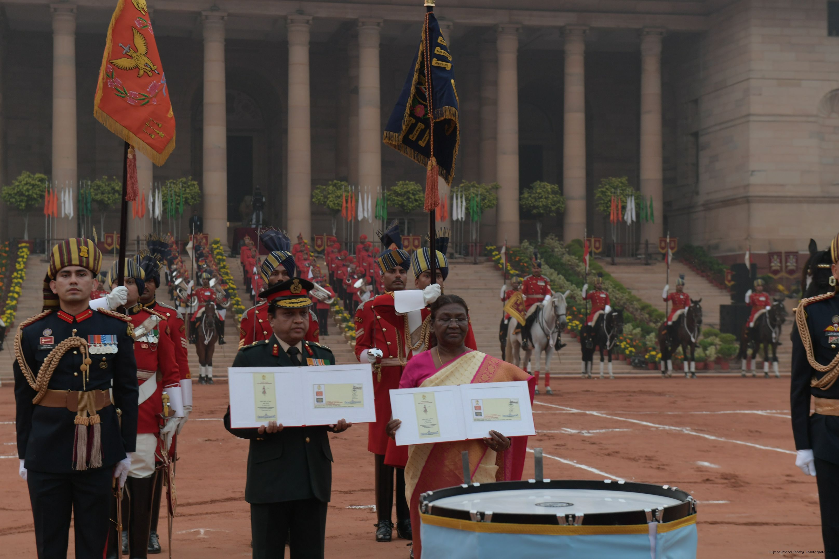 | Caption: | The President of India, Smt Droupadi Murmu presented a new Standard of Bodyguard and renewed Regimental Standard to the President’s Bodyguard (PBG) at a ceremony held at Rashtrapati Bhavan on November 16, 2023. |