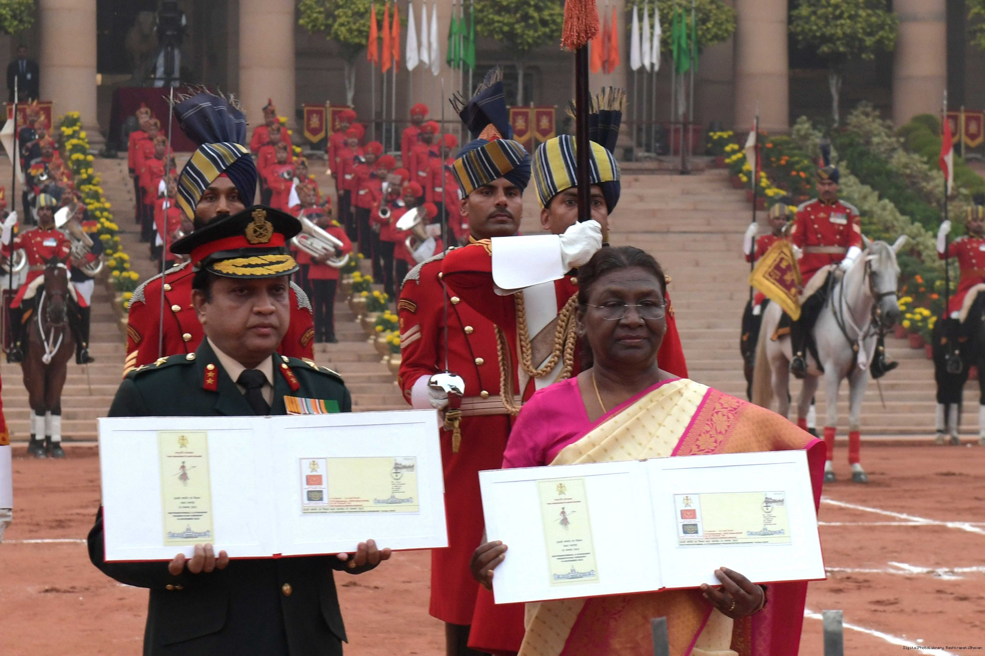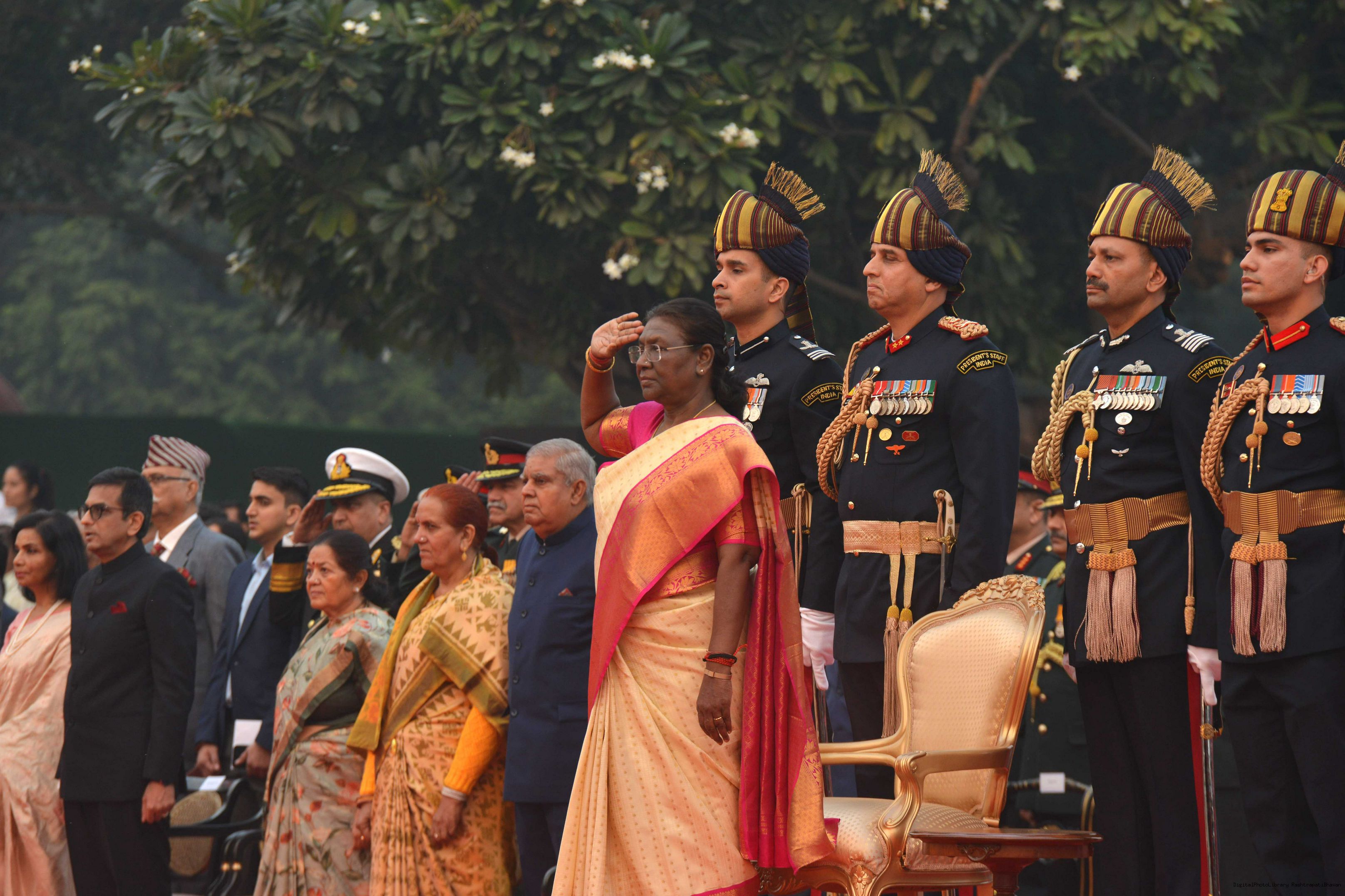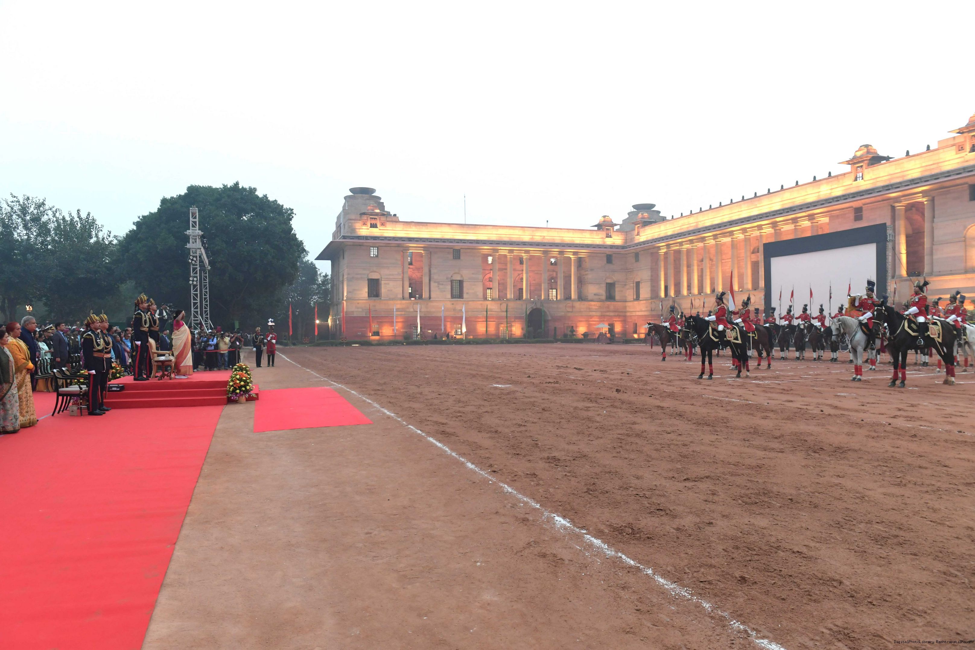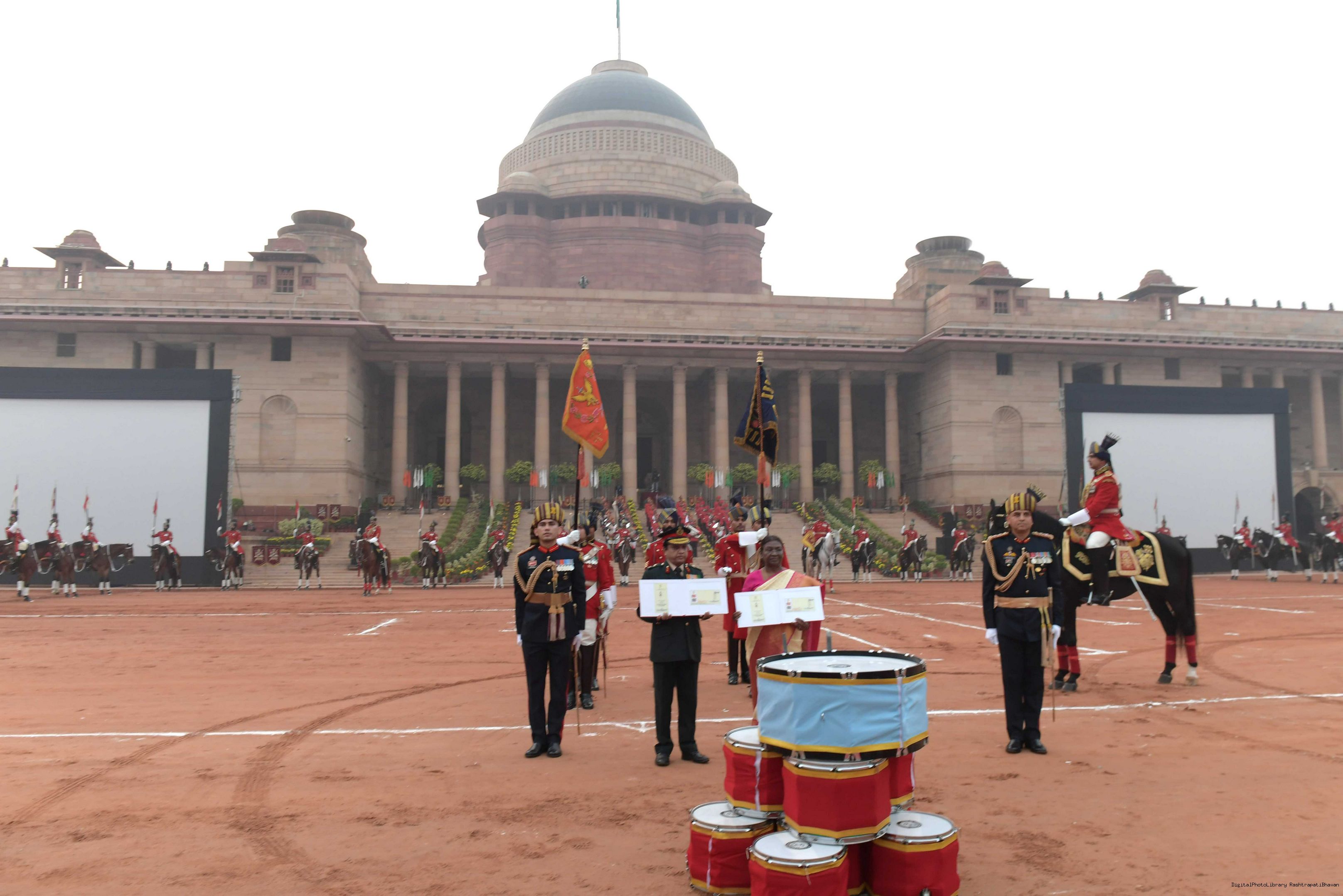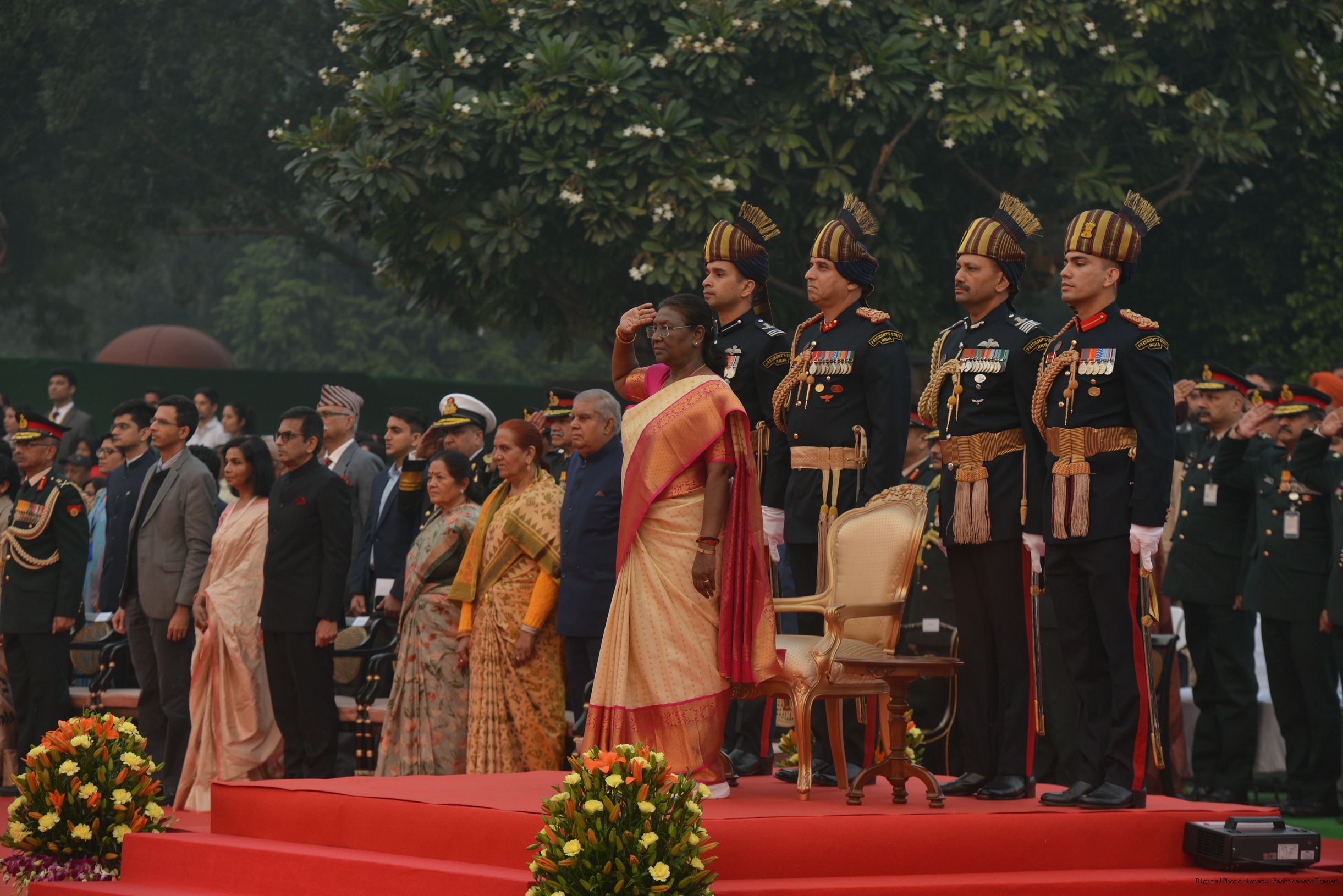 | Caption: | The President of India, Smt Droupadi Murmu presented a new Standard of Bodyguard and renewed Regimental Standard to the President’s Bodyguard (PBG) at a ceremony held at Rashtrapati Bhavan on November 16, 2023. |