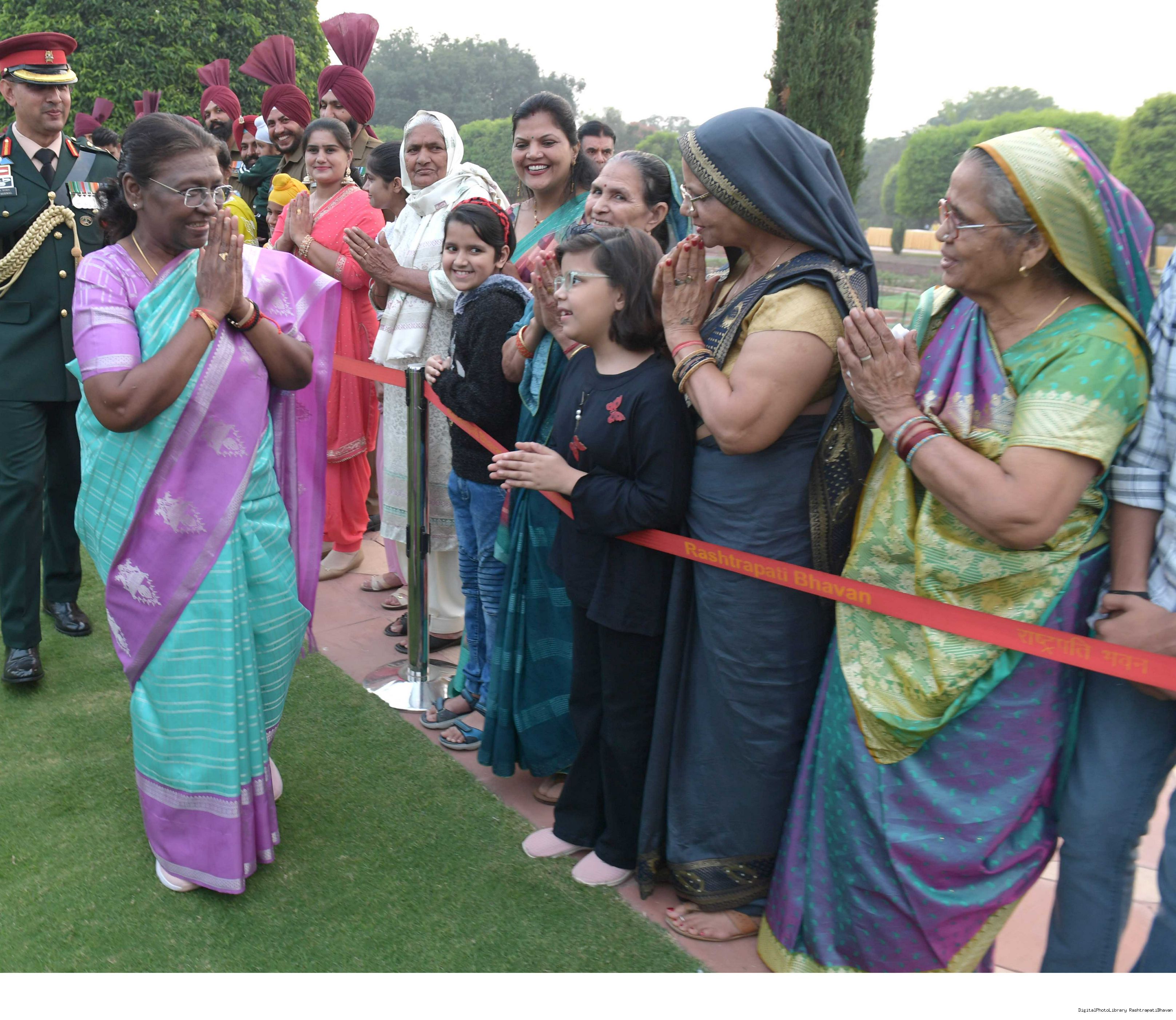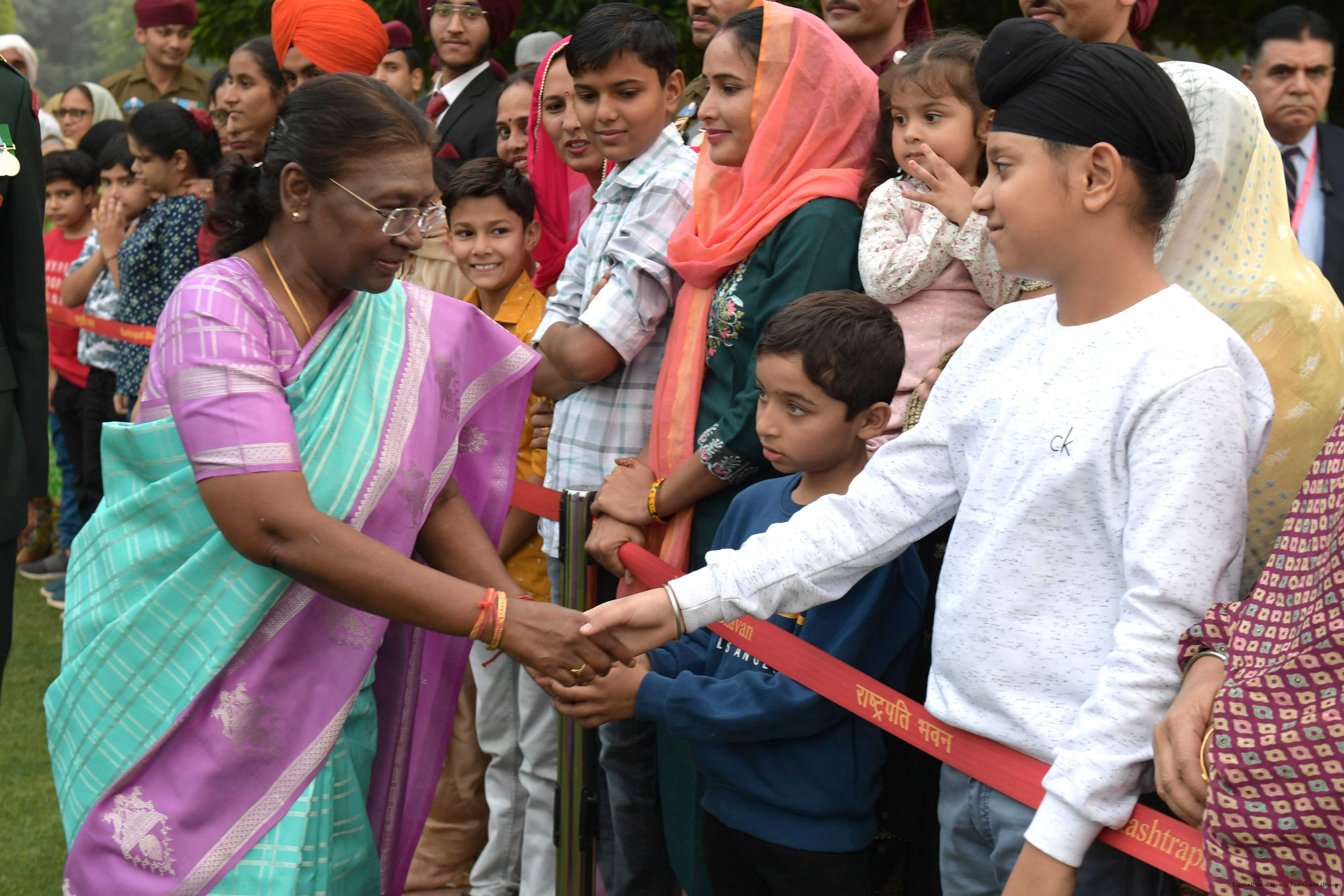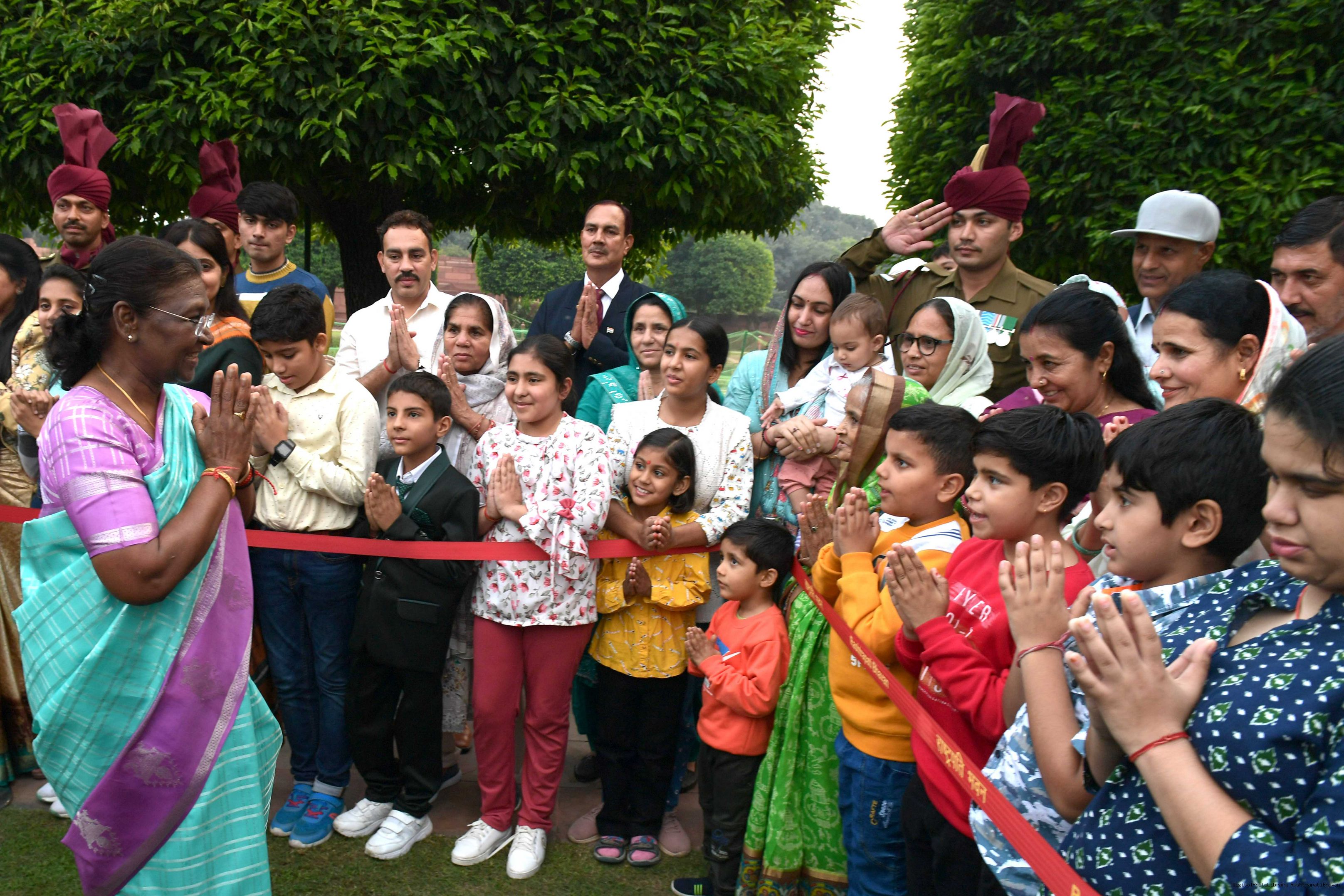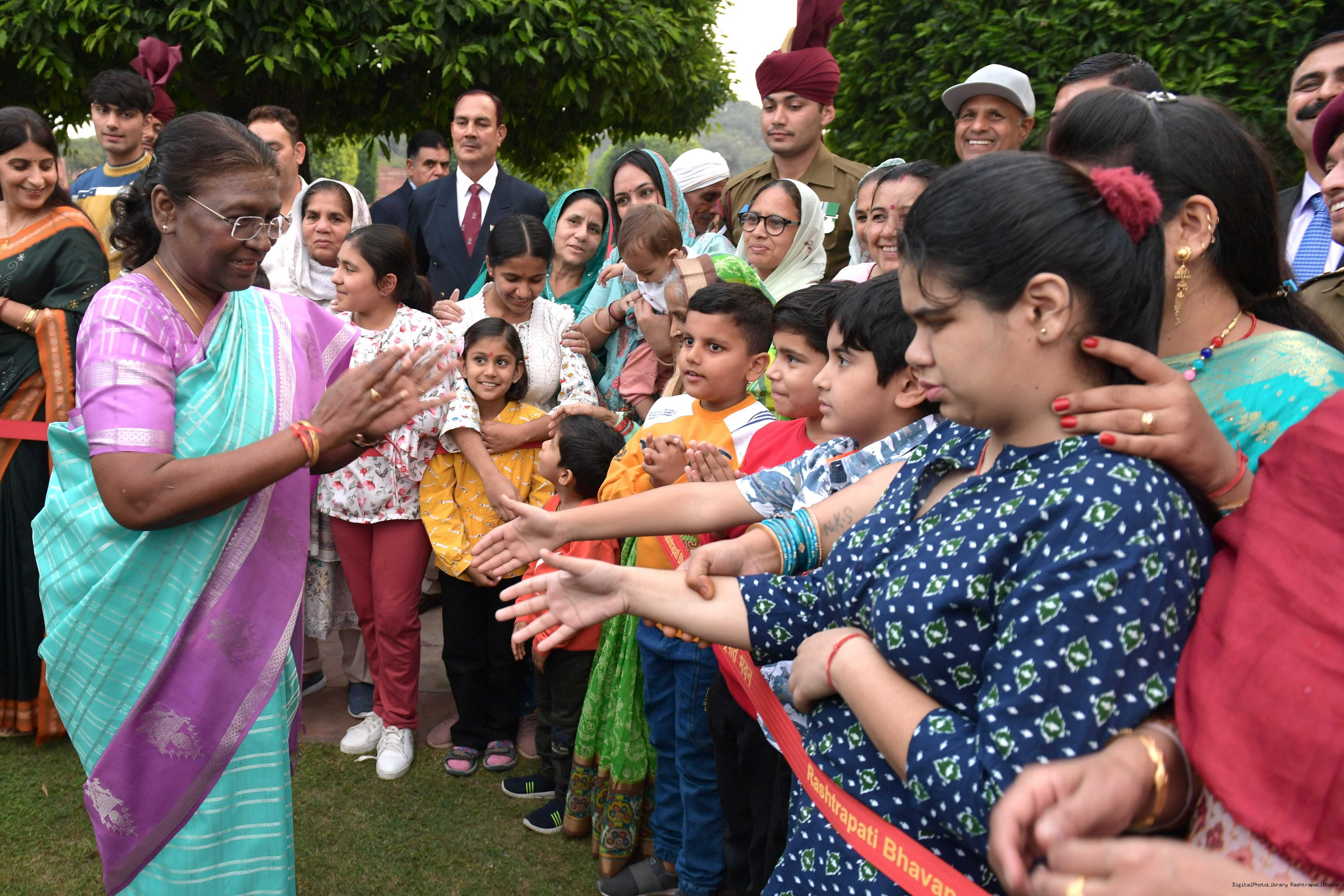 | Caption: | The President of Smt. Droupadi Murmu At Home with the Officers, JCOs, ORs and Veterans of PBG with their families on November 17, 2023 |