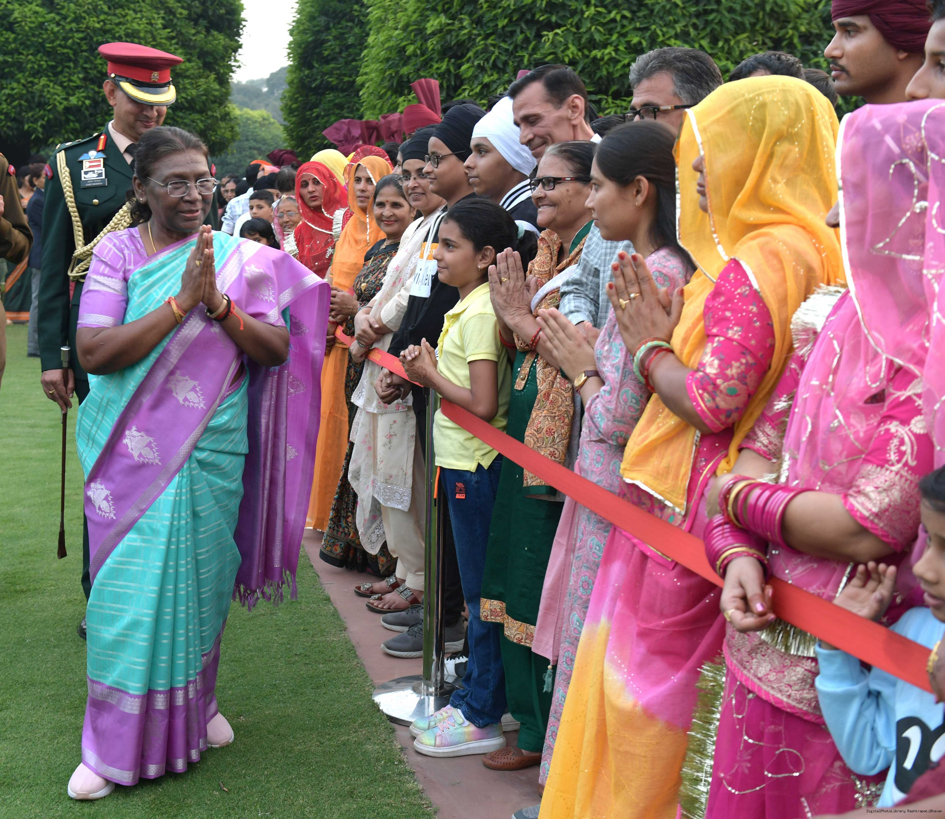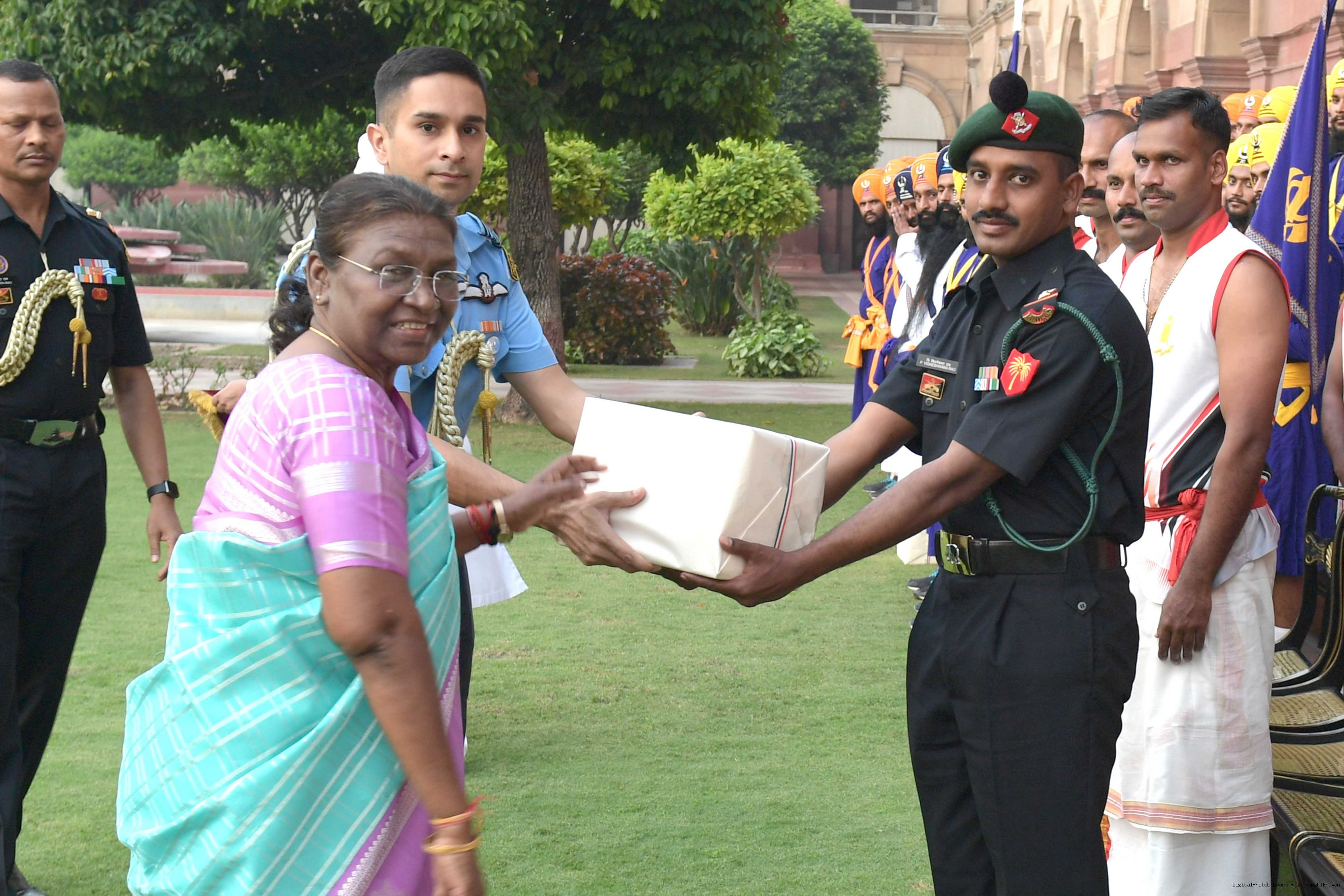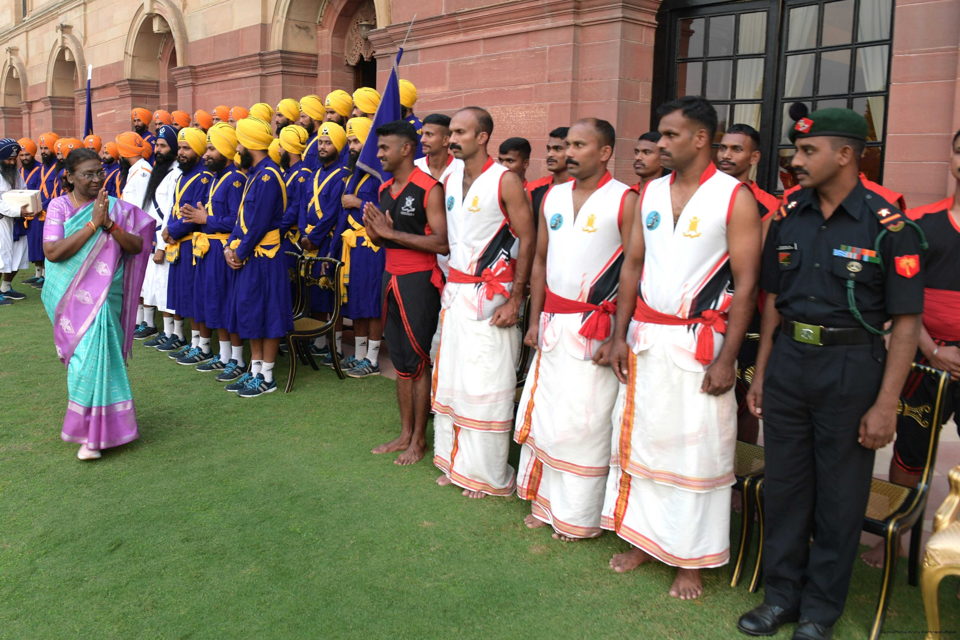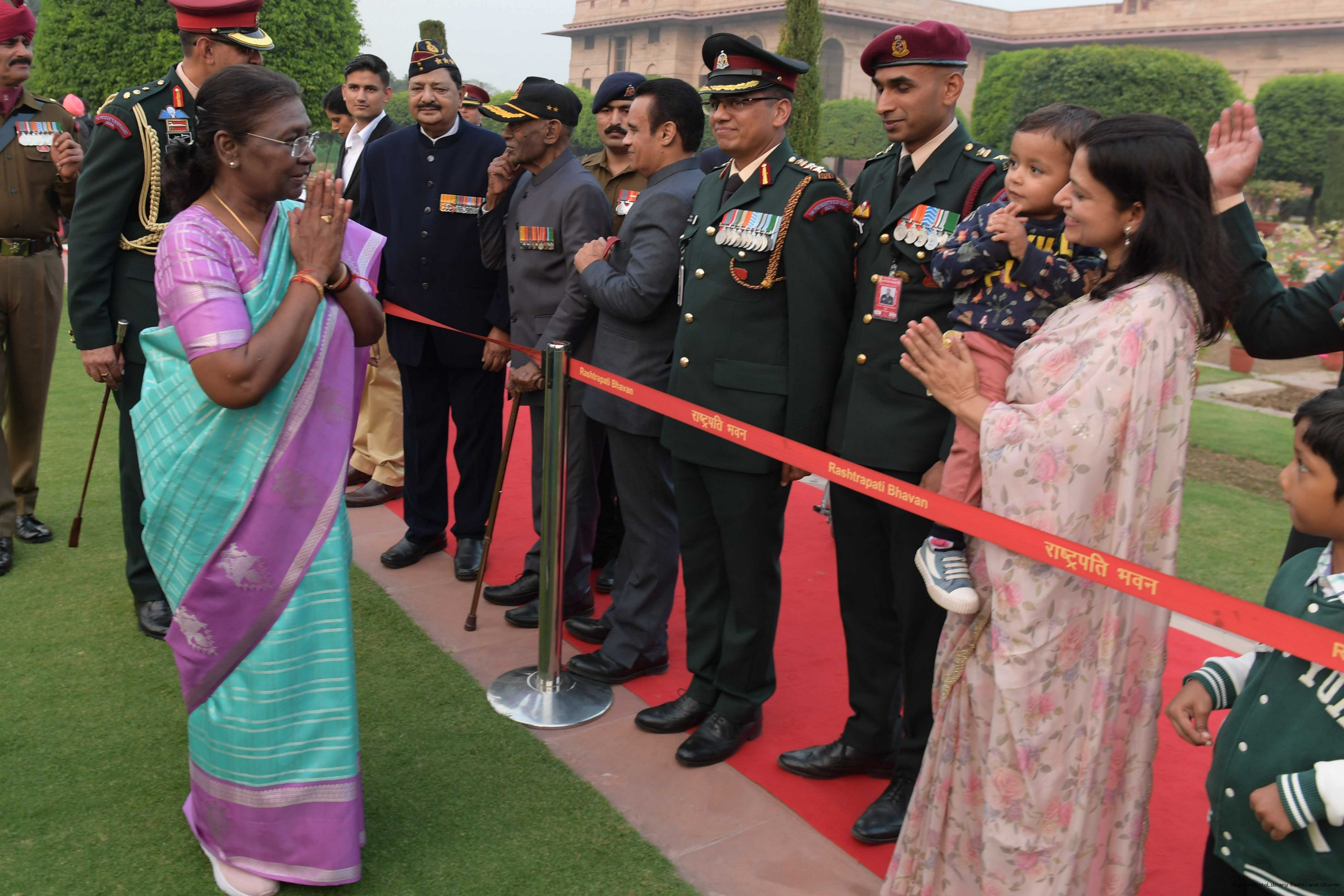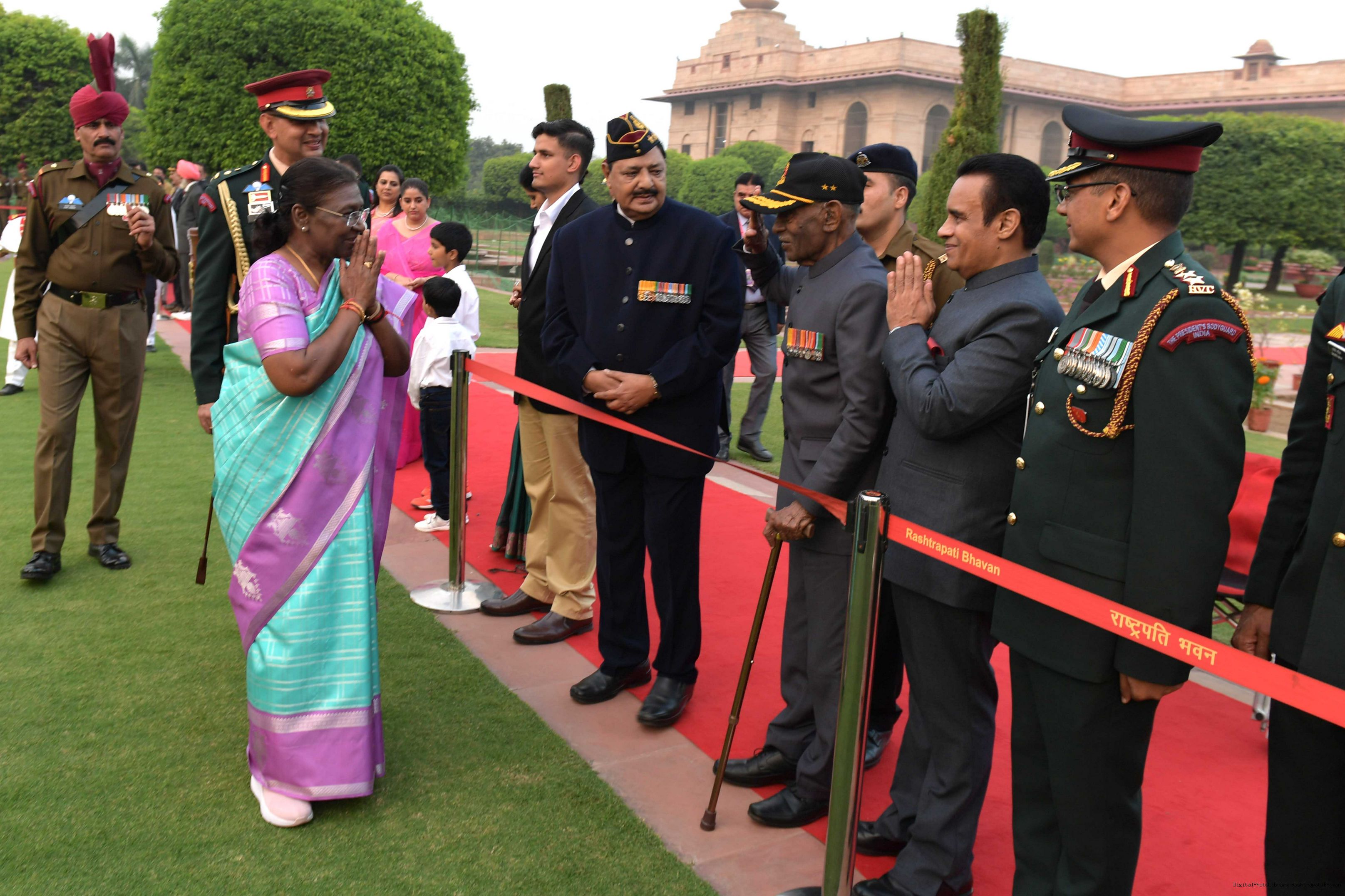 | Caption: | The President of Smt. Droupadi Murmu At Home with the Officers, JCOs, ORs and Veterans of PBG with their families on November 17, 2023 |