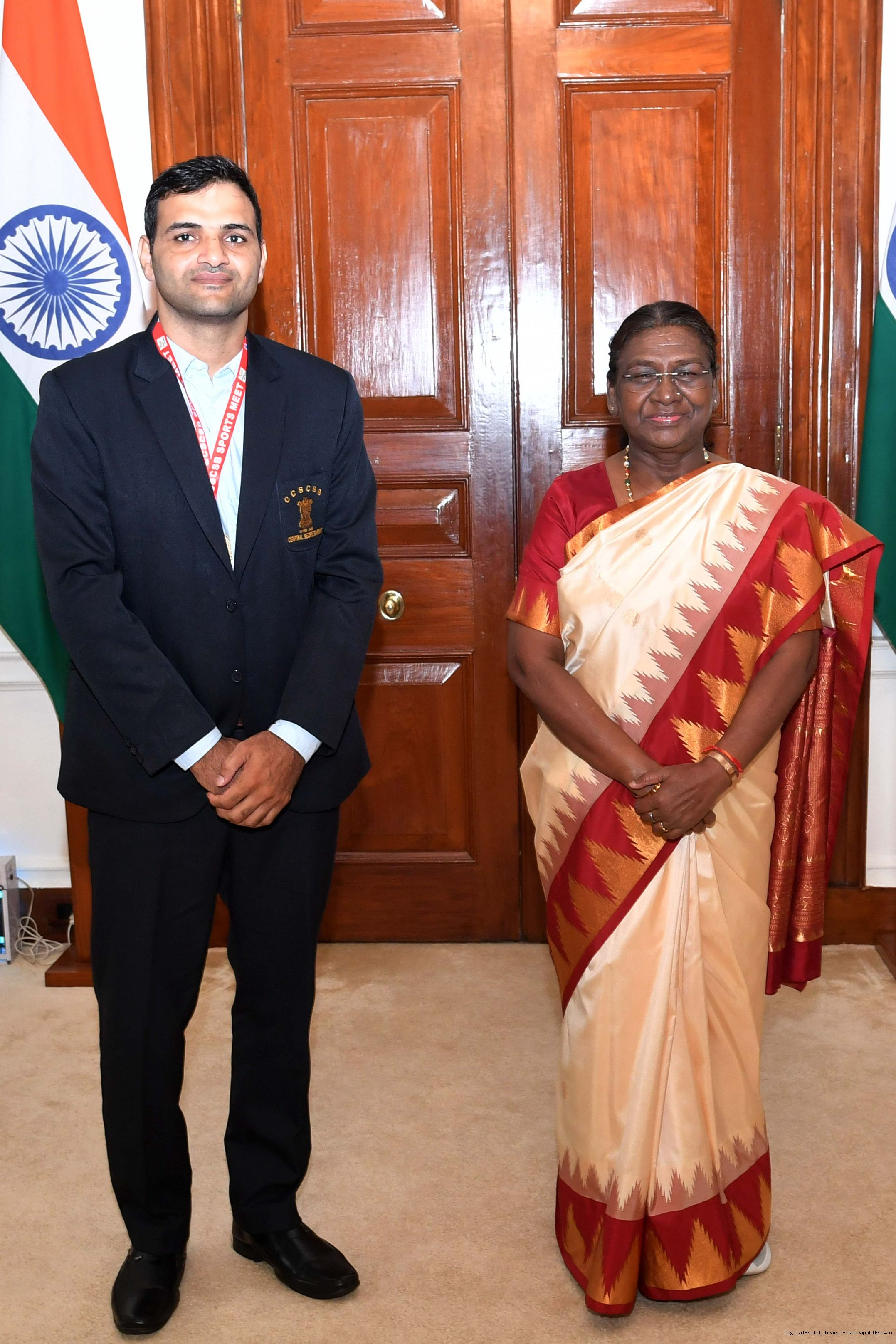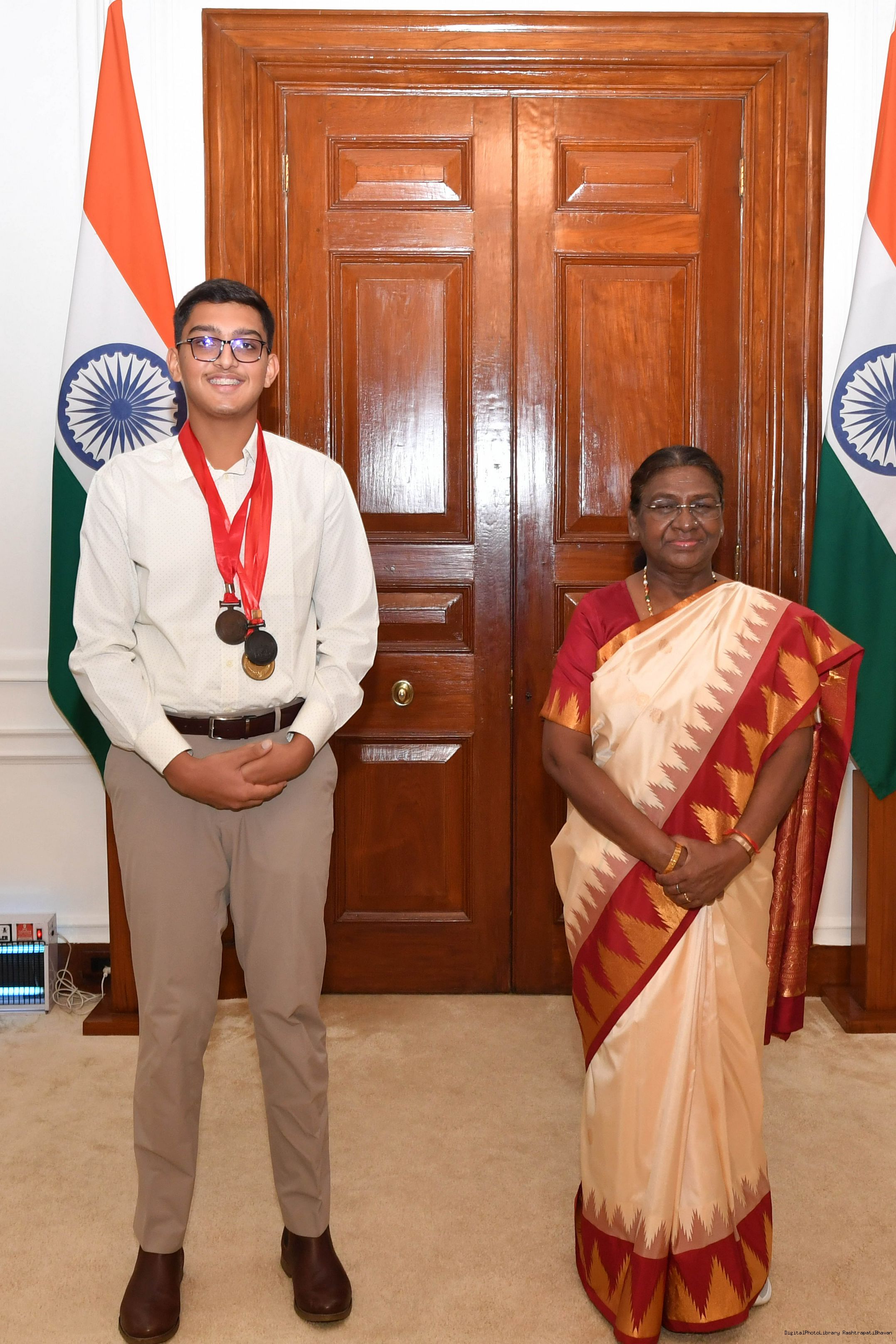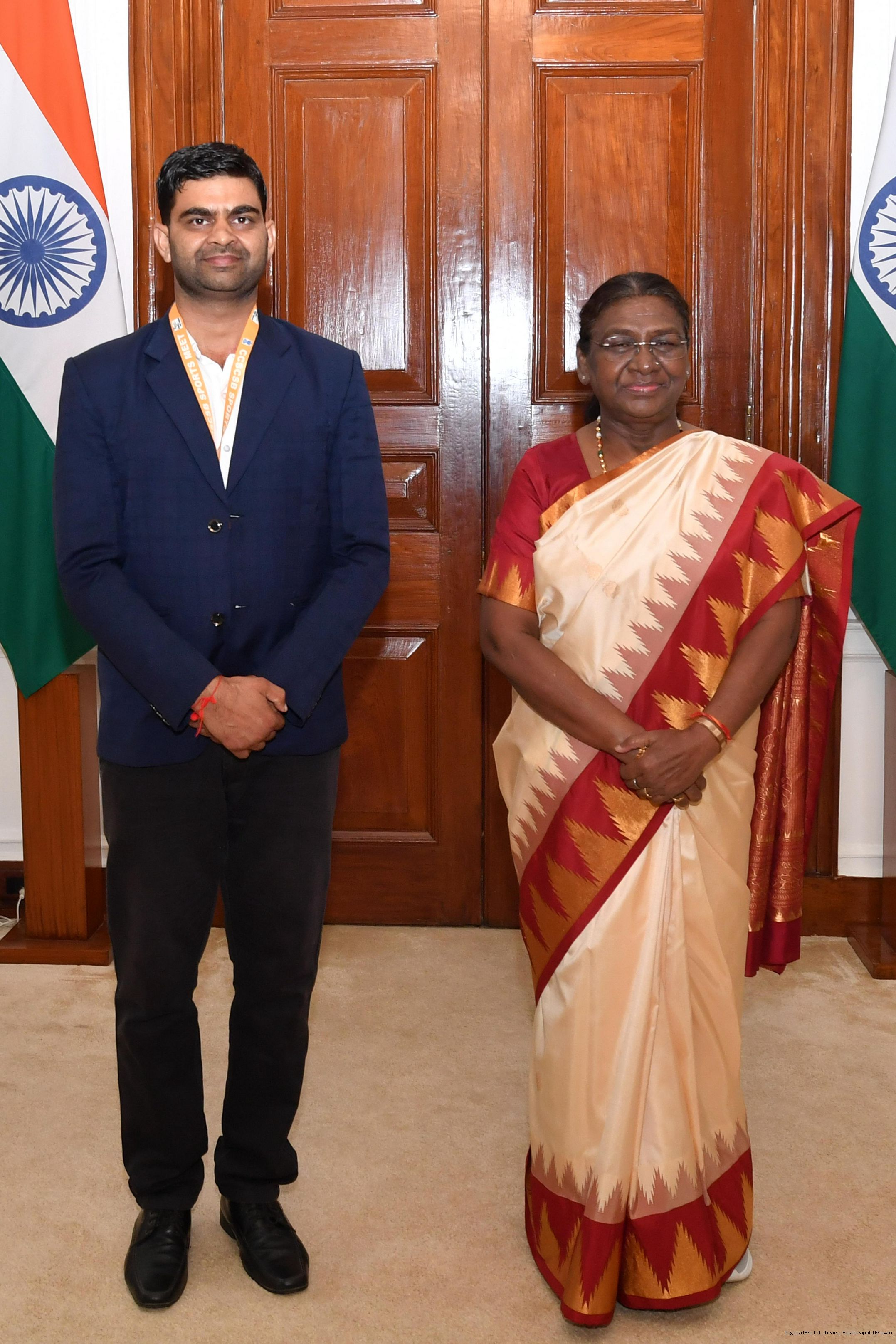 | Caption: | Shri Akshay Mahara Booshanam along with others meeting with the President of India Smt. Droupadi Murmu at Rashtrapati Bhavan on August 30, 2024. |