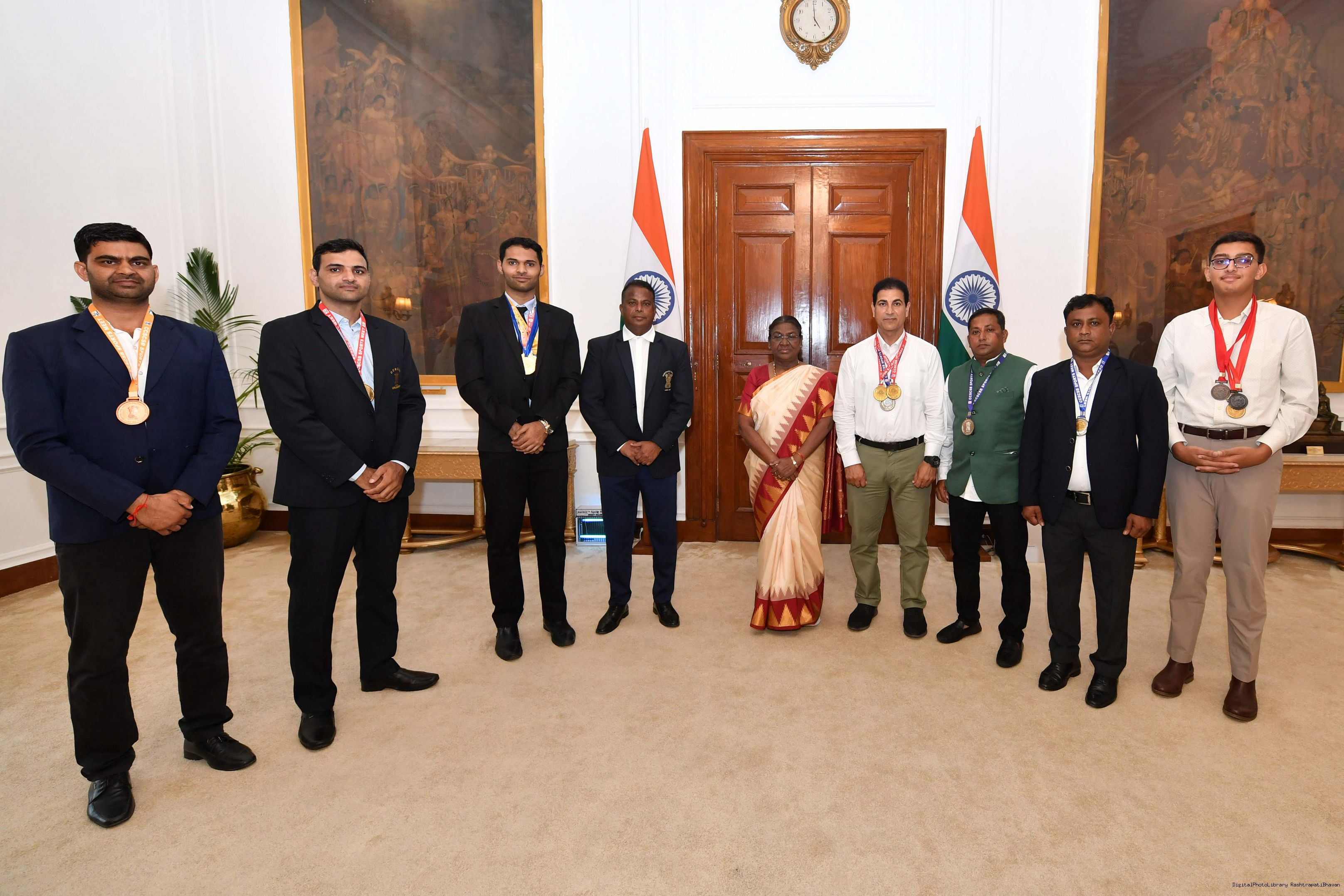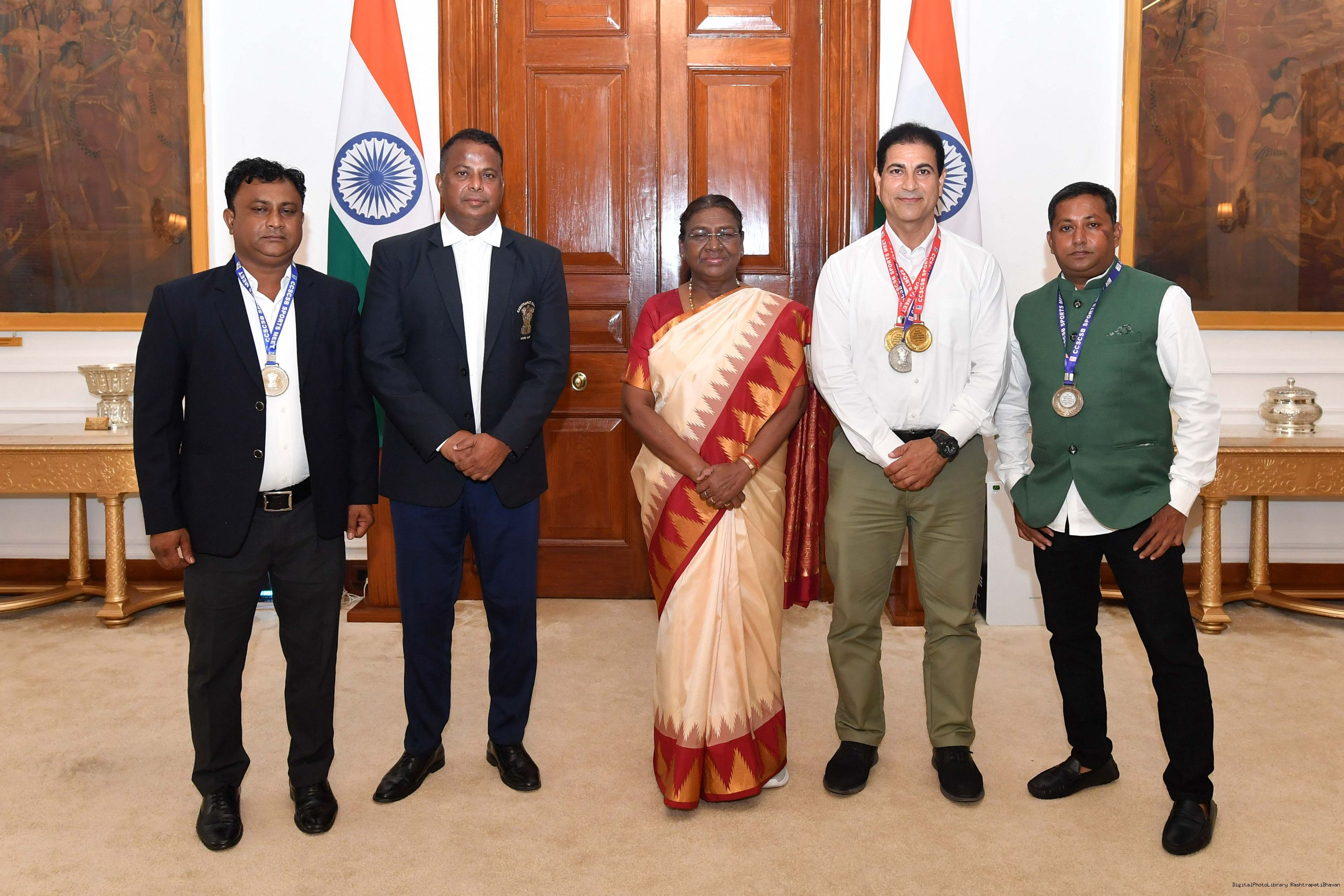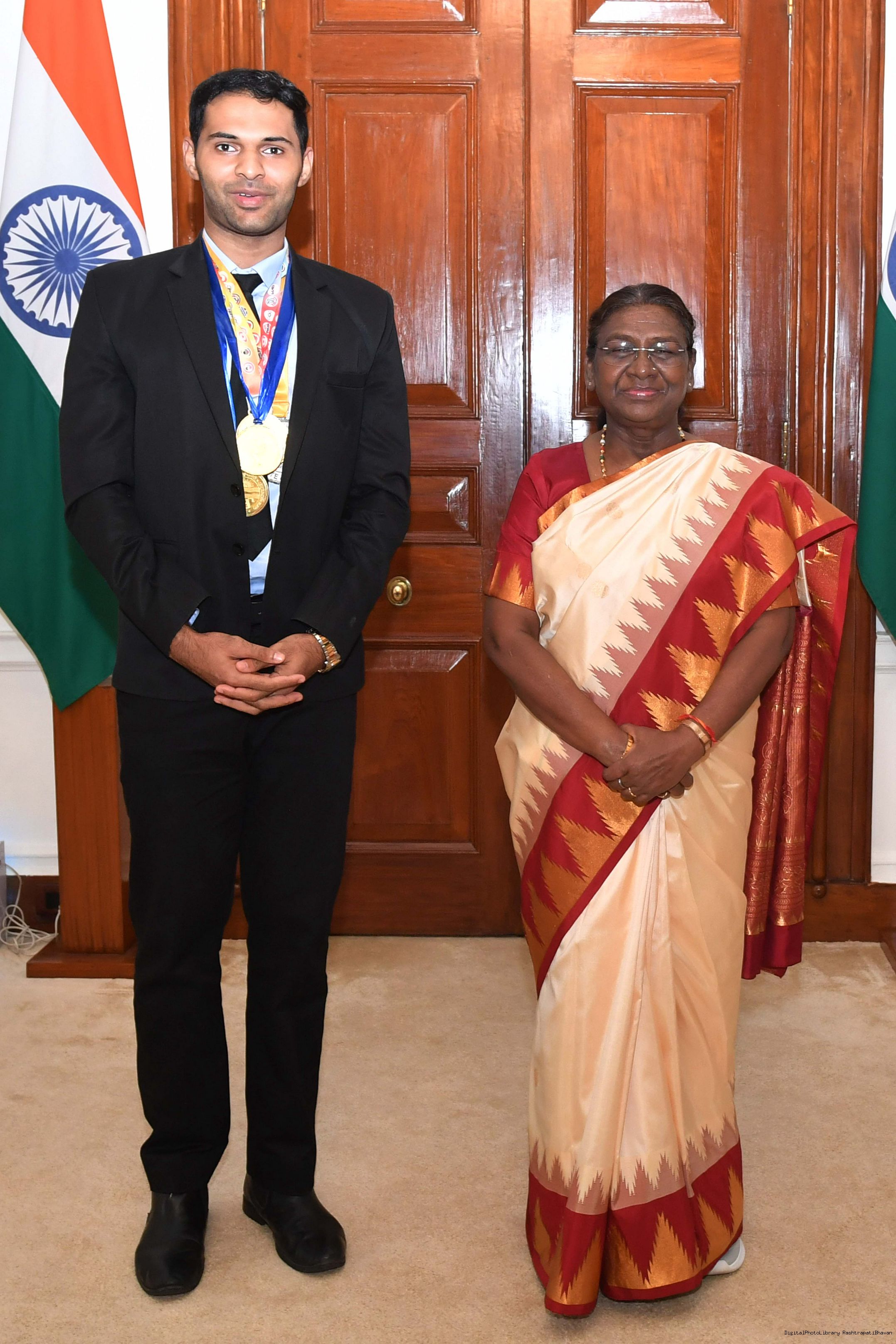 | Caption: | Shri Akshay Mahara Booshanam along with others meeting with the President of India Smt. Droupadi Murmu at Rashtrapati Bhavan on August 30, 2024. |