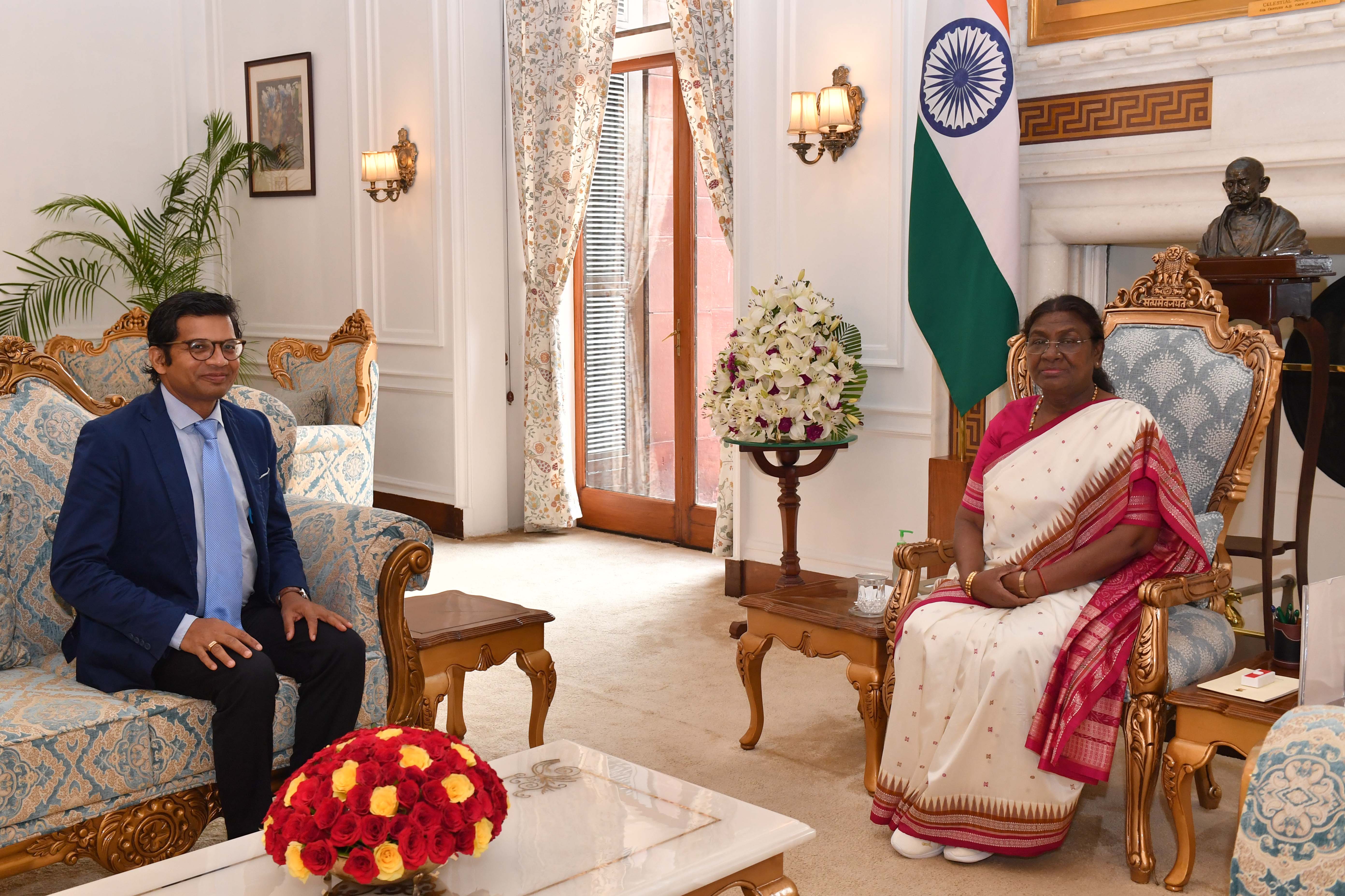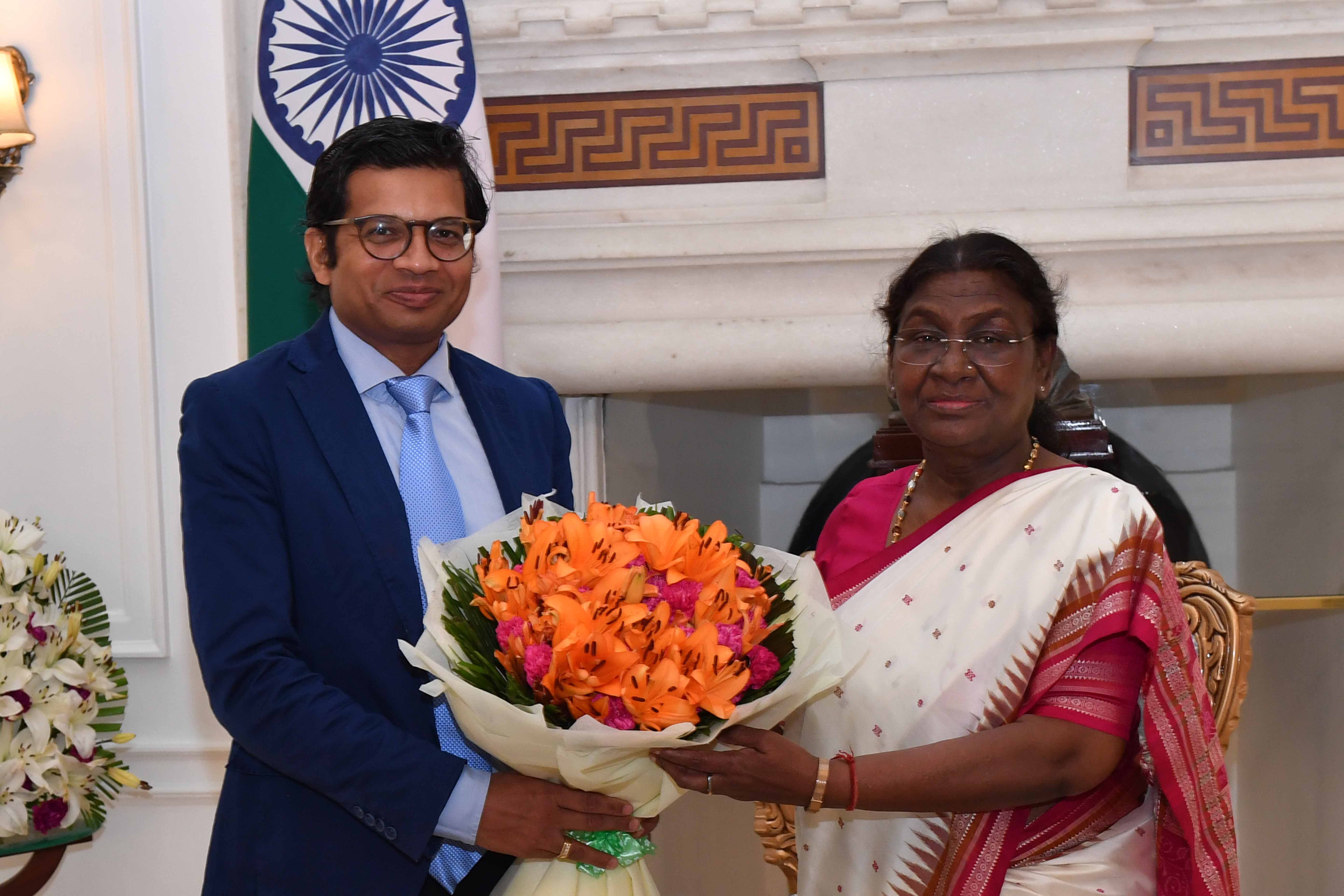 | Caption: | Dr. Shibashish Giri from Habadra, Dist. Mayurbhanj, Odisha meeting with the President of India Smt. Droupadi Murmu at Rashtrapati Bhavan on September 1, 2024. |