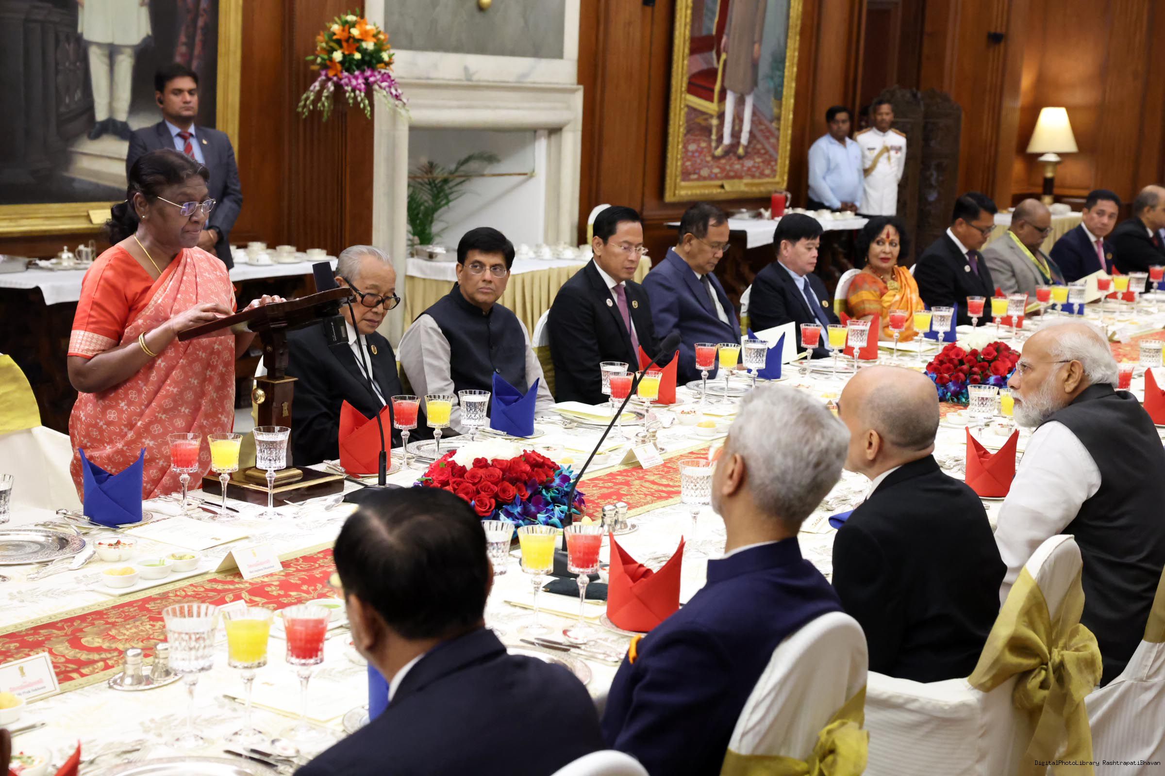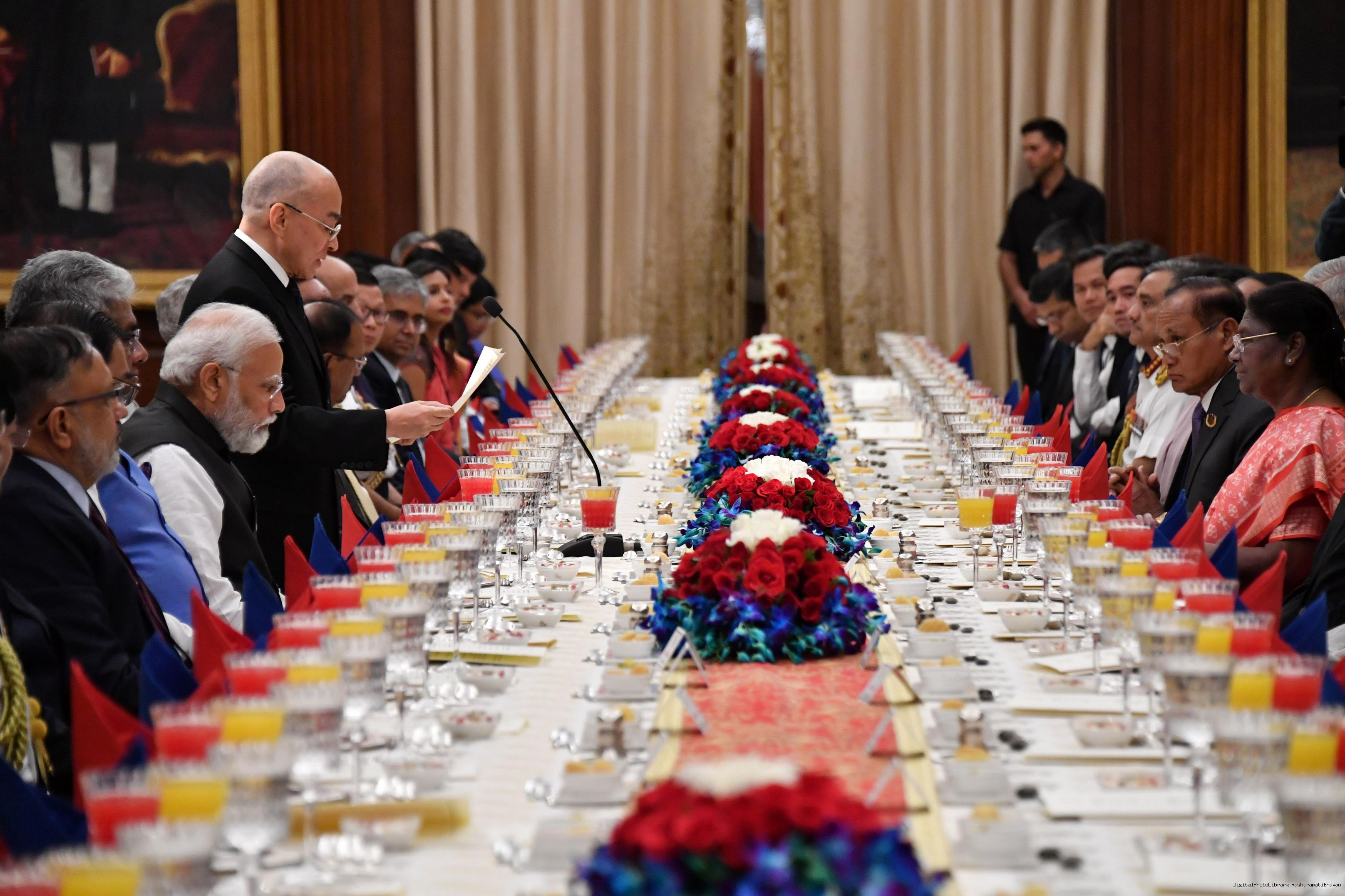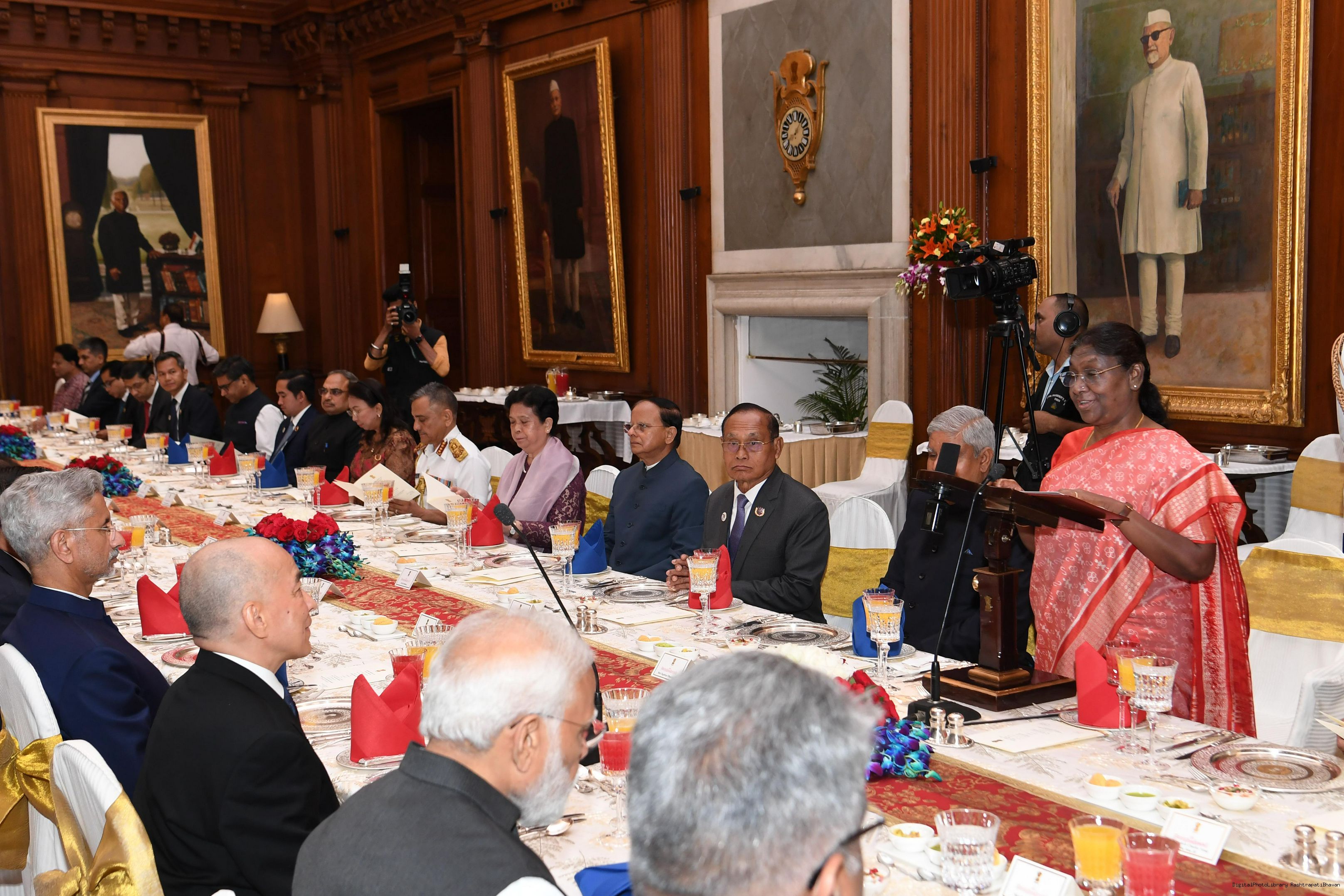 | Caption: | The President of India, Smt. Draupadi Murmu hosted a Banquet in honour of His Majesty Preah Bat Samdech Preah Boromneth Norodom Sihamoni, the King of Cambodia at Rashtrapati Bhavan on May 30, 2023. |