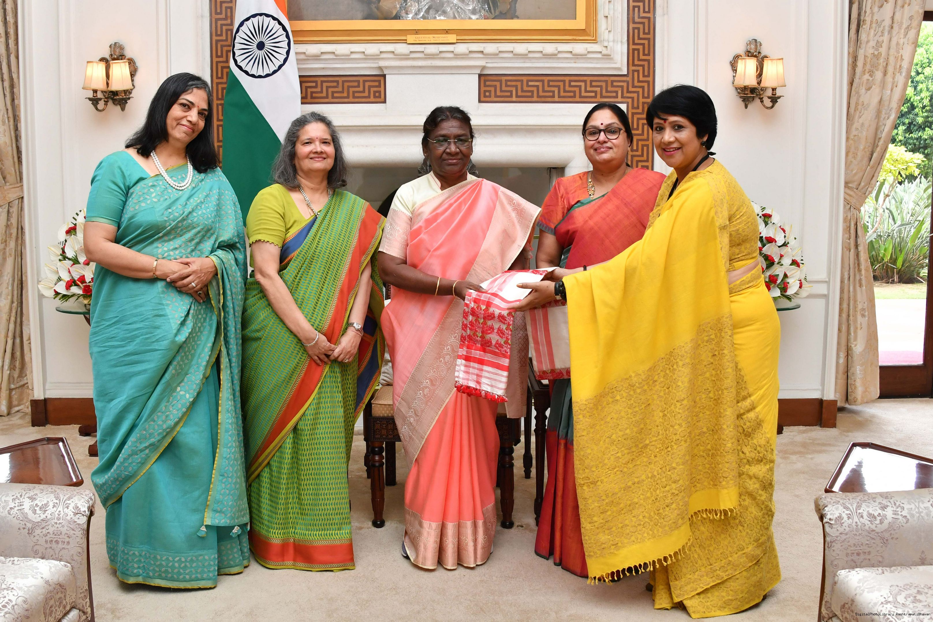 | Caption: | Ms. Jayanti Dalmia, former President, Federation of Indian Chambers of Commerce Industry (FICCI) along with Others meeting with the President of India Smt. Droupadi Murmu at Rashtrapati Bhavan on May 31, 2023. |