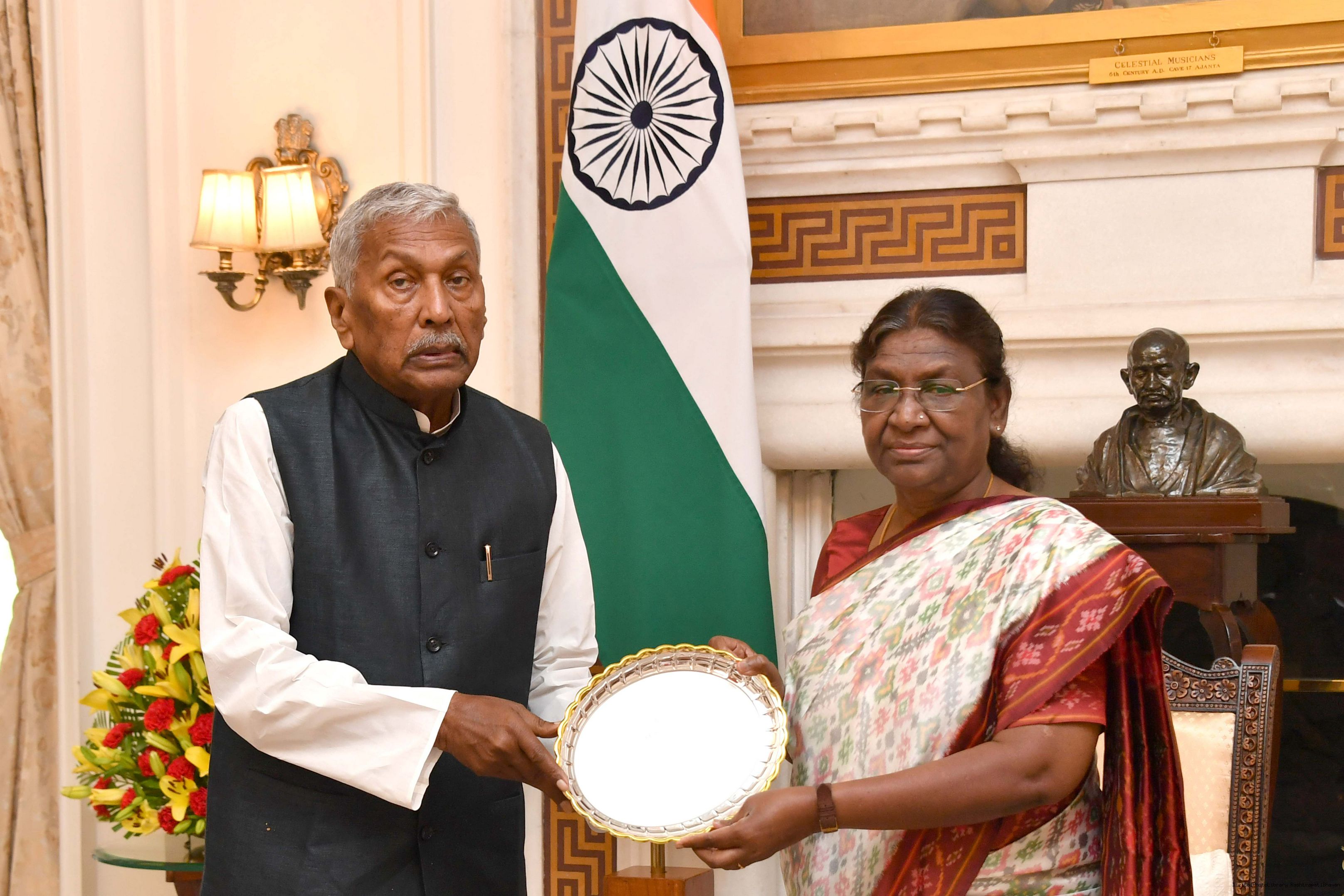 | Caption: | The Governor of Meghalaya, Shri Phagu Chauhan called on President of India, Smt Droupadi Murmu at Rashtrapati Bhavan on June 01, 2023. |