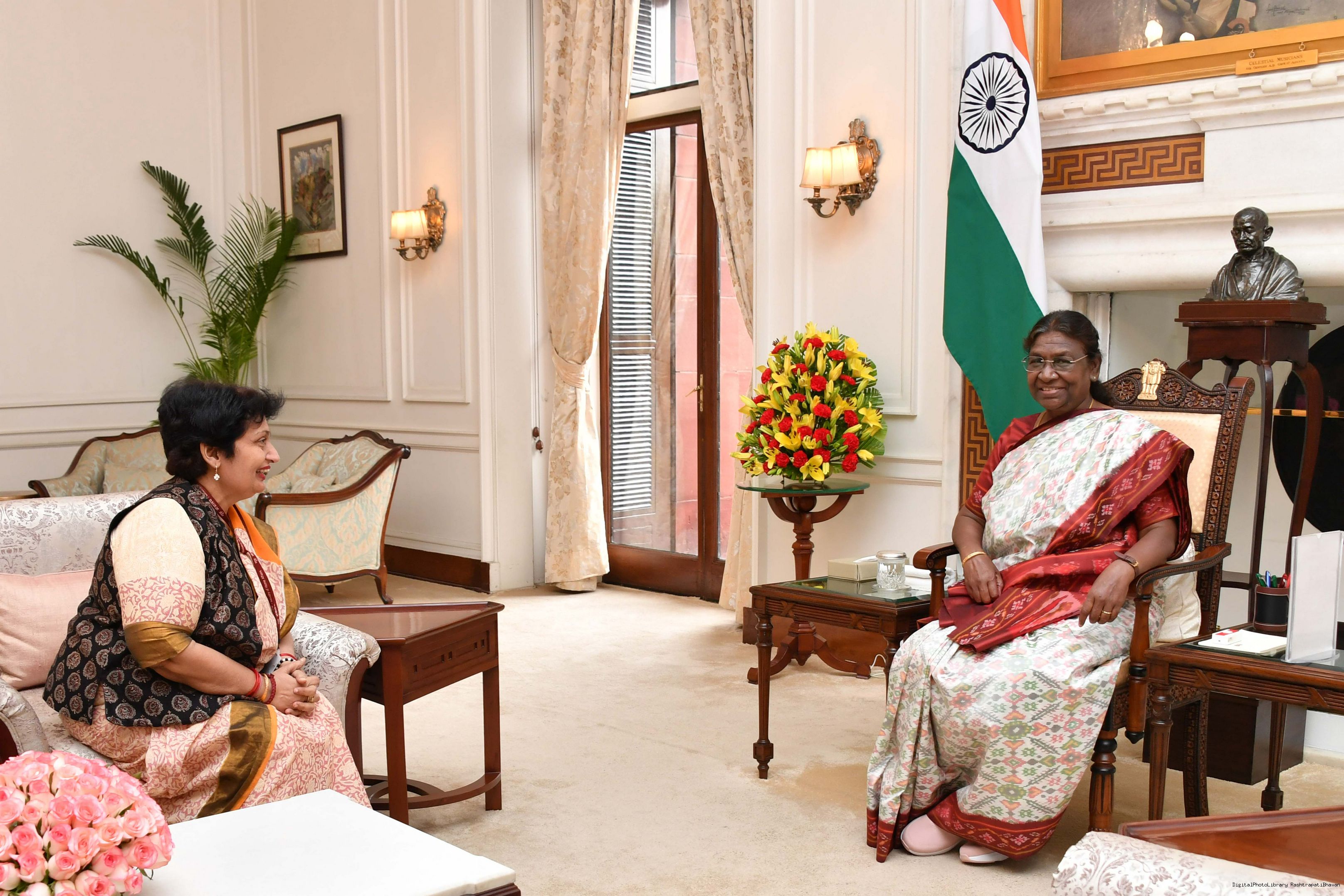 | Caption: | Smt. Preeti Sudan, former Union Health Secretary, Member, Union Public Service Commission meeting with the President of India, Smt. Droupadi Murmu at Rashtrapati Bhavan on June 01, 2023. |