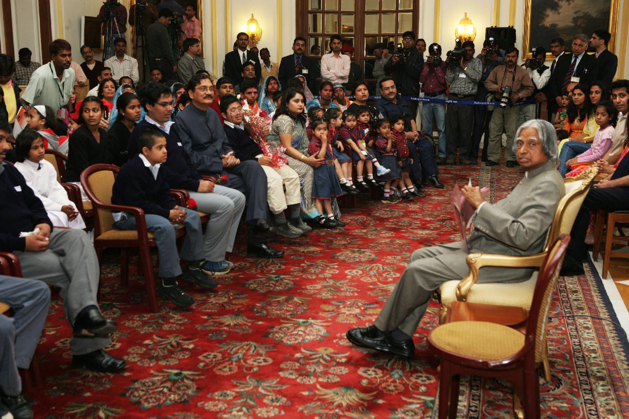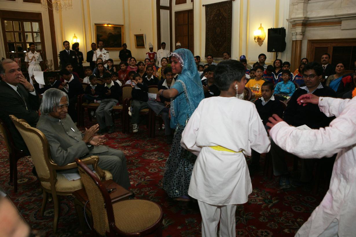 | Caption: | The President of India, Dr A P J Abdul Kalam receiving Holi Greetings from the School Children and others at the Yellow Drawing Room of Rashtrapati Bhavan in New Delhi on March 04, 2007 |