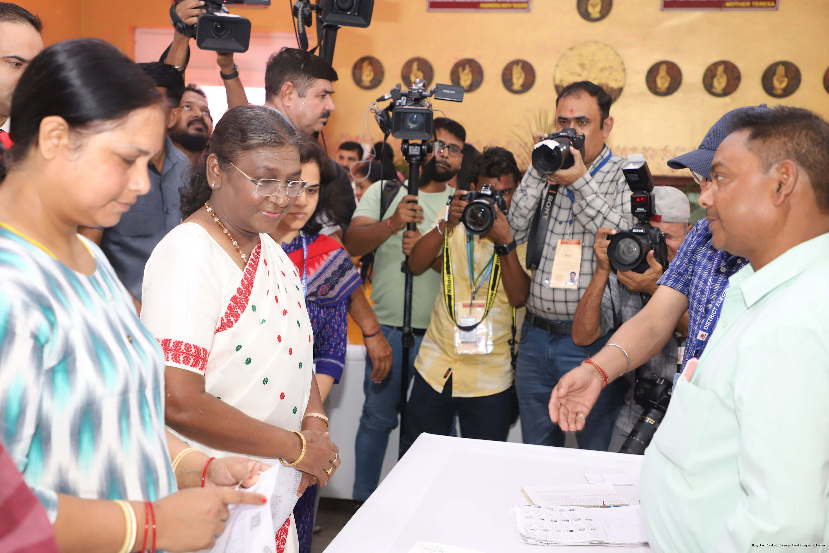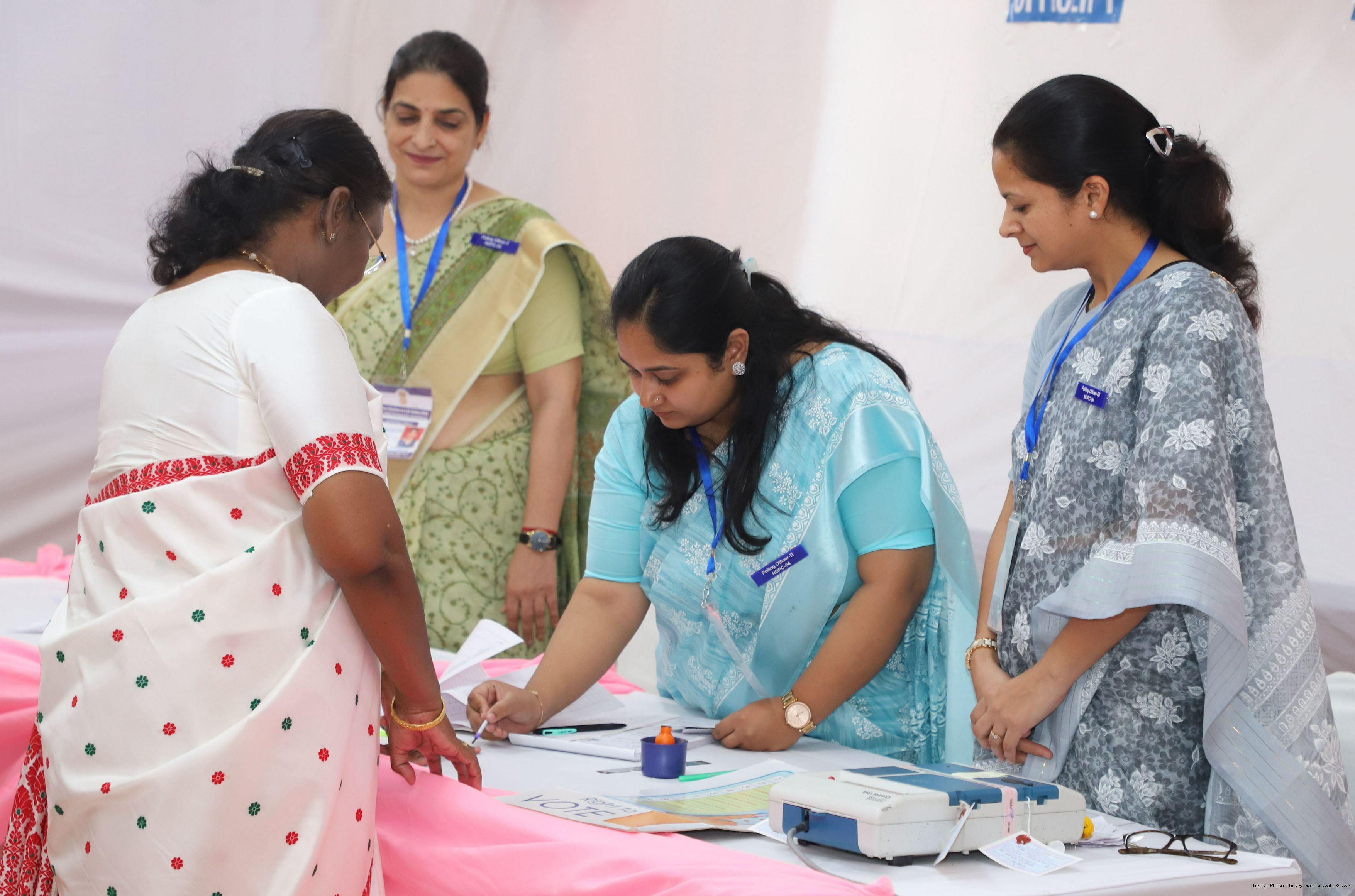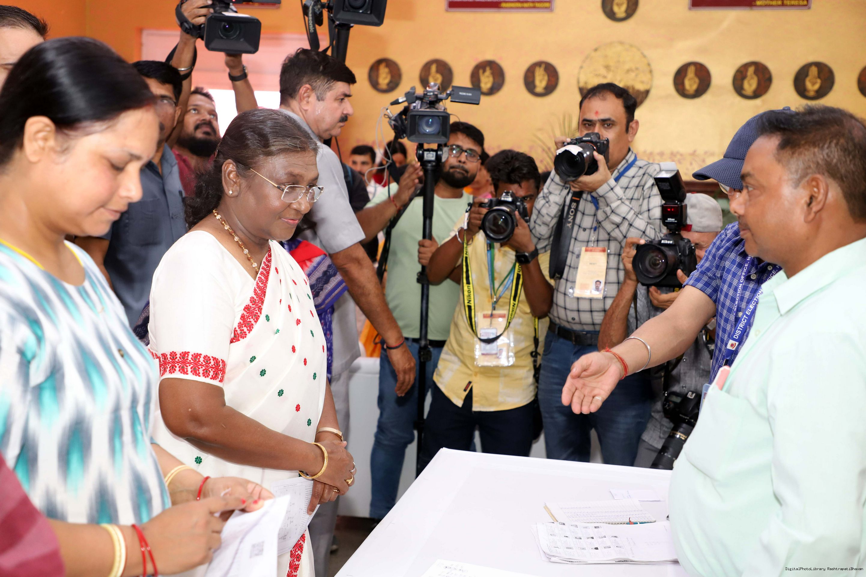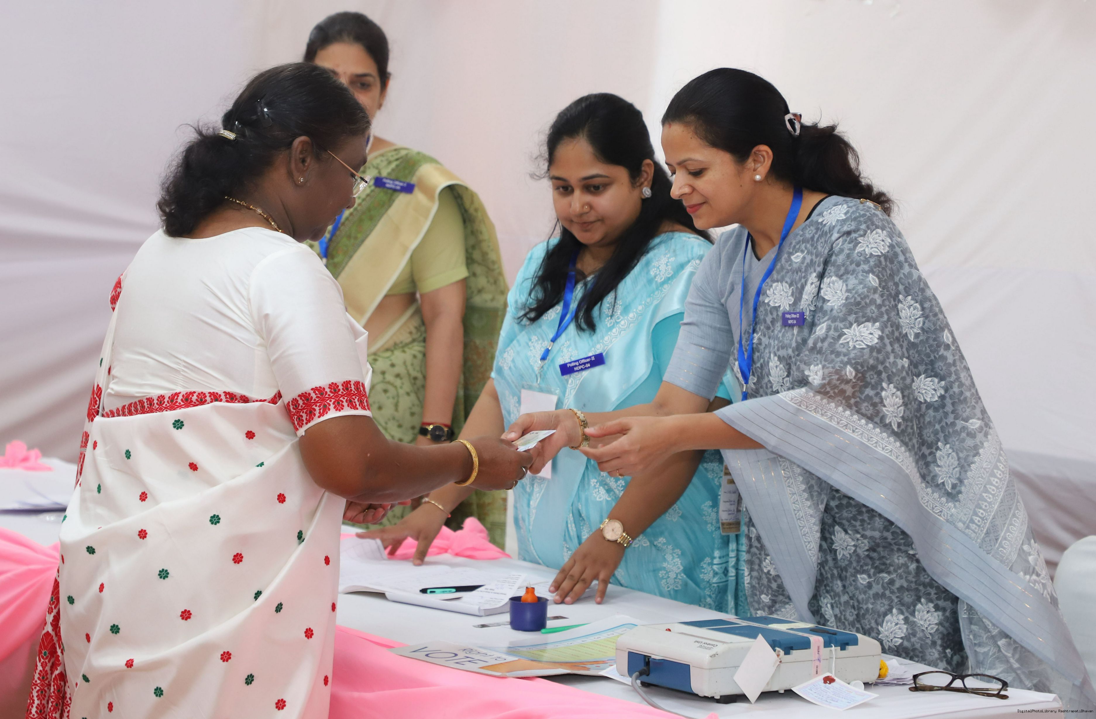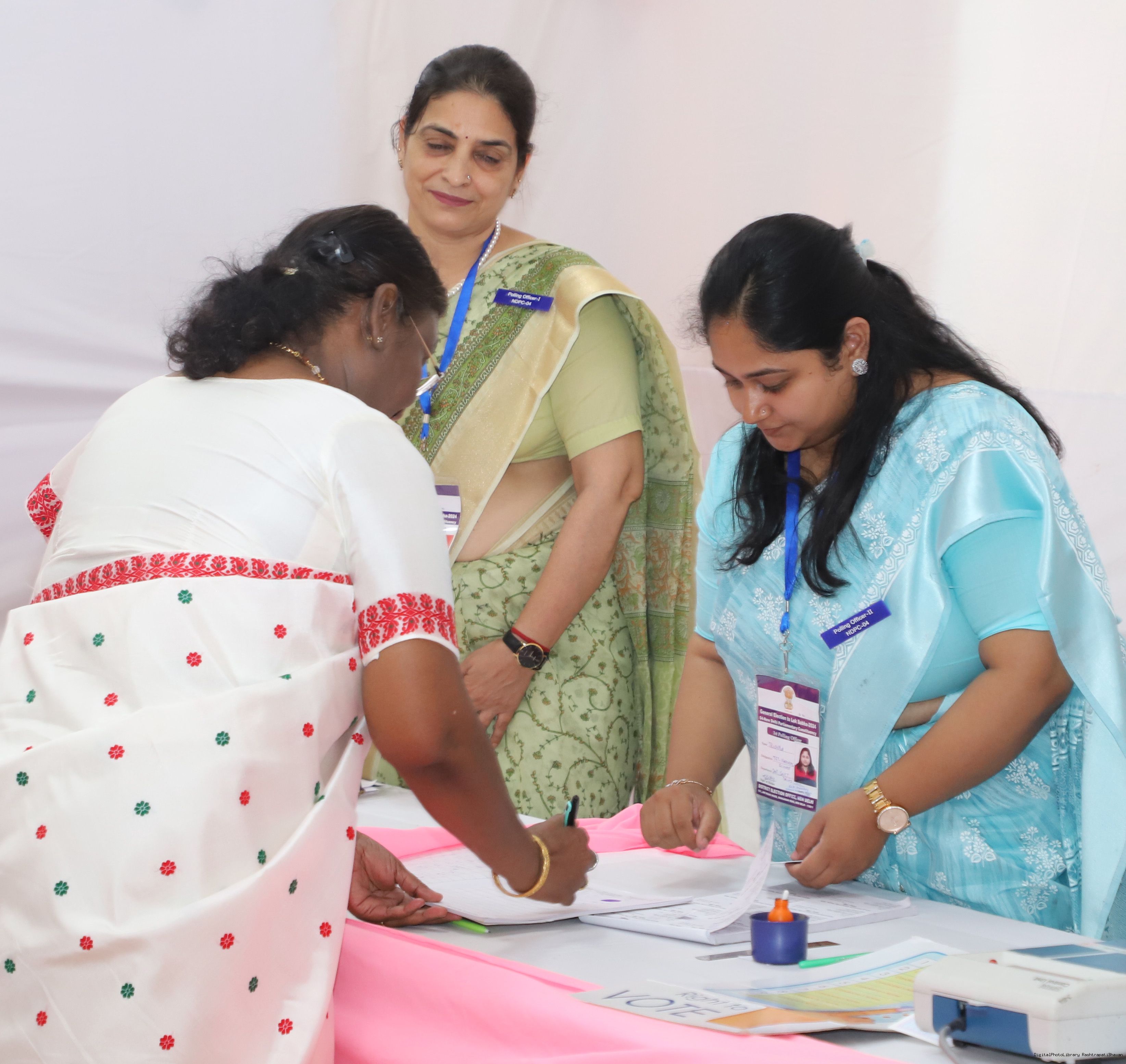 | Caption: | The President of India Smt. Droupadi Murmu visited Dr. Rajendra Prashad Kendriya Vidyalaya, President's Estate, New Delhi to cast the vote for General Election at Rashtrapati Bhavan on May 25, 2024. |