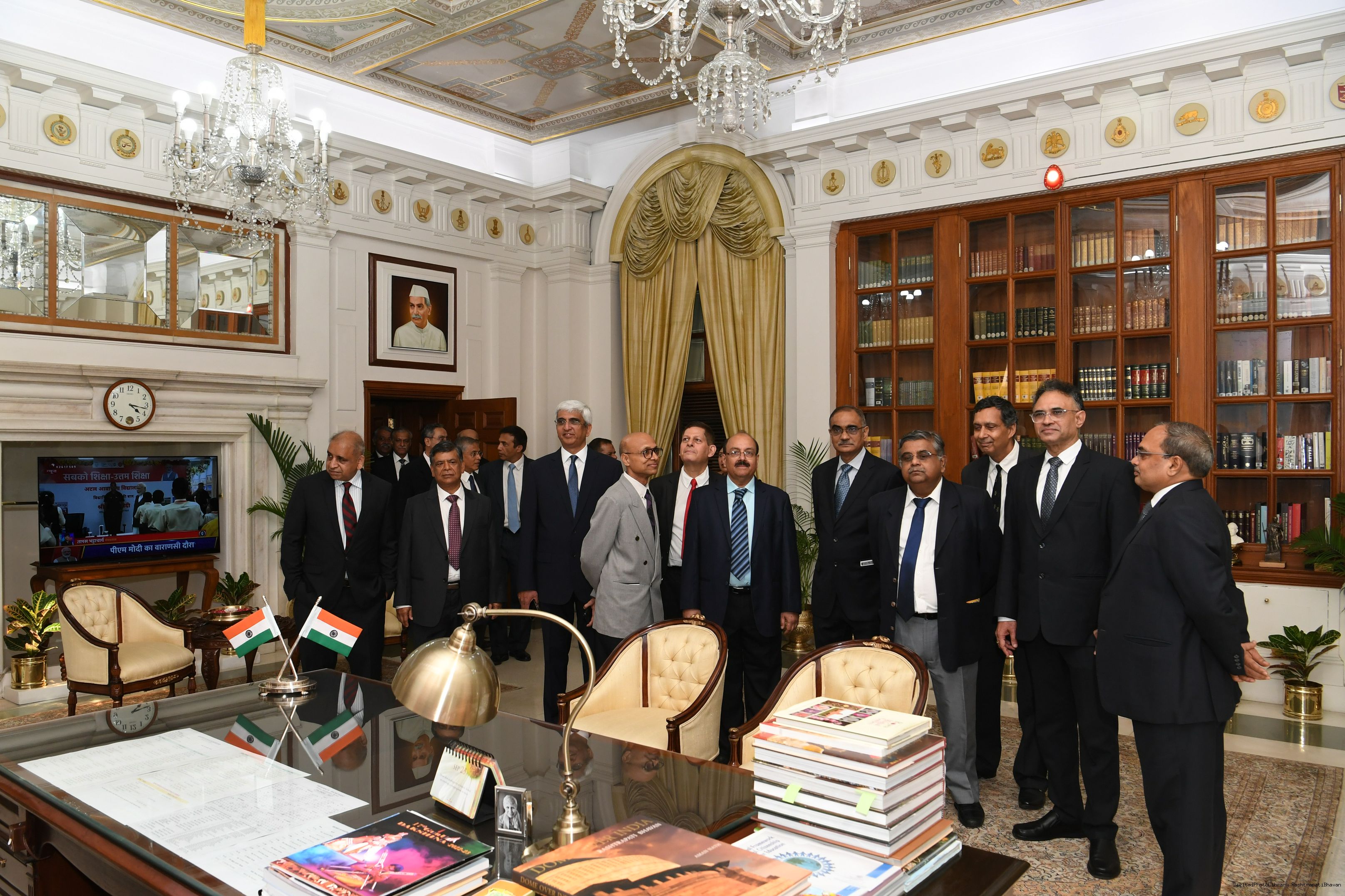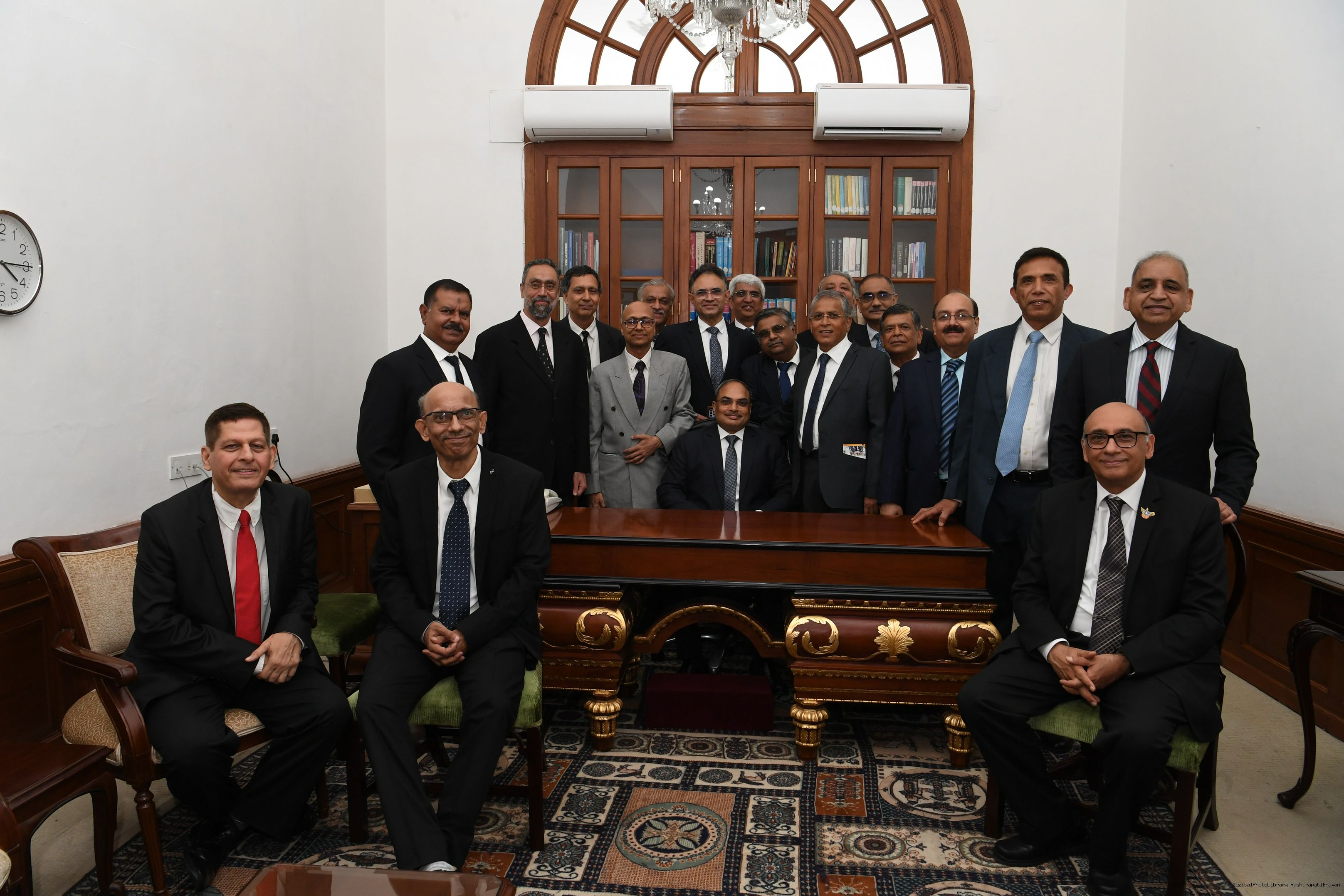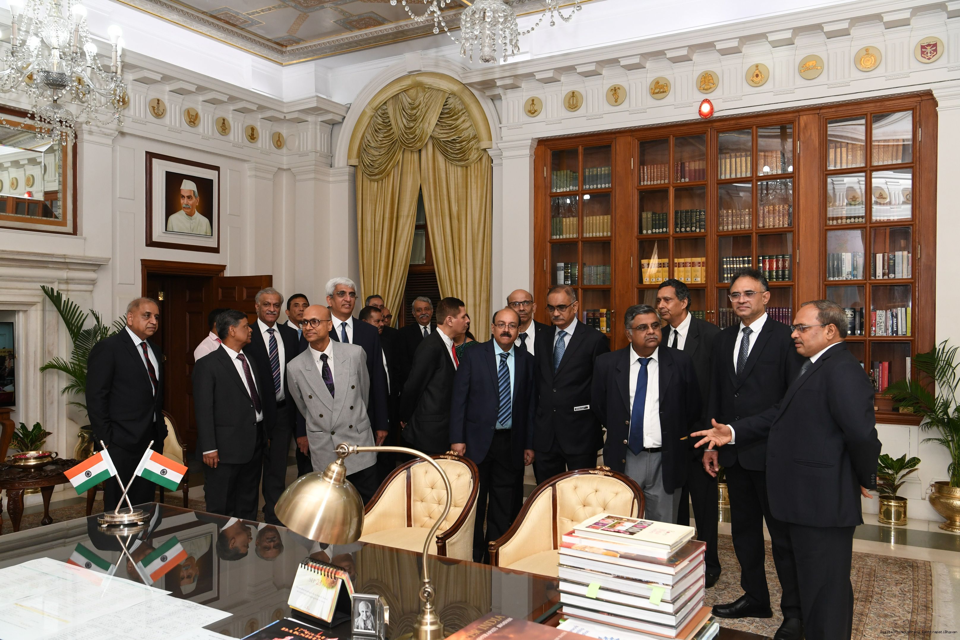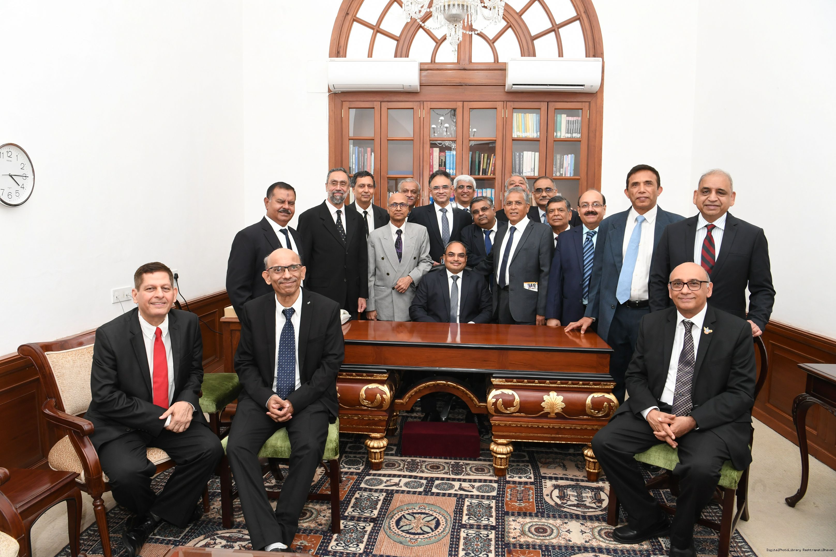 | Caption: | The President mets and posing a group photograph with Shri B.G. Mallya GM Integral Coach Factory Perambur and others on 23-9-2023 |