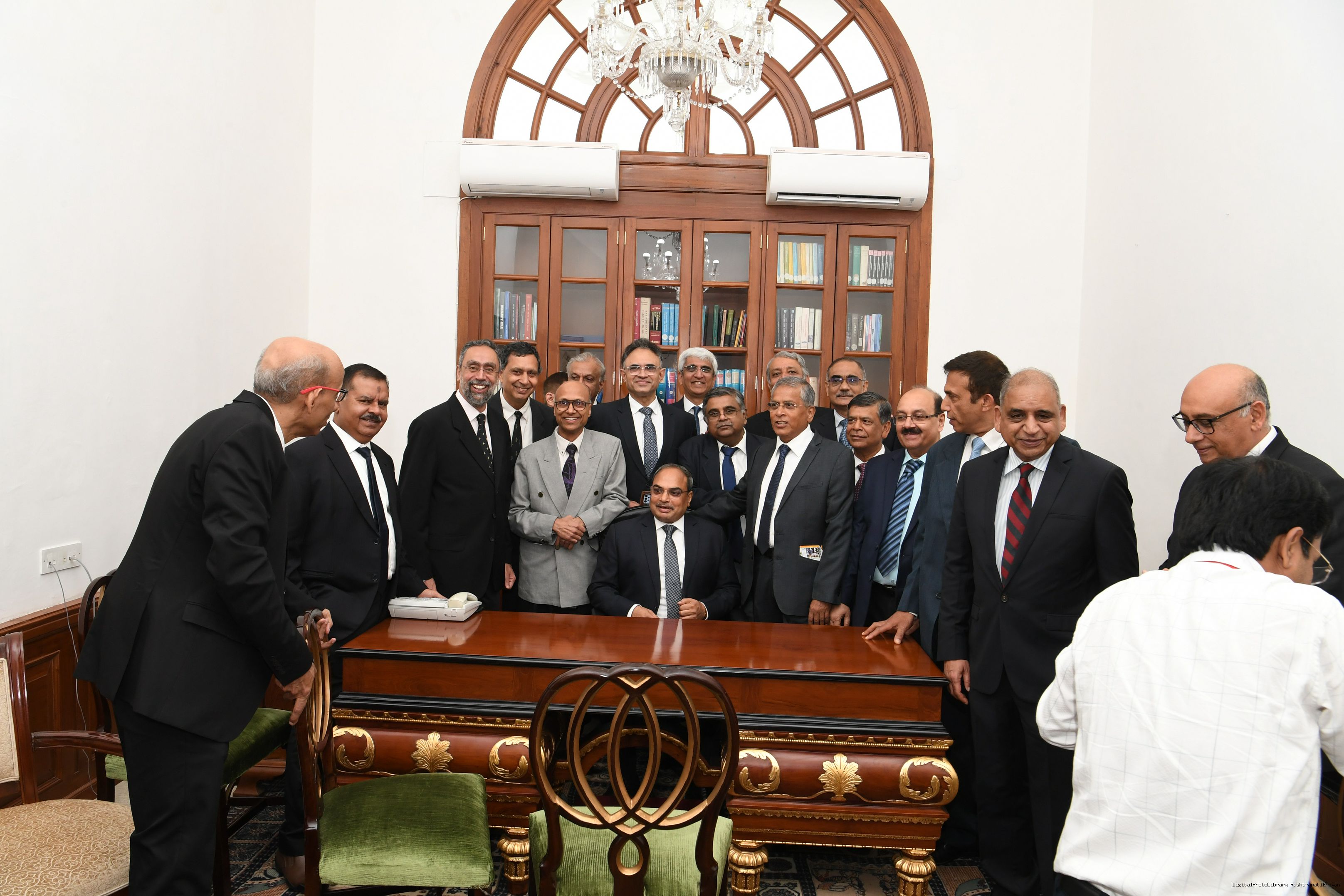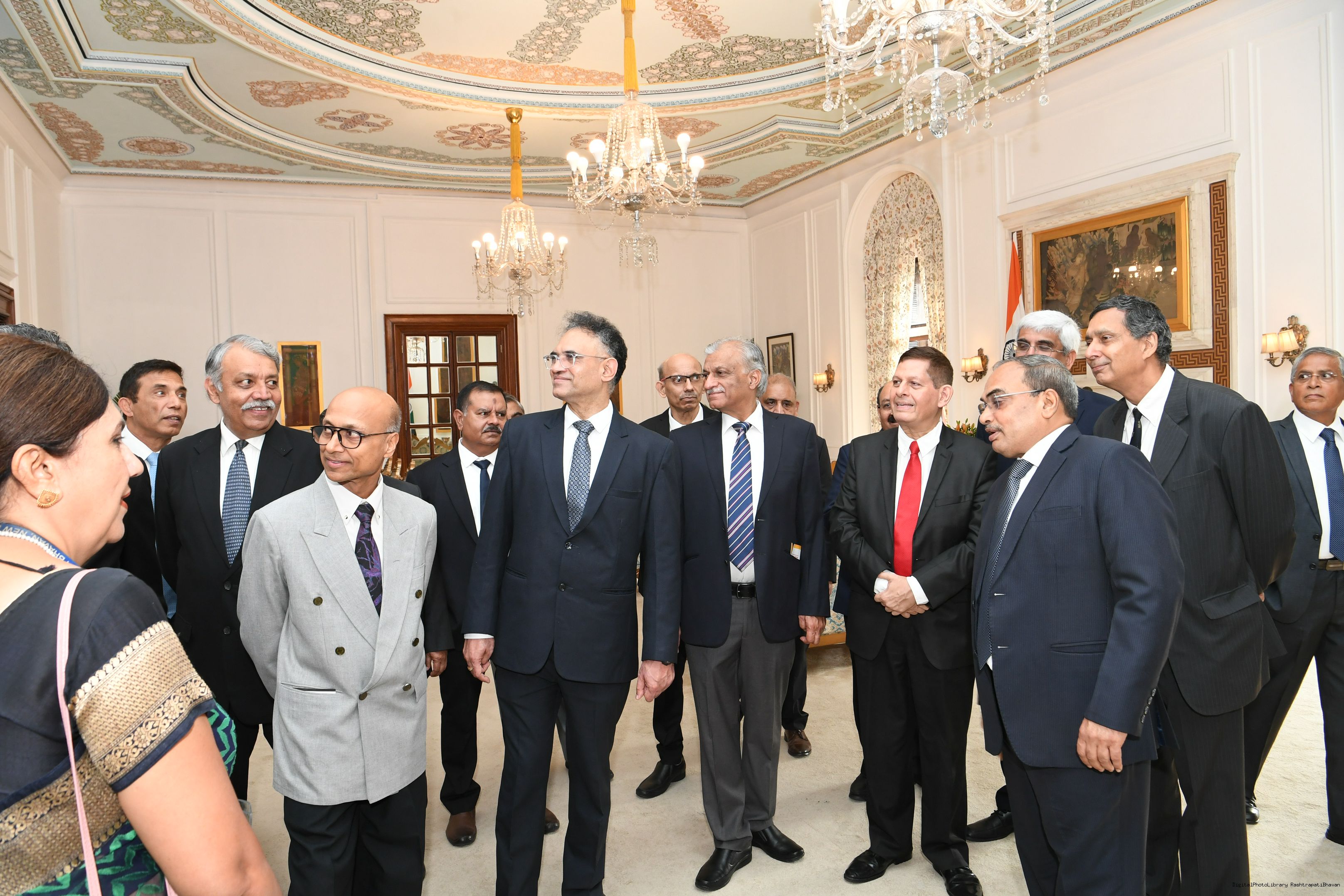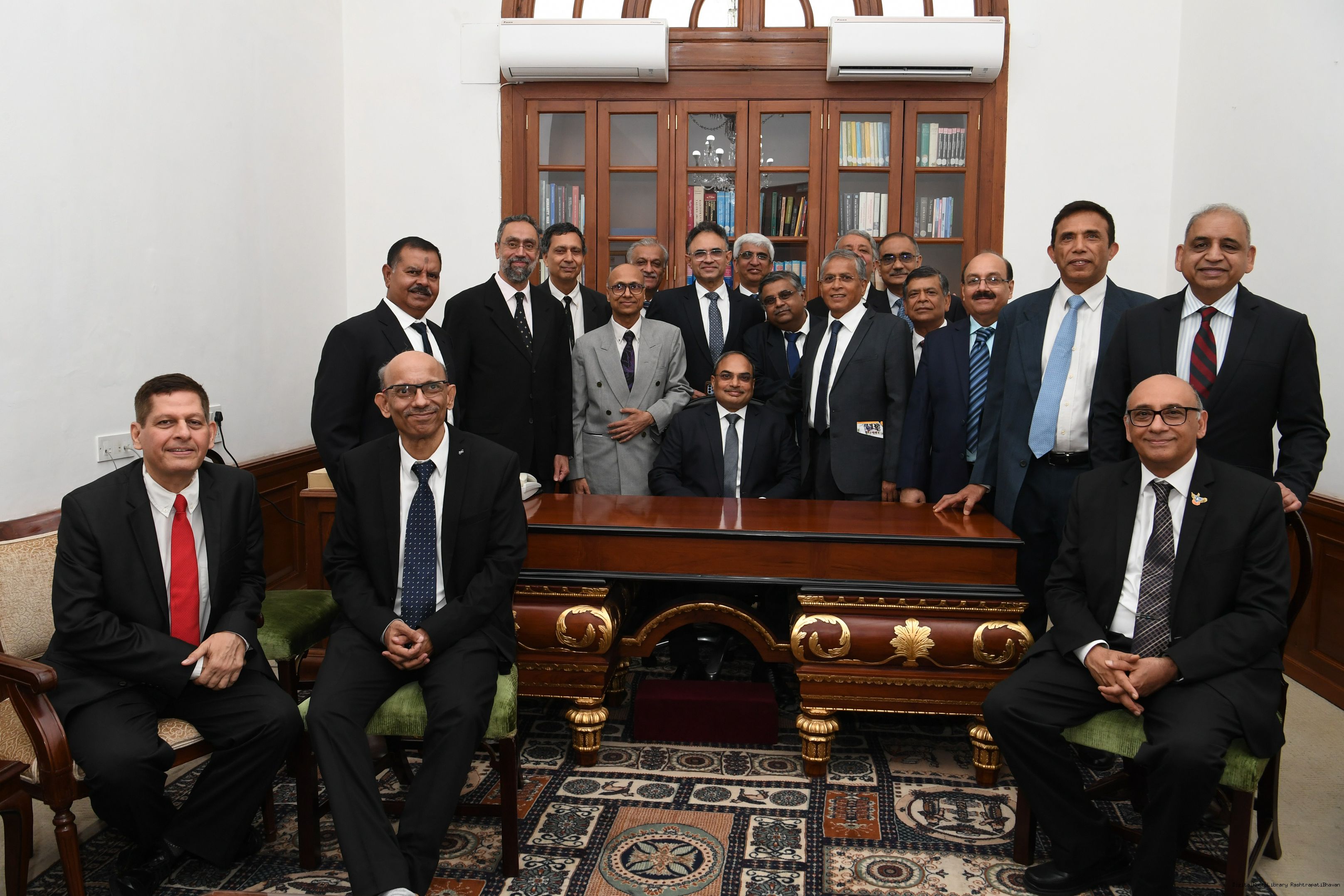 | Caption: | The President mets and posing a group photograph with Shri B.G. Mallya GM Integral Coach Factory Perambur and others on 23-9-2023 |